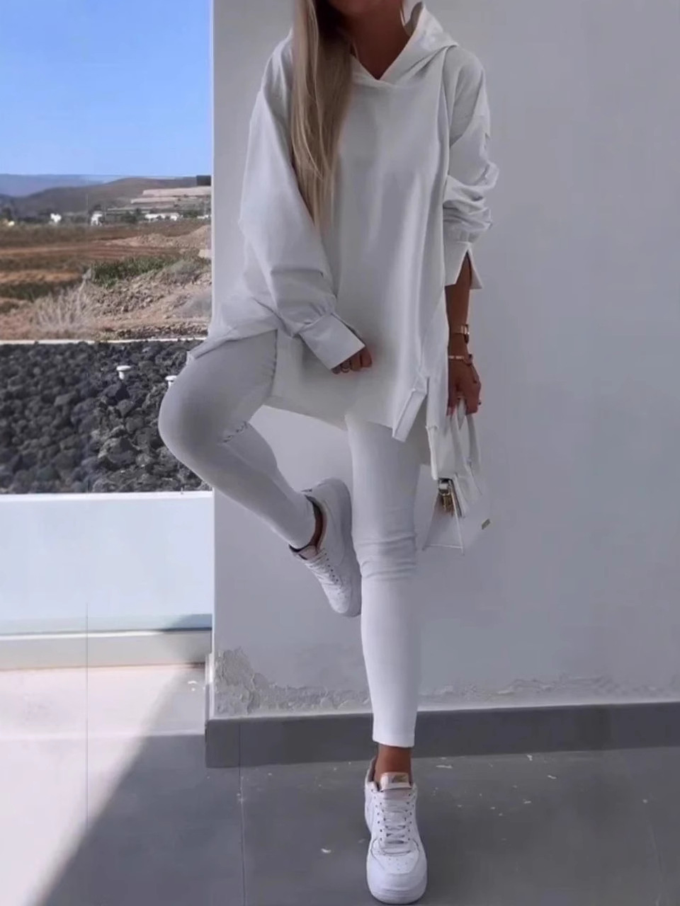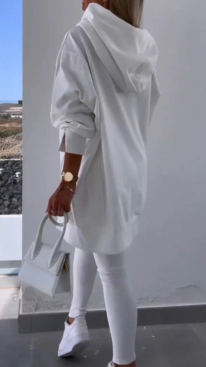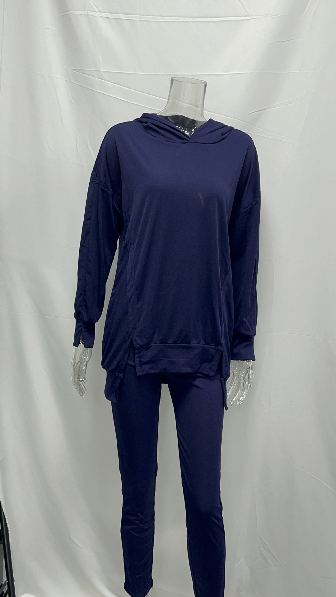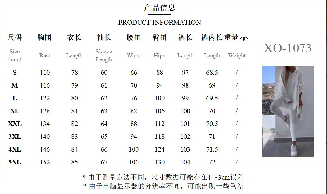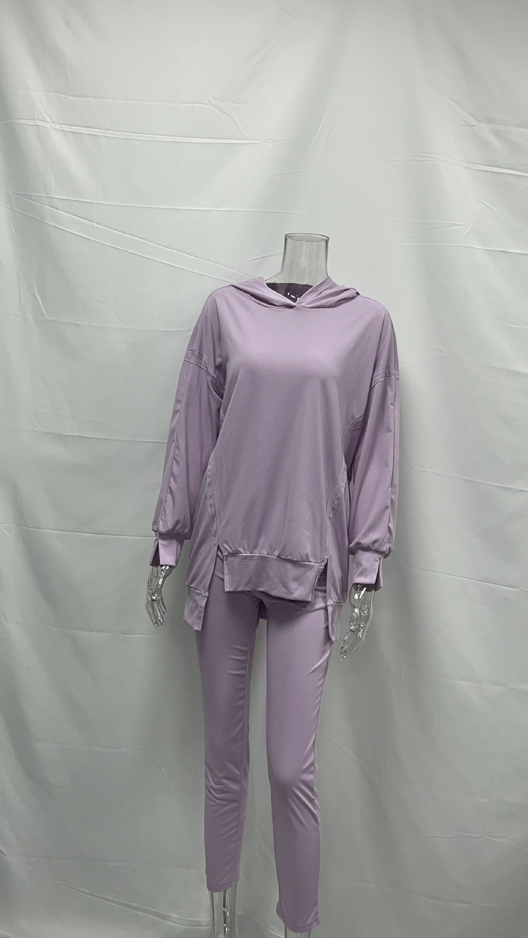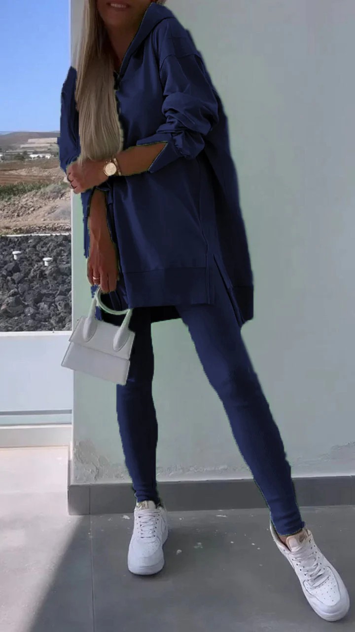유럽과 미국의 국경 간 여성 스포츠 캐주얼 세트 슬릿 솔리드 컬러 후드 스웨트 타이트 바지 2 피스 세트
