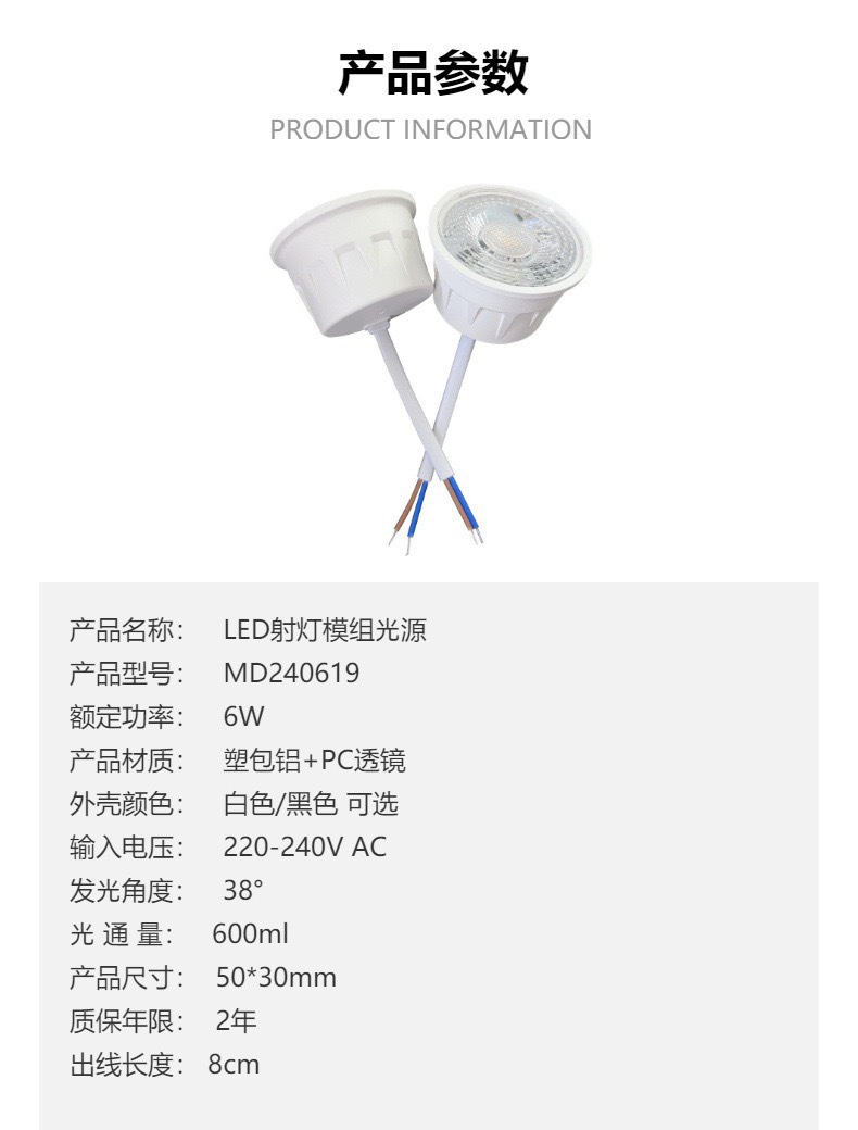 LED 스포트라이트 7W 광범위 전압 무플래시 플라스틱 케이스 알루미늄 모듈 라이트컵 무핀 스포트라이트 쇼핑몰 호텔에 적합