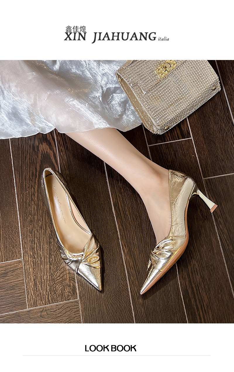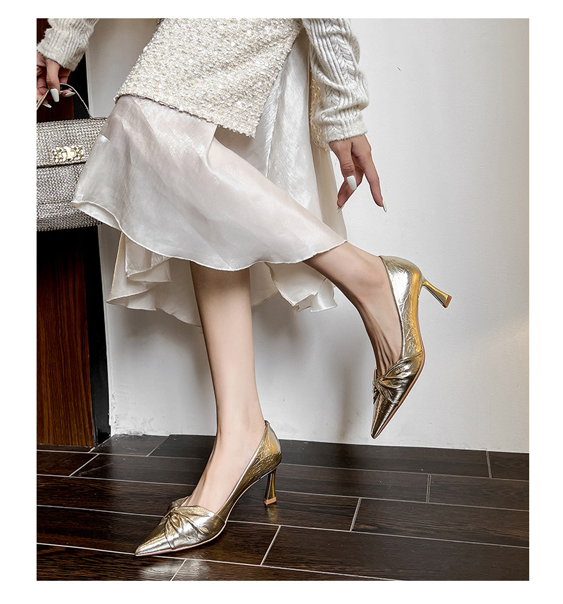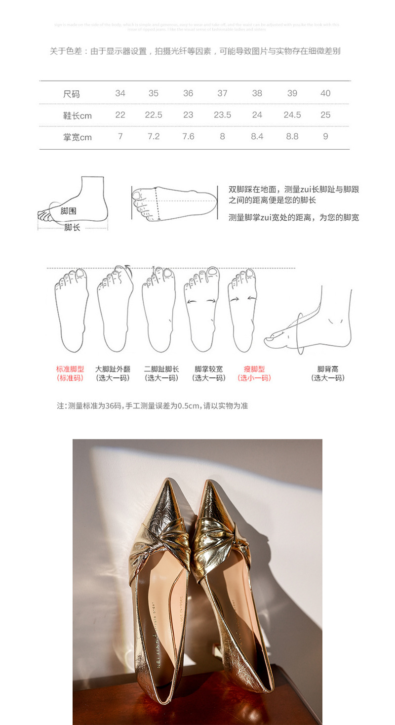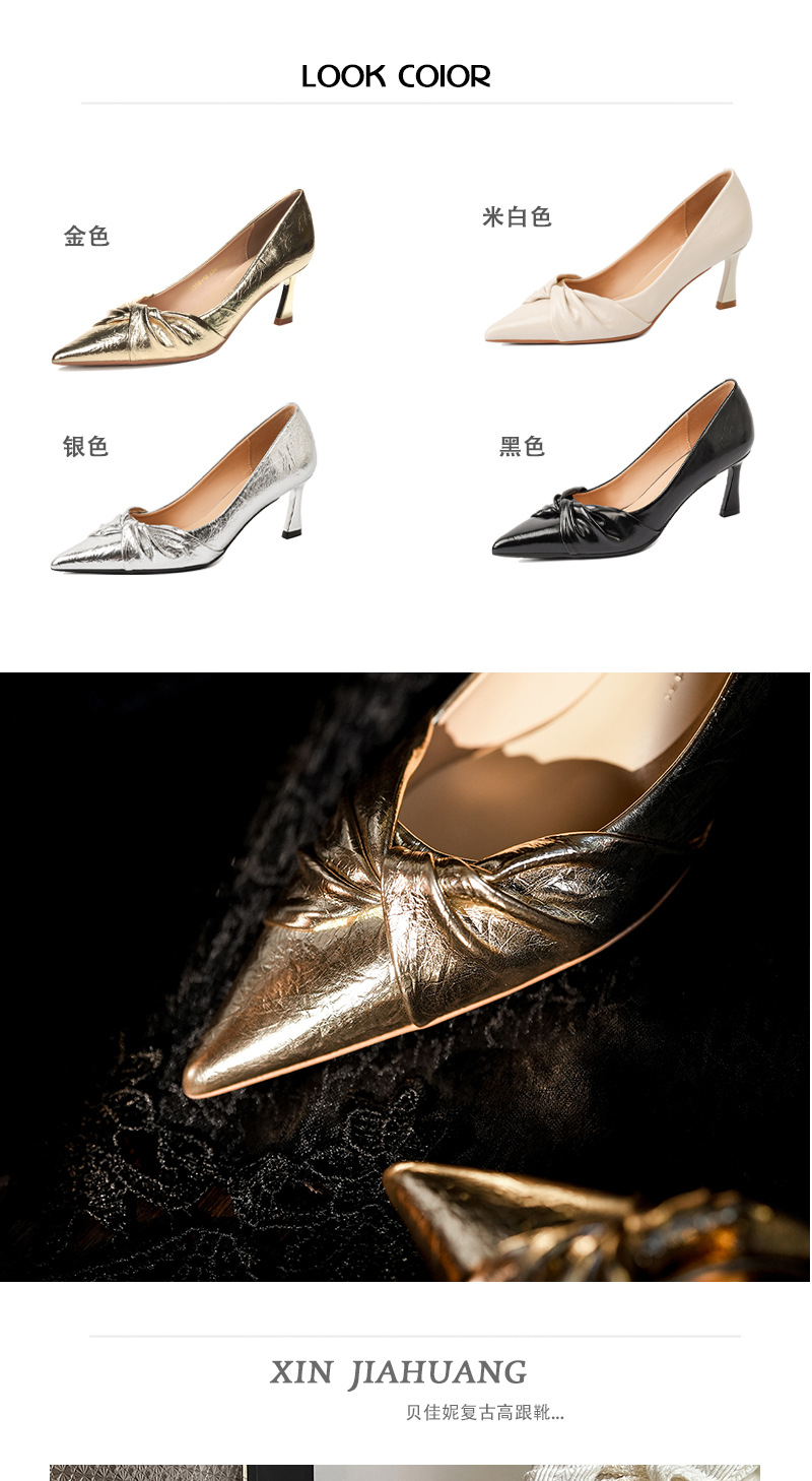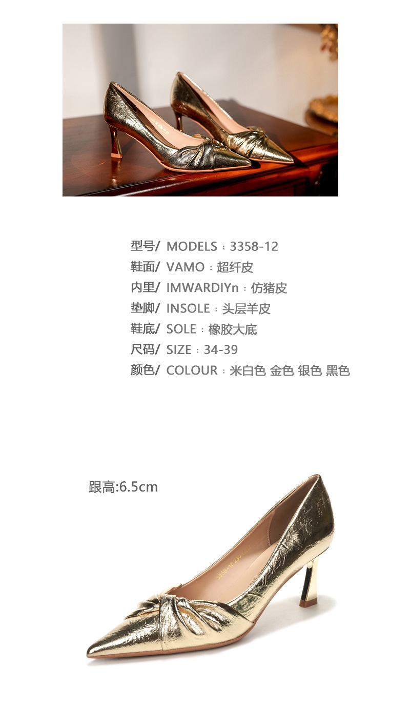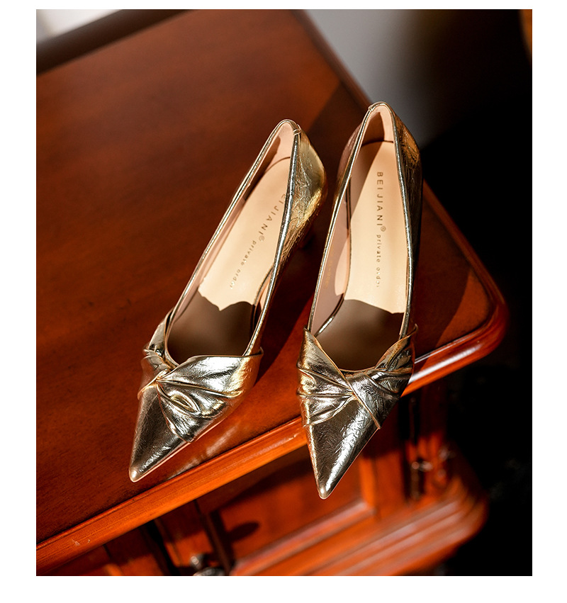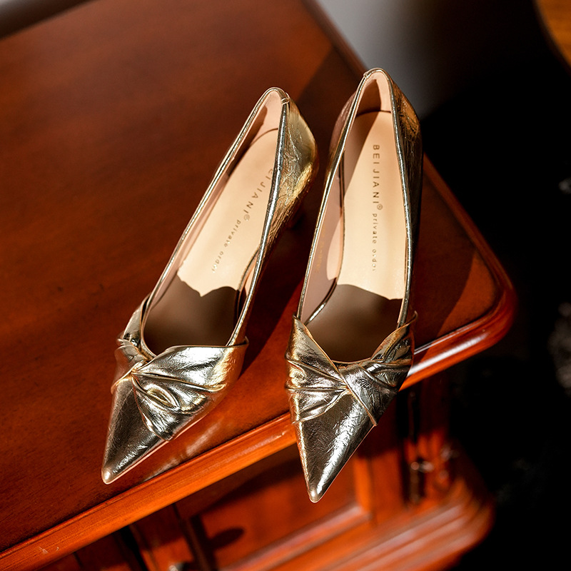 3358-12 골든 양 뾰족한 트위스트 하이힐 슈즈 여성용 얇은 힐 고급 기질 양가죽 싱글 슈즈 봄과 가을스토어 가기