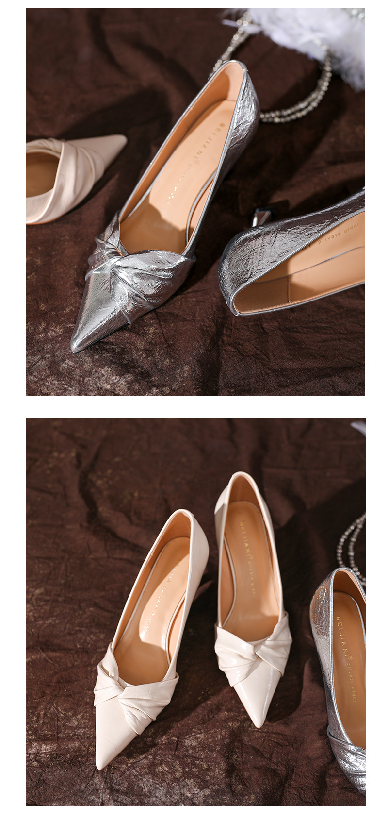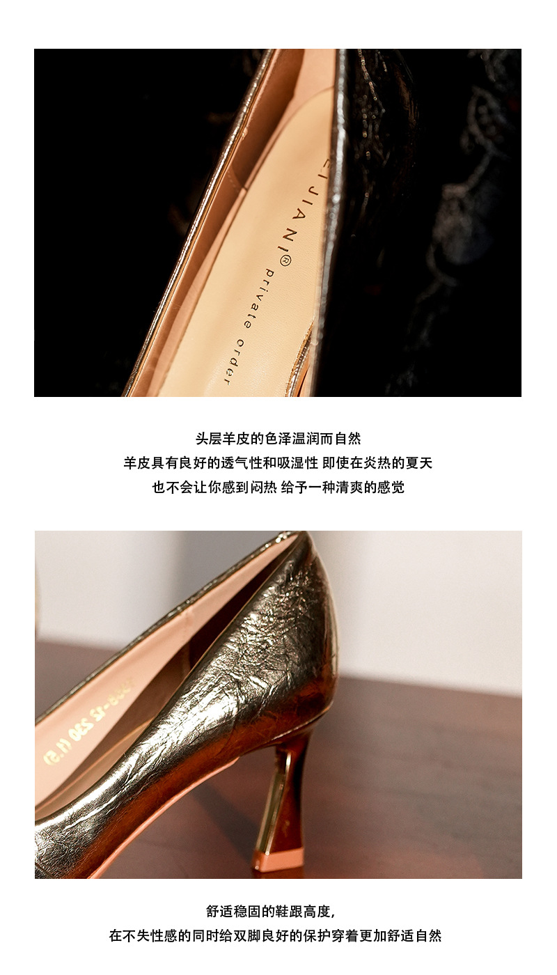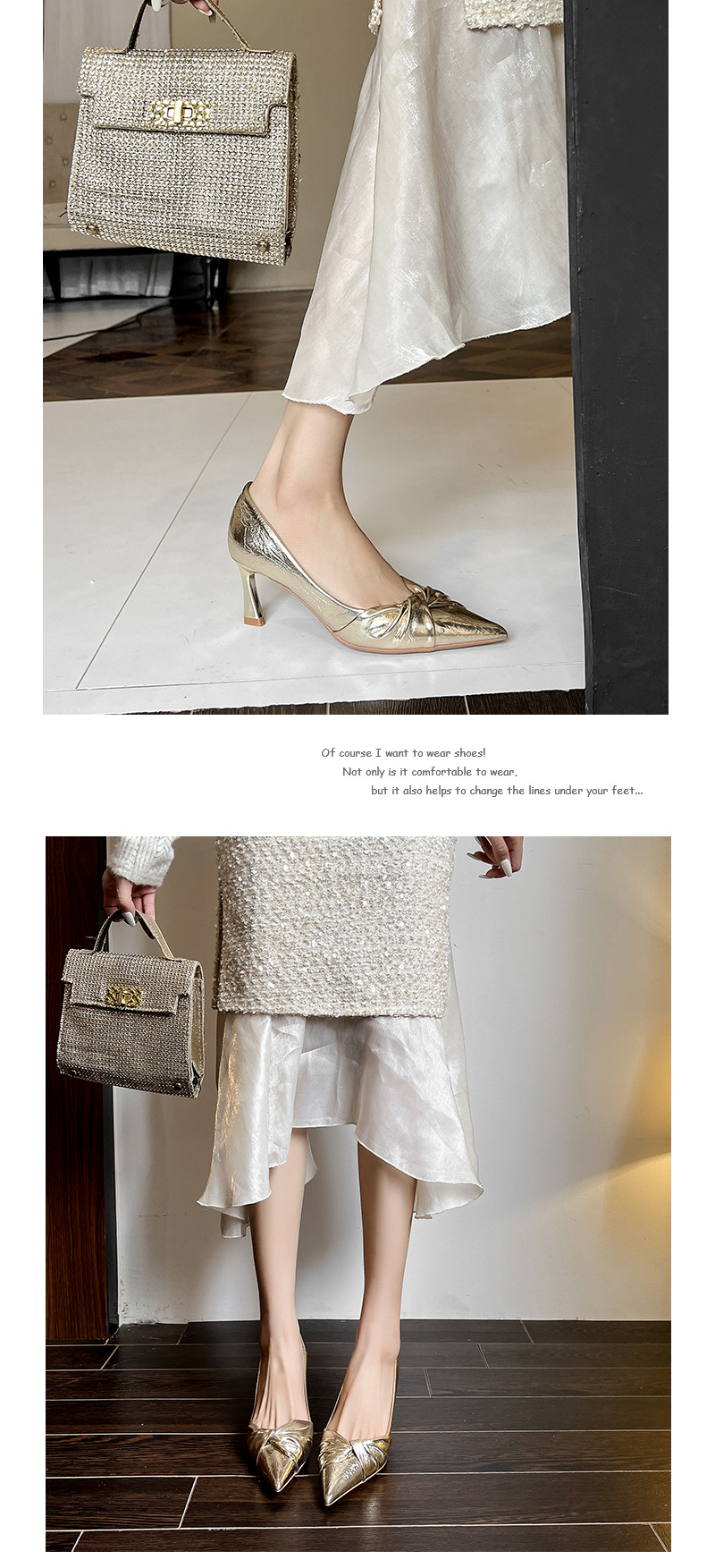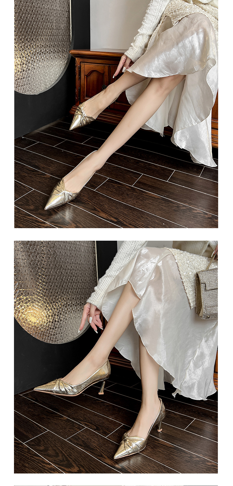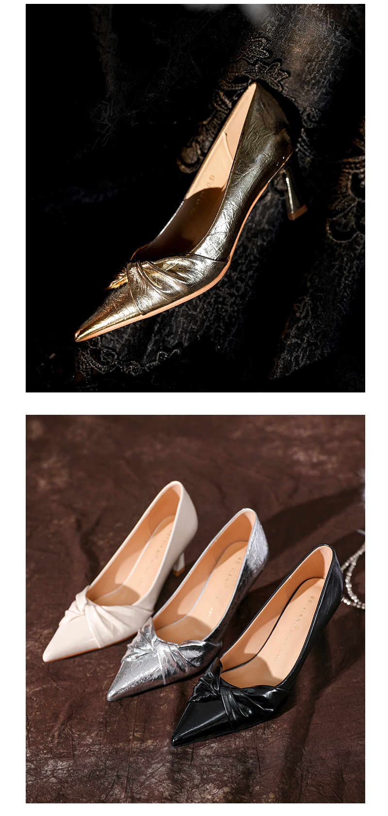 3358-12 골든 양 뾰족한 트위스트 하이힐 슈즈 여성용 얇은 힐 고급 기질 양가죽 싱글 슈즈 봄과 가을스토어 가기