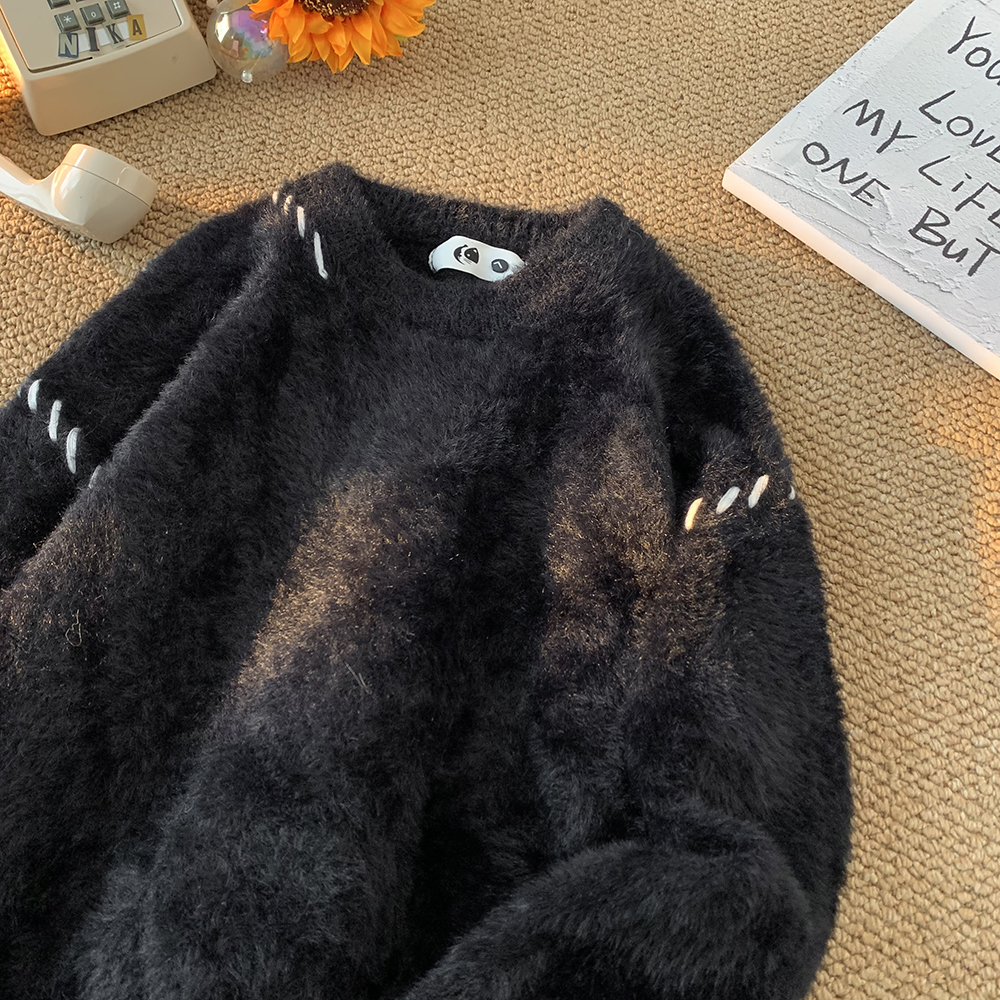 패션 틈새 가을 겨울 올 매치 스웨터 남자 크루 넥 타이드 브랜드 홍콩 스타일 일본 틈새 디자인 아메리칸 스타일 빈티지 핀
