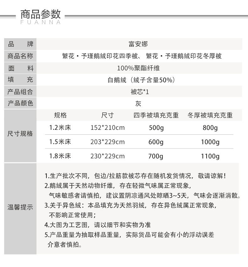 • 【50% 화이트 구스】Lan Fanghua 구스다운 프린트 겨울 이불