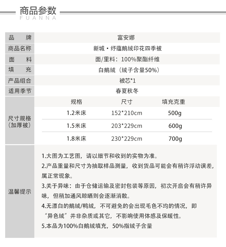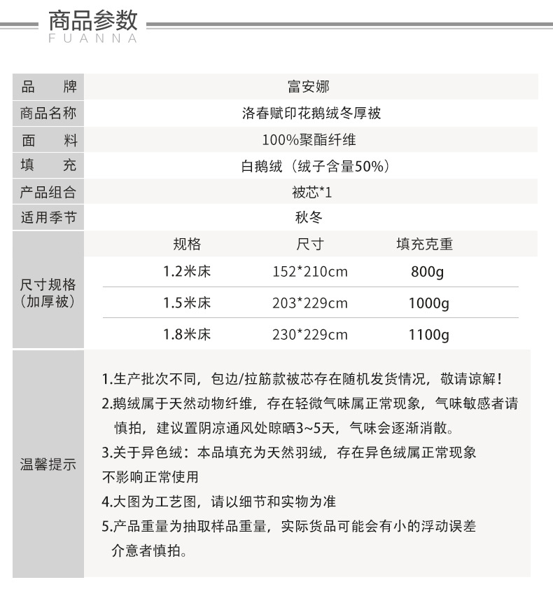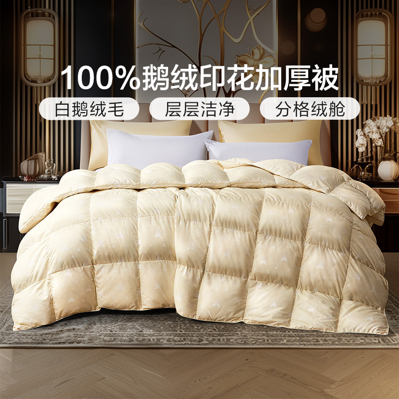 • 【화이트 구스 50%】뤄춘푸 프린트 구스다운 겨울 이불
