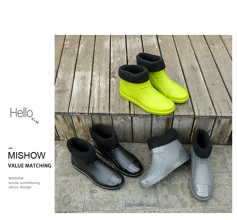 도매 국경 패션 미끄럼 방지 방수 장화 남성 짧은 장화 기모 패션 낚시 주방 세차 물 신발 부츠스토어 가기