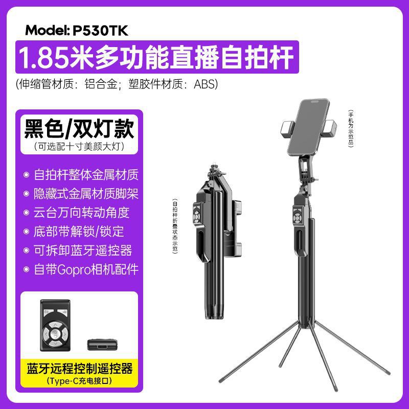 P530TK手机自拍杆防抖可伸缩户外直播手机支架补光灯四脚架自拍杆P530TK手机自拍杆防抖可伸缩户外直播手机支架补光灯四脚架自拍杆P530TK