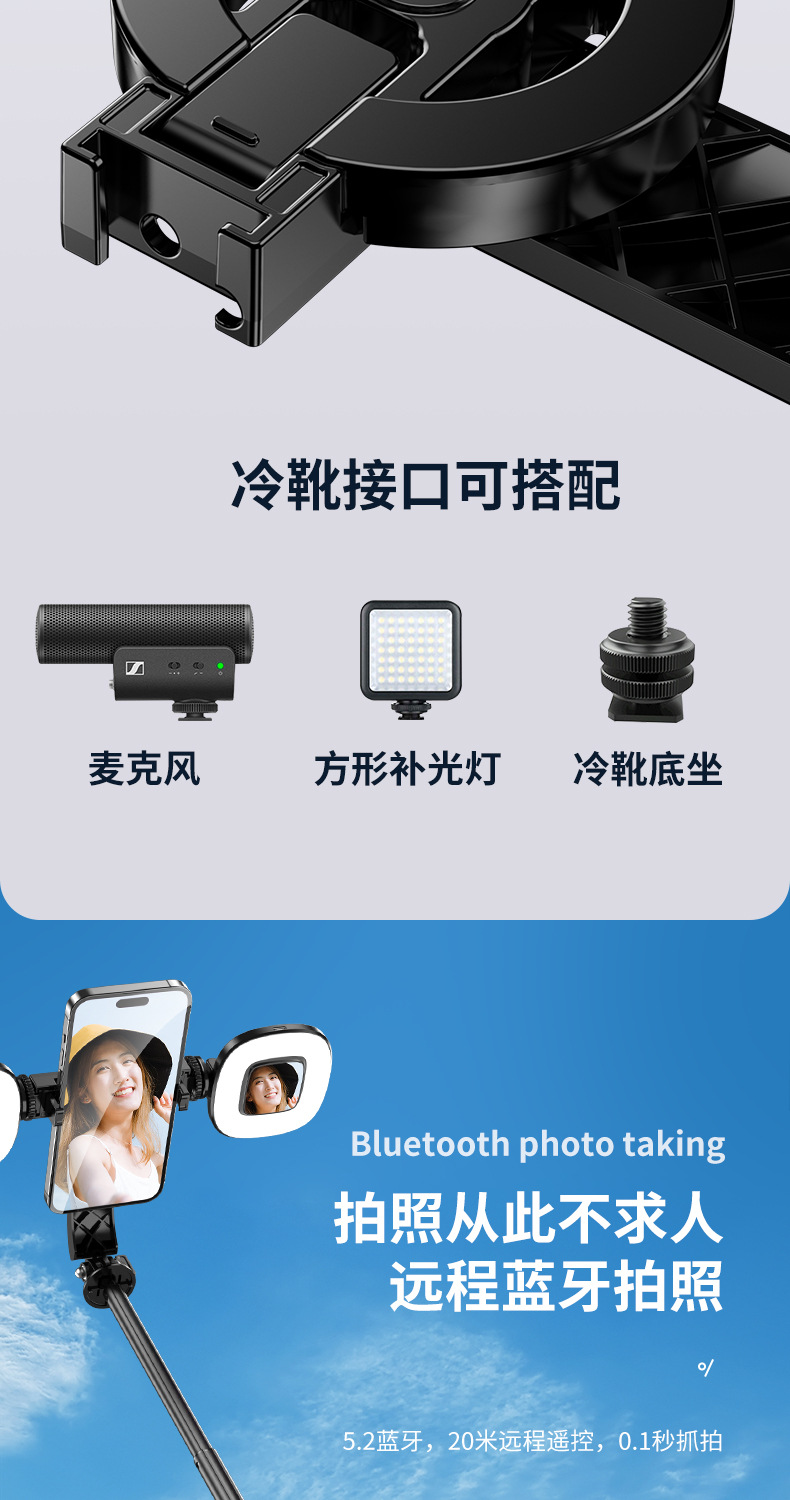 뜨거운 새로운 자기 흡수 휴대 전화 셀카 스틱 유니버설 휴대 전화 라이브 방송 브래킷 블루투스 사진 삼각대 셀카 스틱