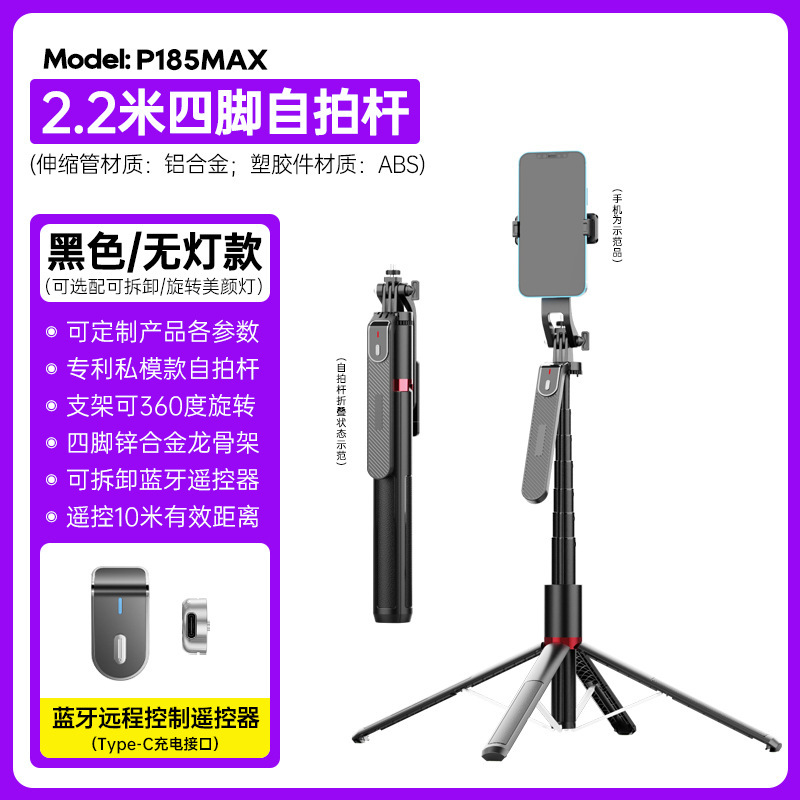 定制P185MAX铝合金自拍杆2.2米防抖可伸缩手机拍照支架专利自拍杆定制P185MAX铝合金自拍杆2.2米防抖可伸缩手机拍照支架专利自拍杆定制