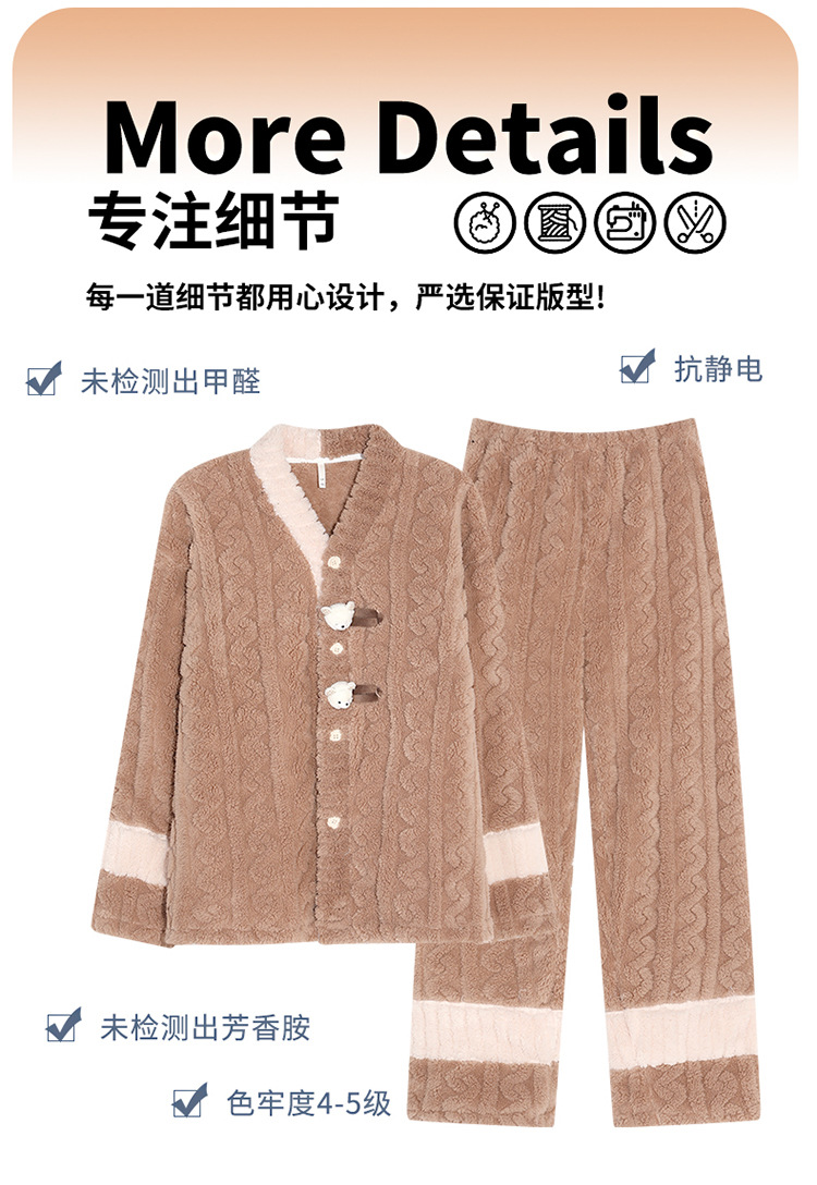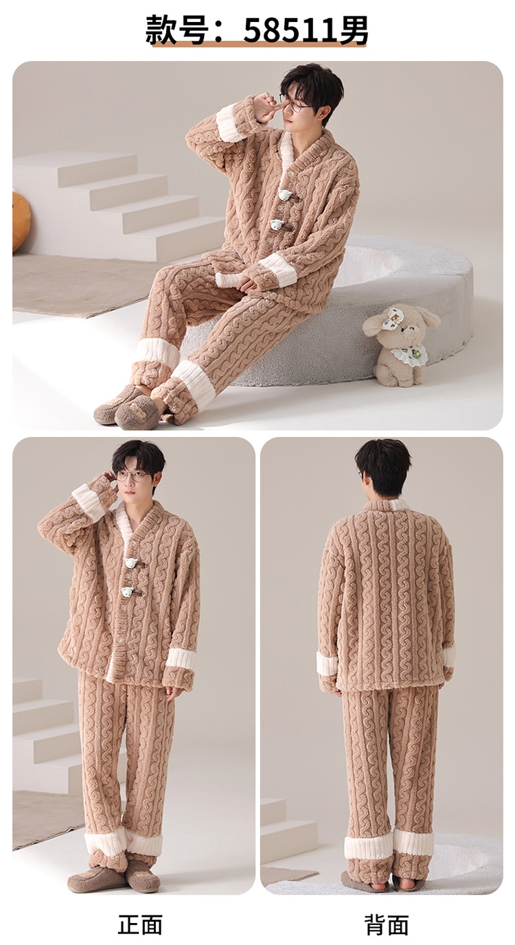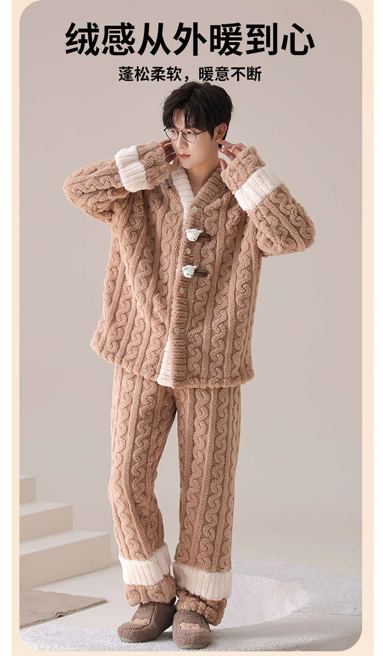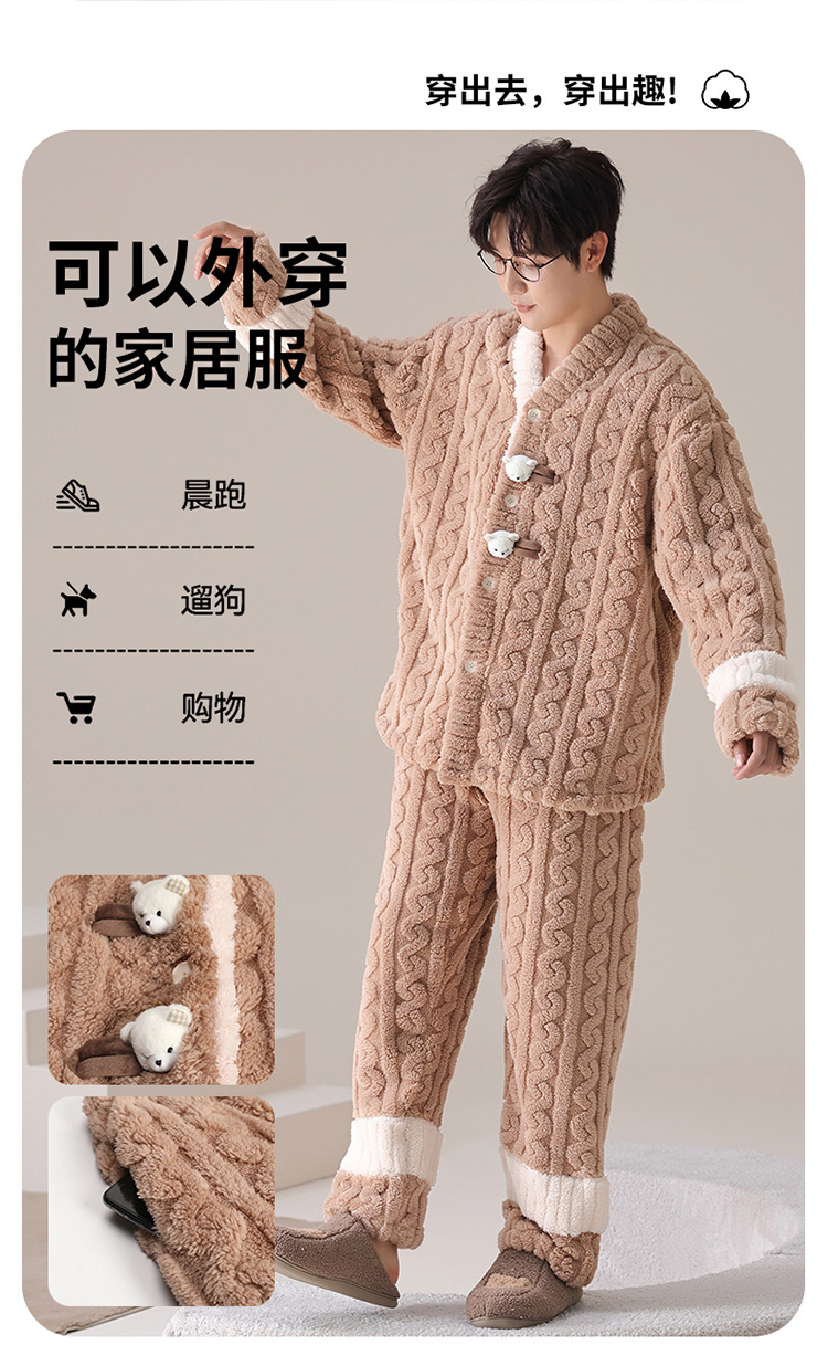 새로운 산호 양털 잠옷 남자의 가을과 겨울 기모 두꺼운 따뜻한 세트 플란넬 겉옷 카디건 홈 옷스토어 가기