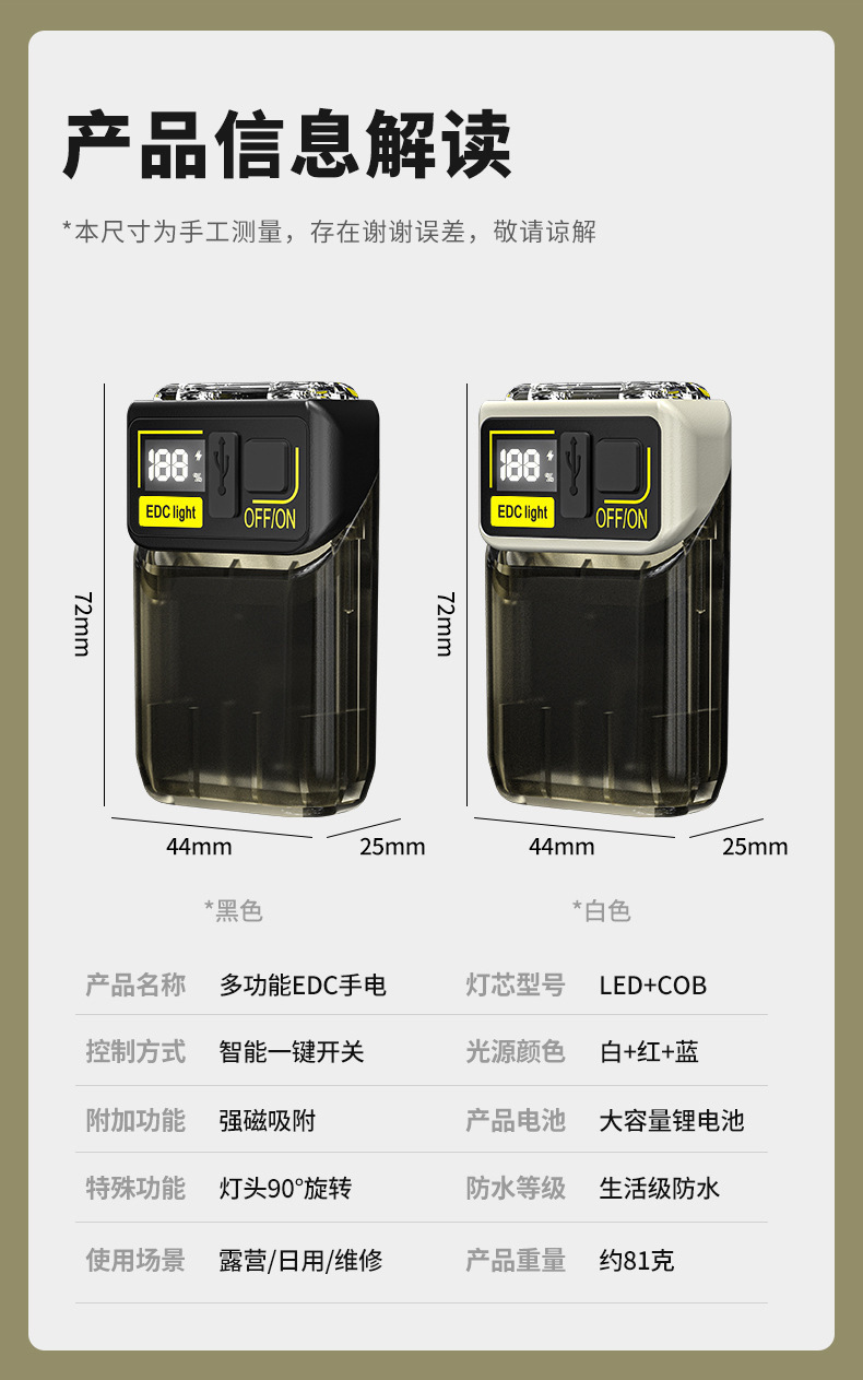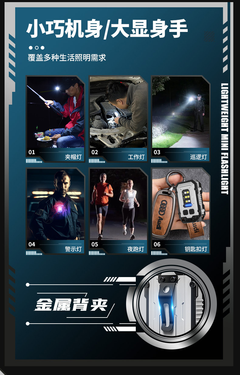 국경 간 새로운 키 체인 라이트 Type-C 충전식 야외 작업 조명 이중 광원 휴대용 밝은 미니 손전등