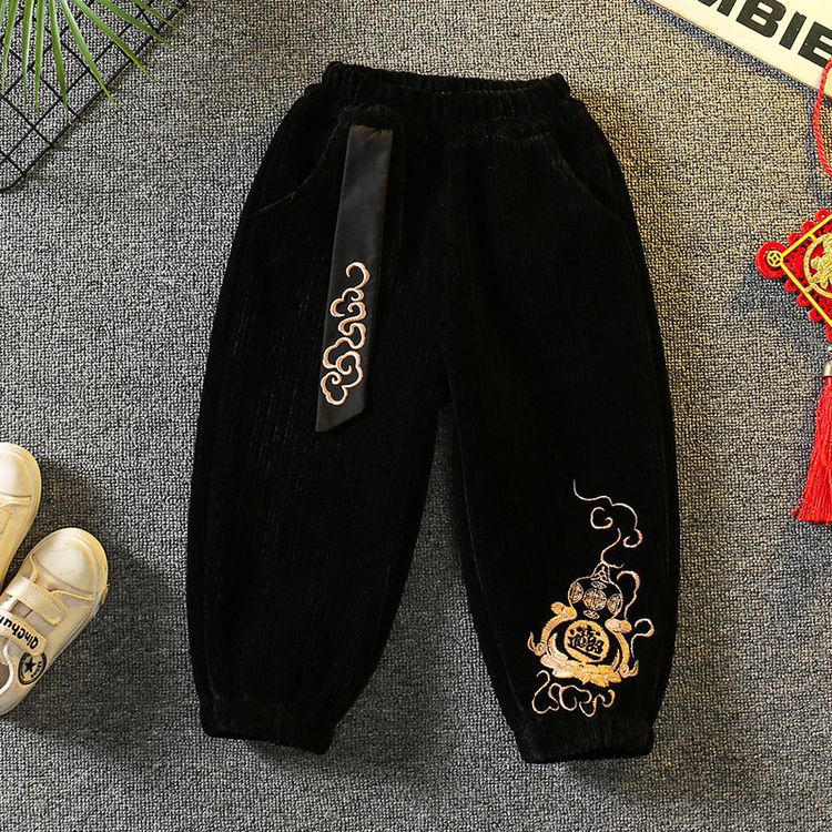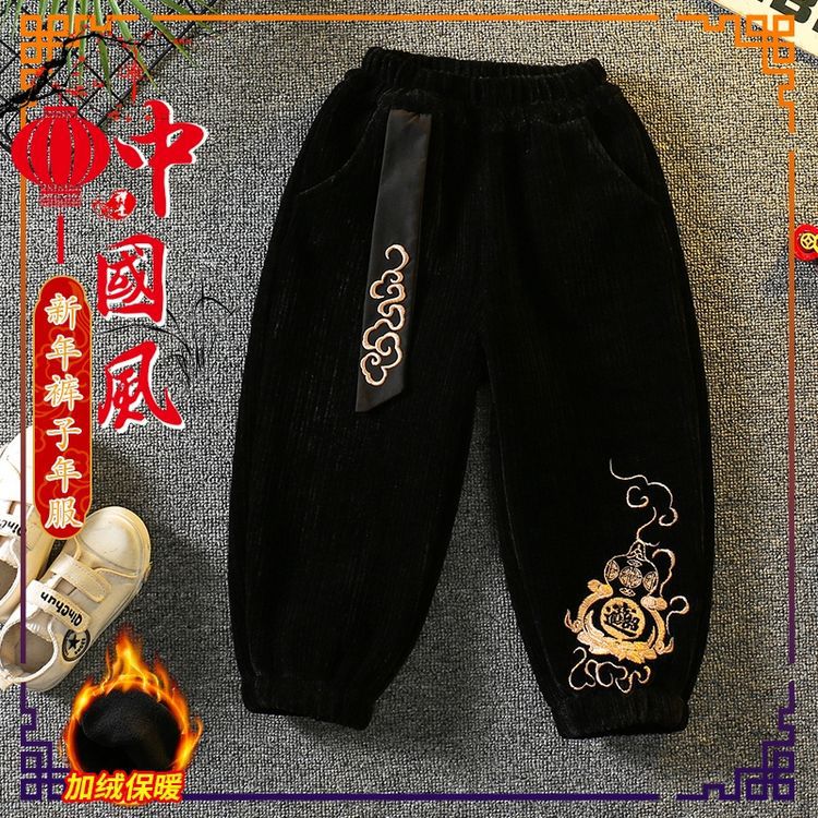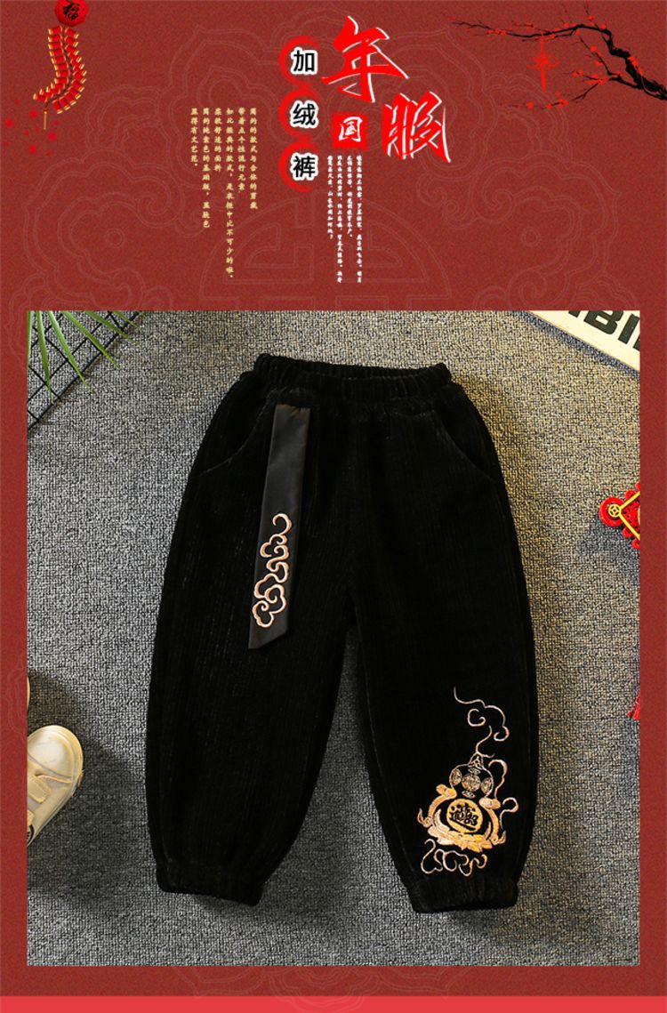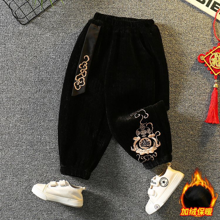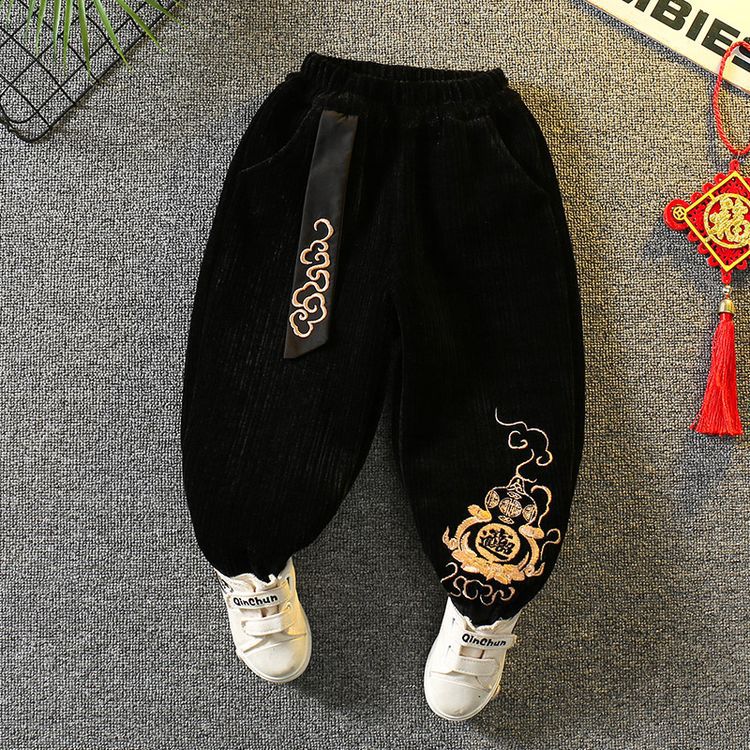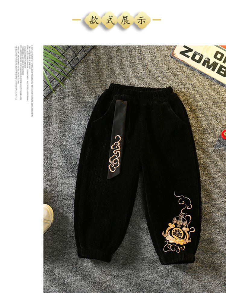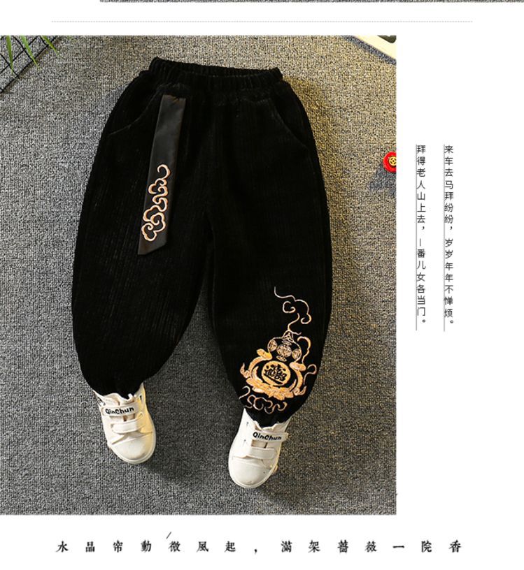 소년 바지 기모 2025 새로운 어린이 튀김 거리 중국 스타일 코듀로이 어린이 두꺼운 탕 원피스 따뜻한 바지