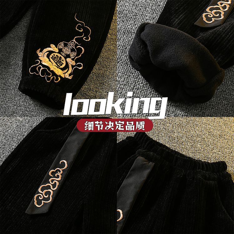 소년 바지 기모 2025 새로운 어린이 튀김 거리 중국 스타일 코듀로이 어린이 두꺼운 탕 원피스 따뜻한 바지스토어 가기