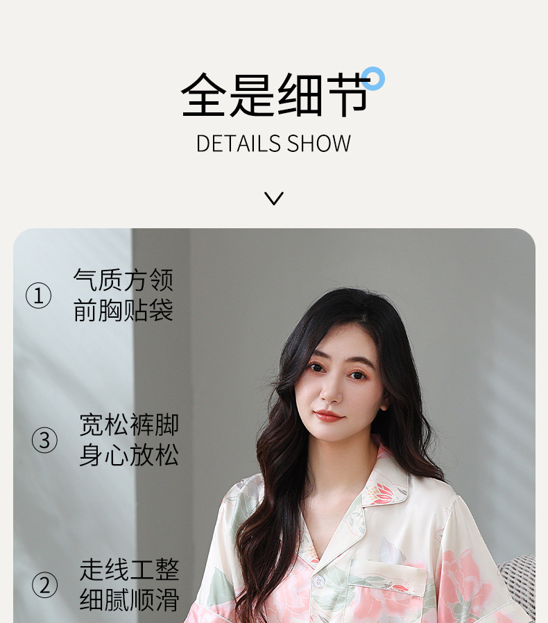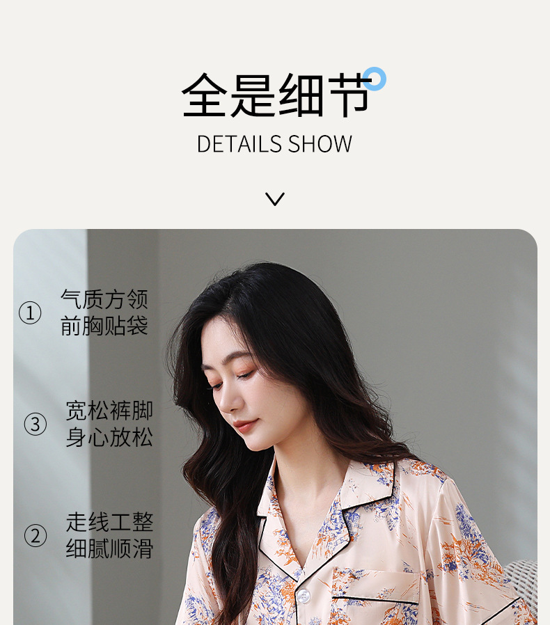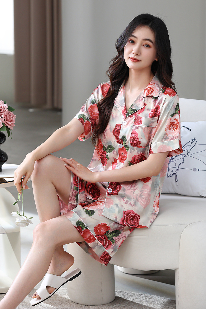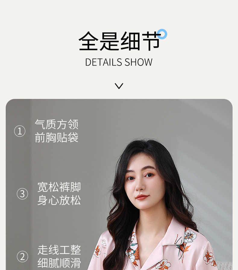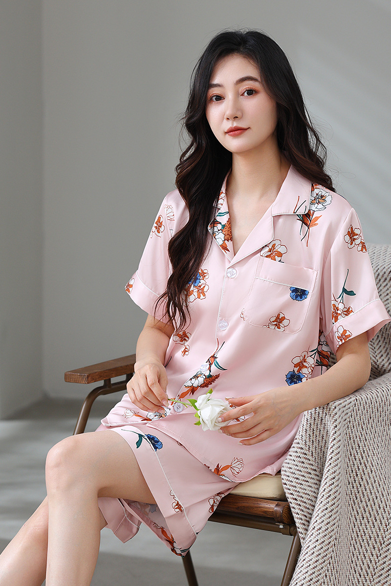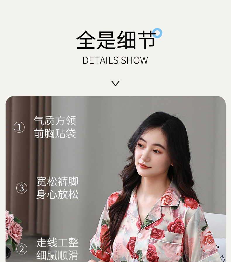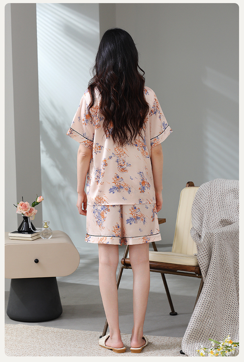 [쇼핑몰에서도 같은 스타일] 고급스러운 아이스 실크 반팔 반바지 잠옷 여성 여름 얇은 모조 실크 홈웨어 세트스토어 가기