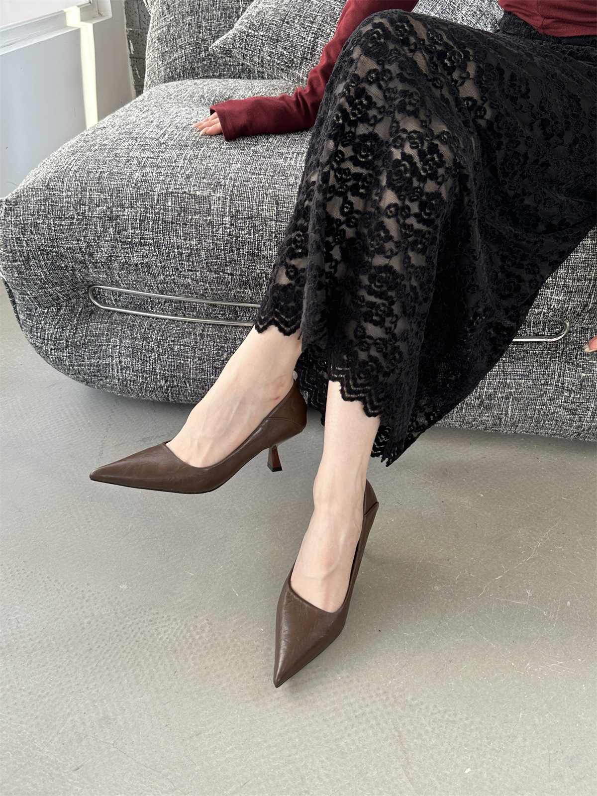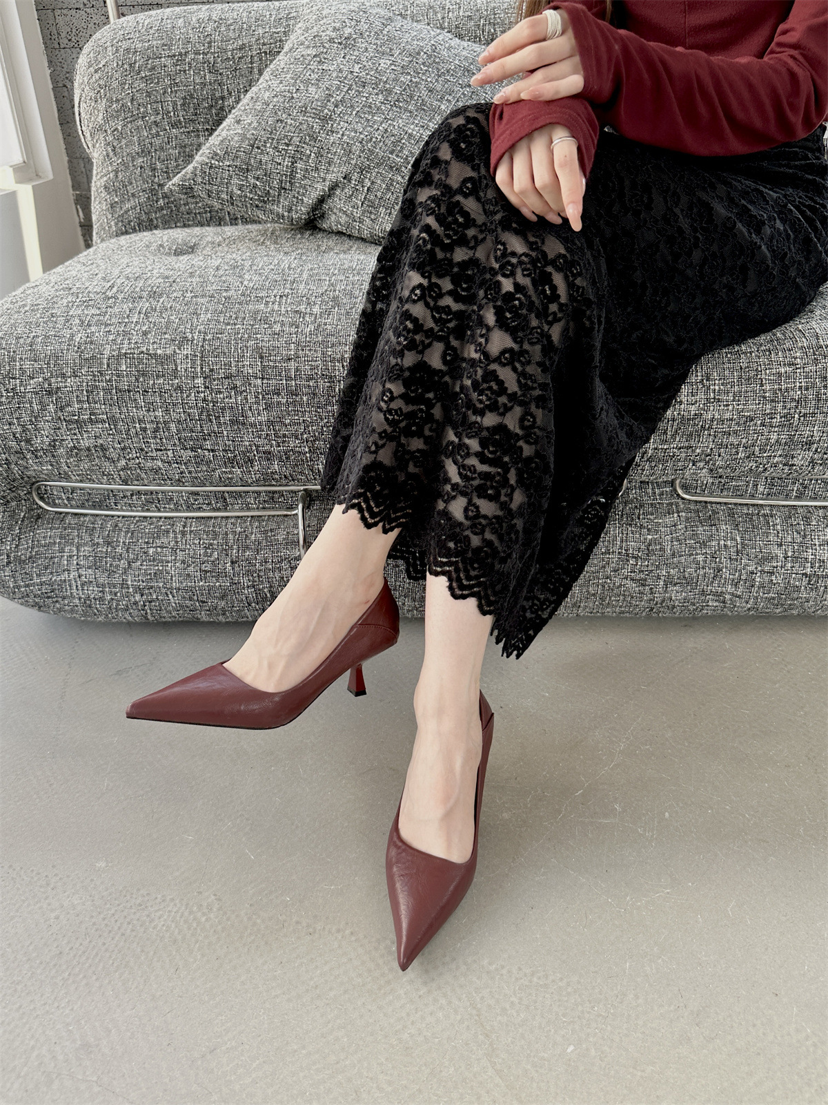 검은 하이힐 3cm 부드러운 가죽 부드러운 바닥 작업 장시간 서있는 여성을위한 신발 피곤 발 인터뷰 작업 새끼 고양이 발 뒤꿈치 신발스토어 가기