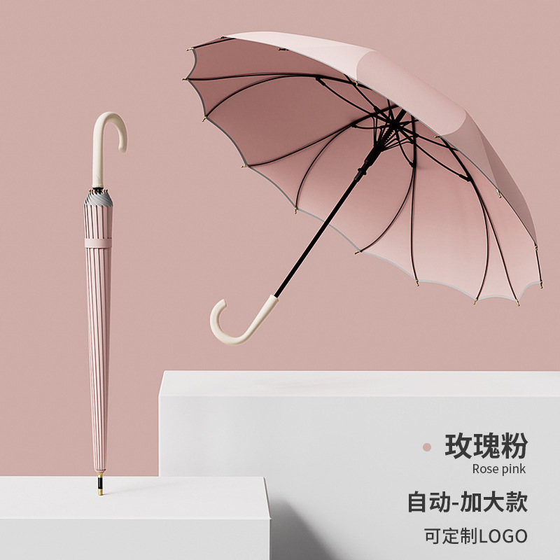 새로운 스트레이트 핸들 원피스 우산 소녀 높은 가치 자동 우산 증가 강화 두꺼운 안티 비바람 긴 손잡이 우산