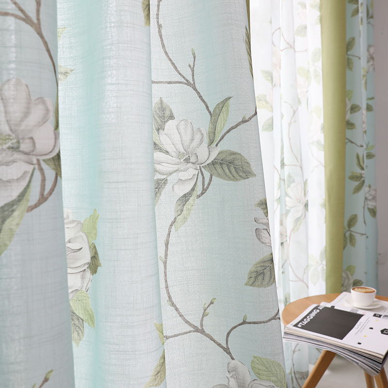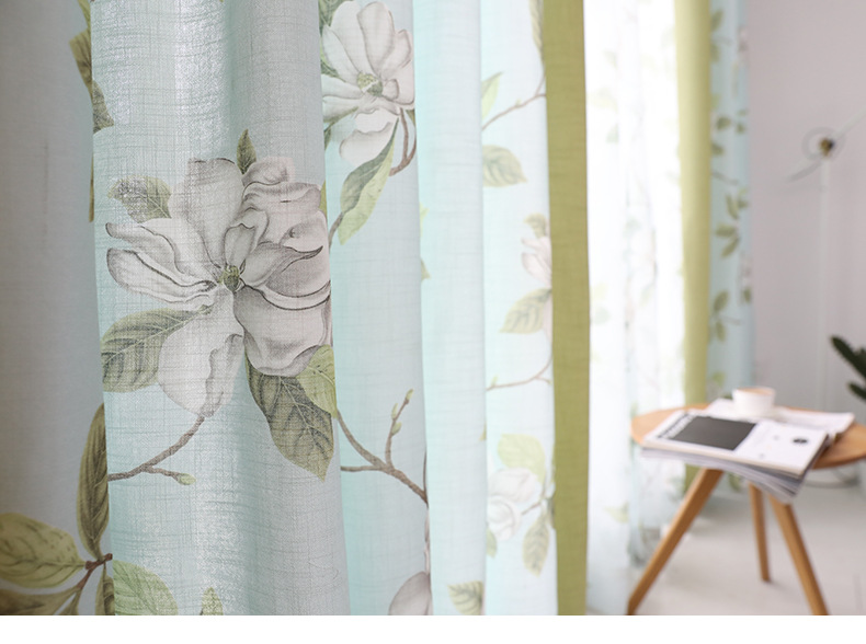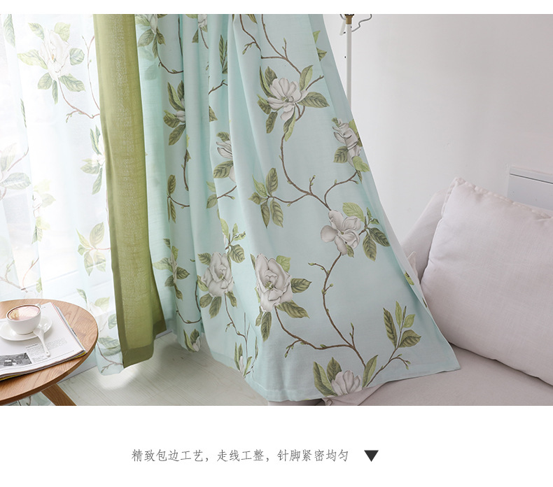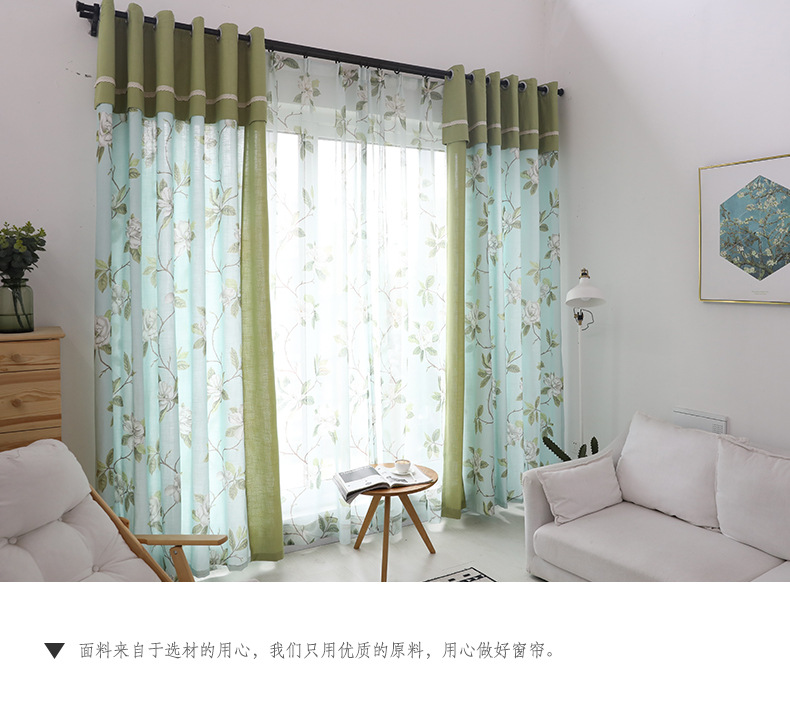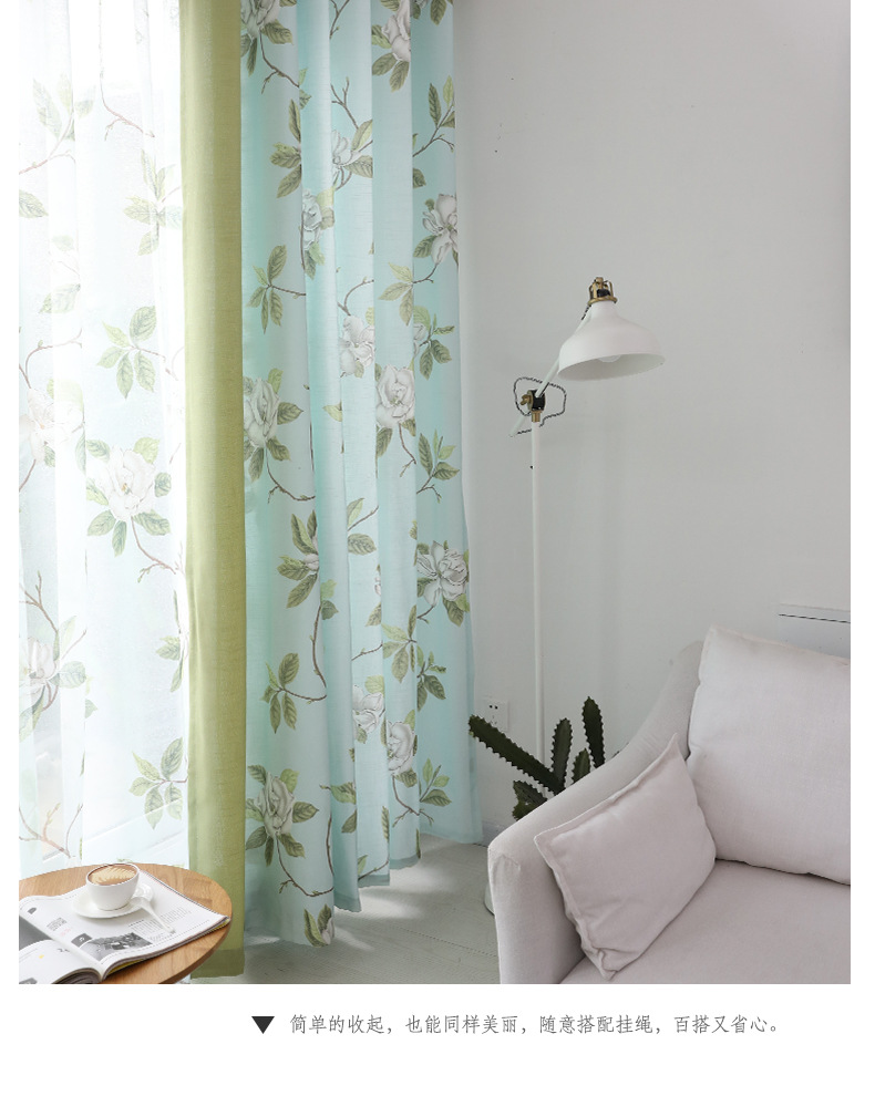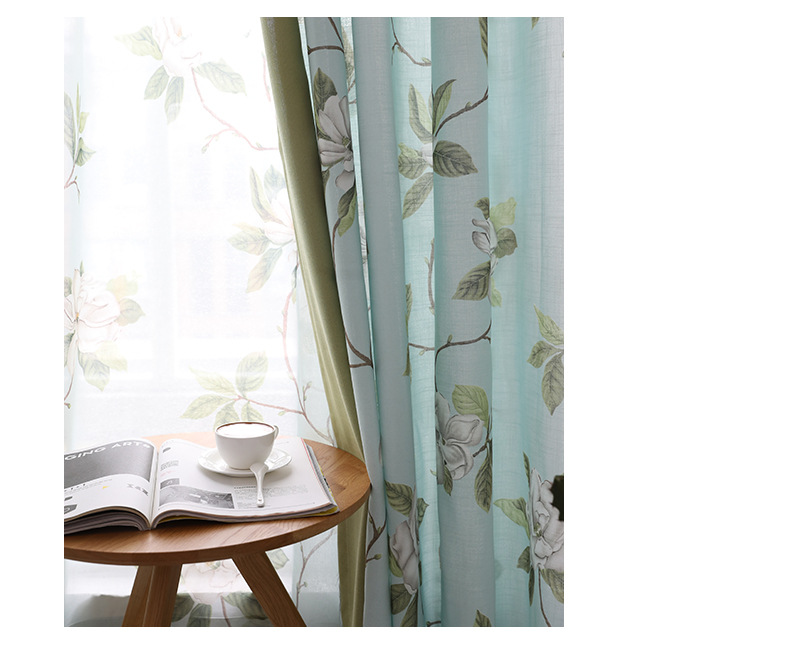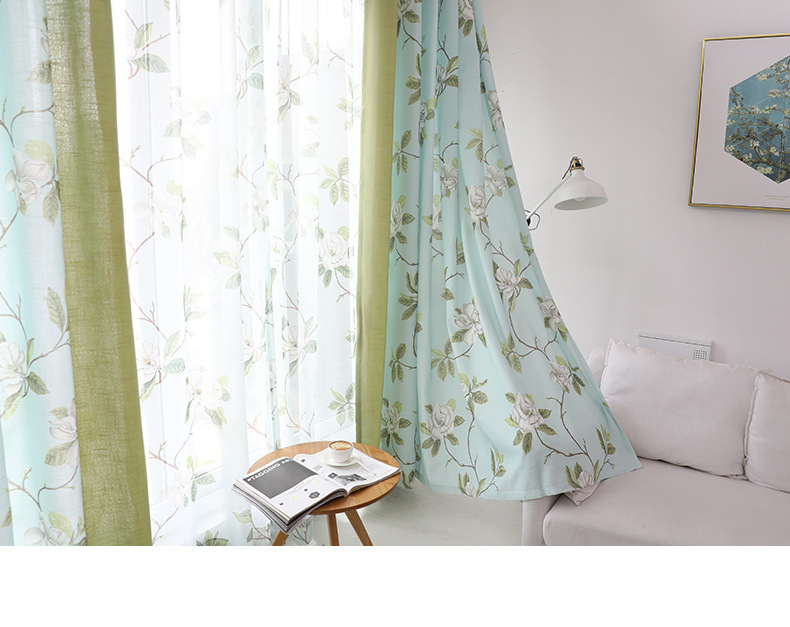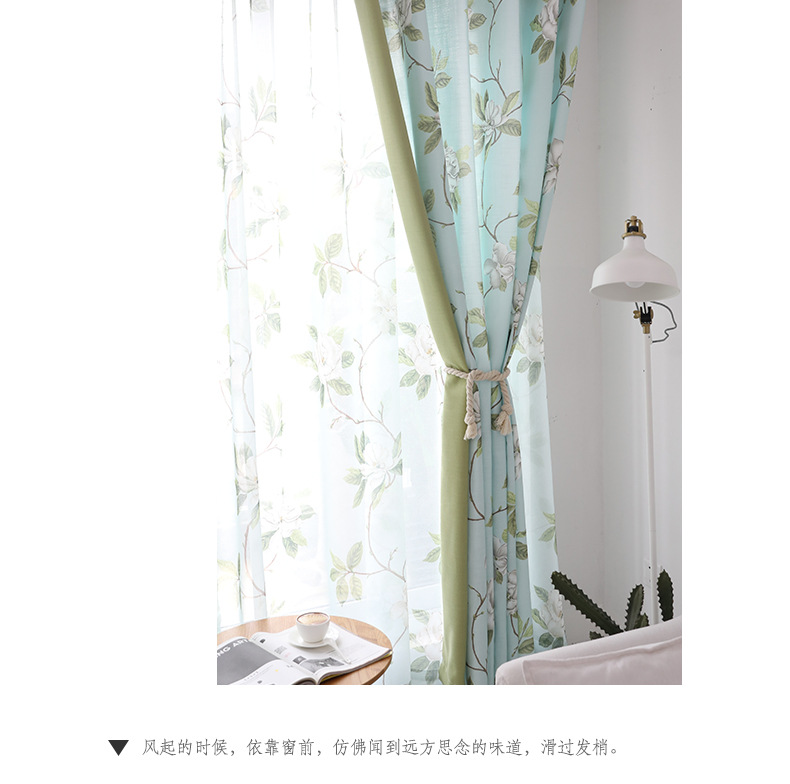 미국 목가적 인 국가 꽃 커튼 침실 바닥 신선한 모조 면화와 린넨 반 정전 베이 창 커튼 발코니스토어 가기