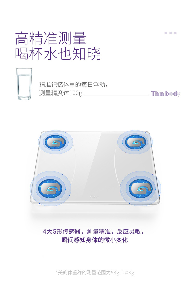 Midea 체중계 가정용 정확한 충전 계량 고정밀 전자 저울 Bluetooth 앱 범용 체중계