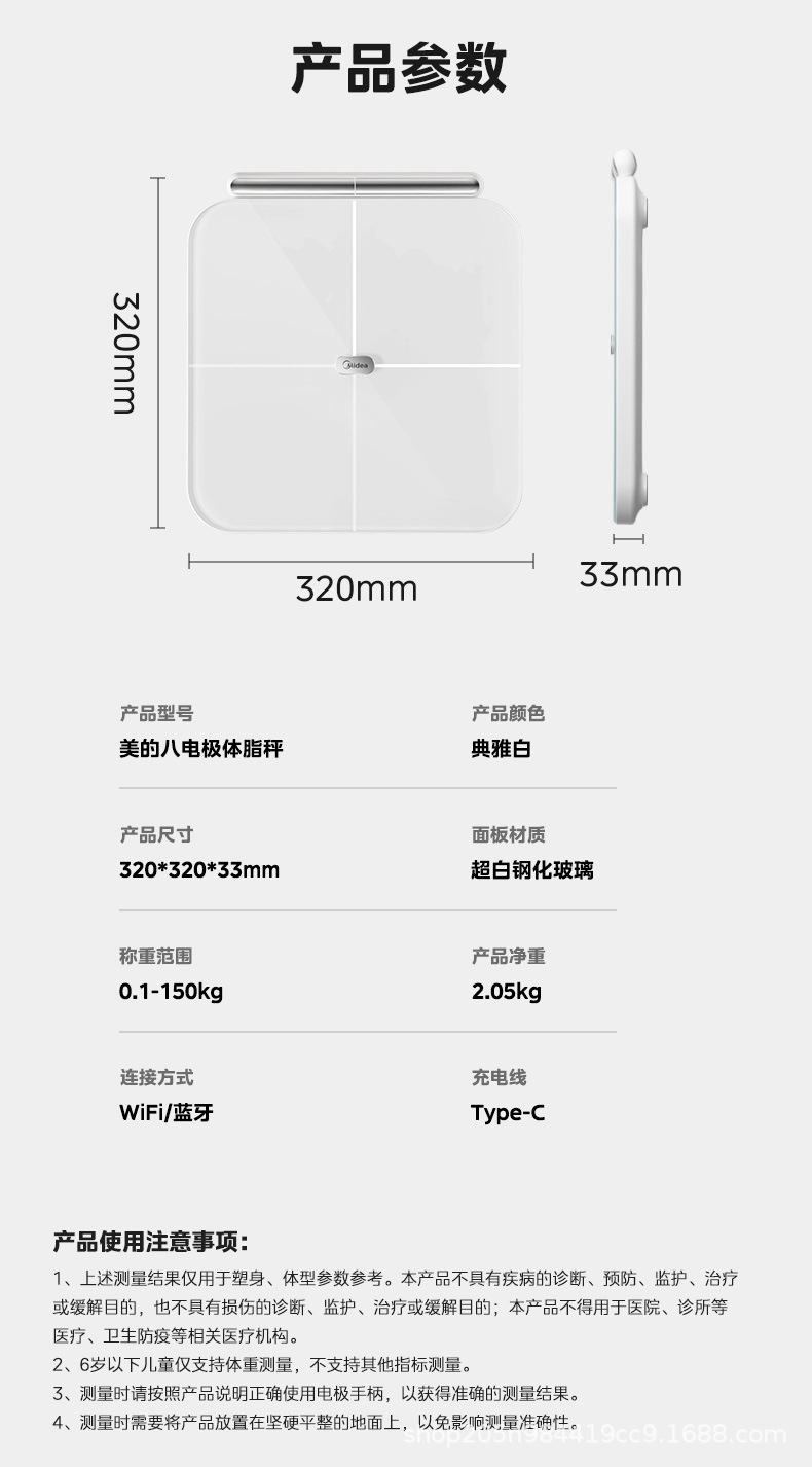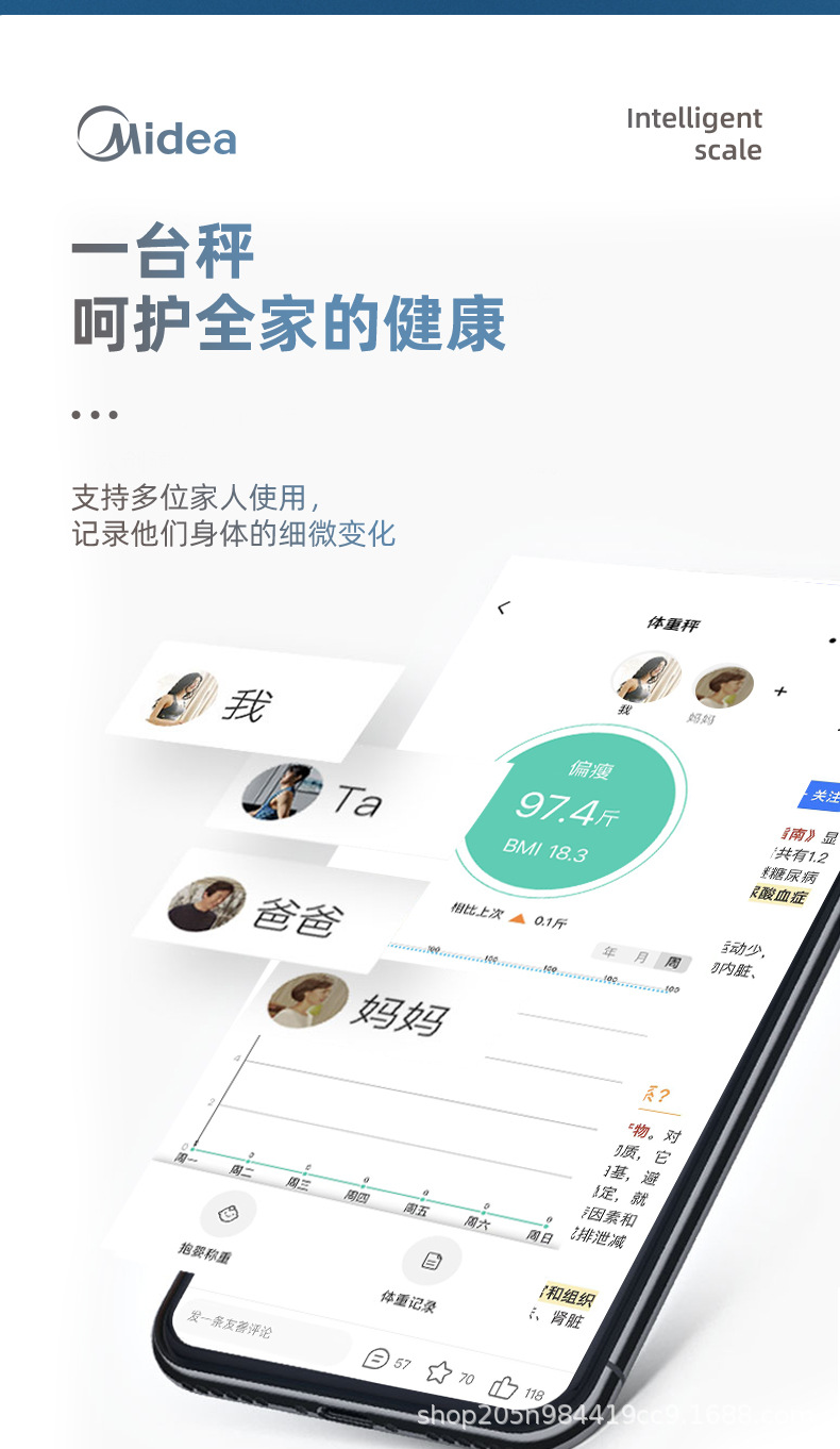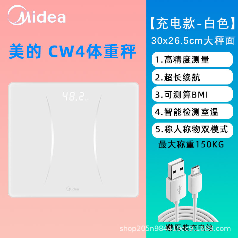 Midea 체중계 가정용 정확한 충전 계량 고정밀 전자 저울 Bluetooth 앱 범용 체중계스토어 가기