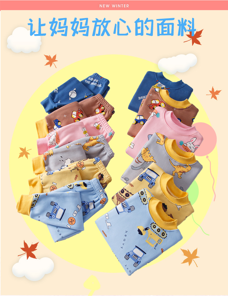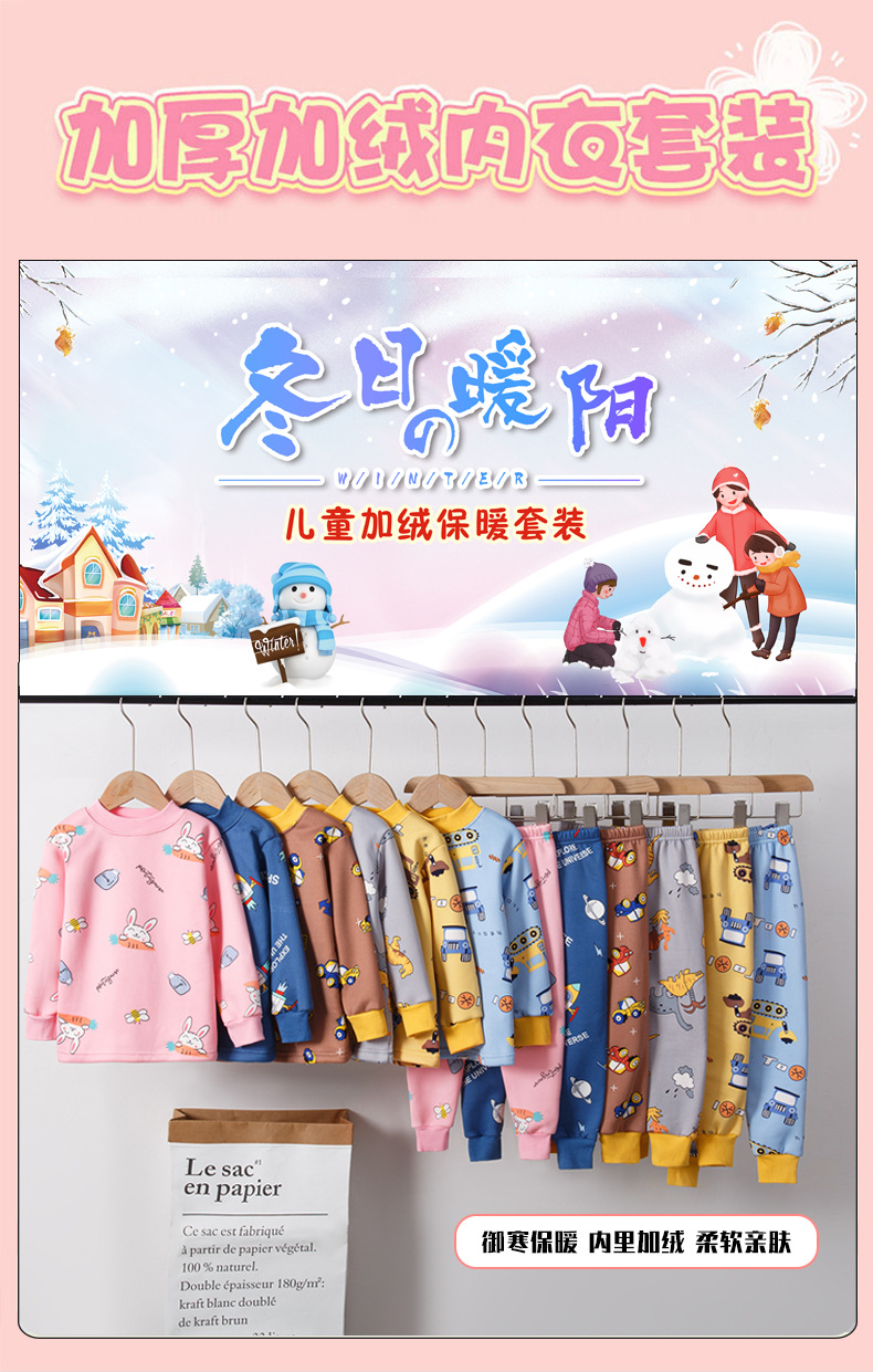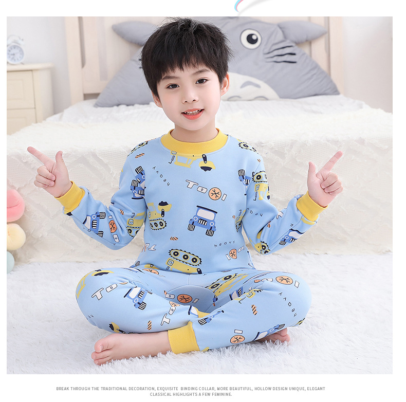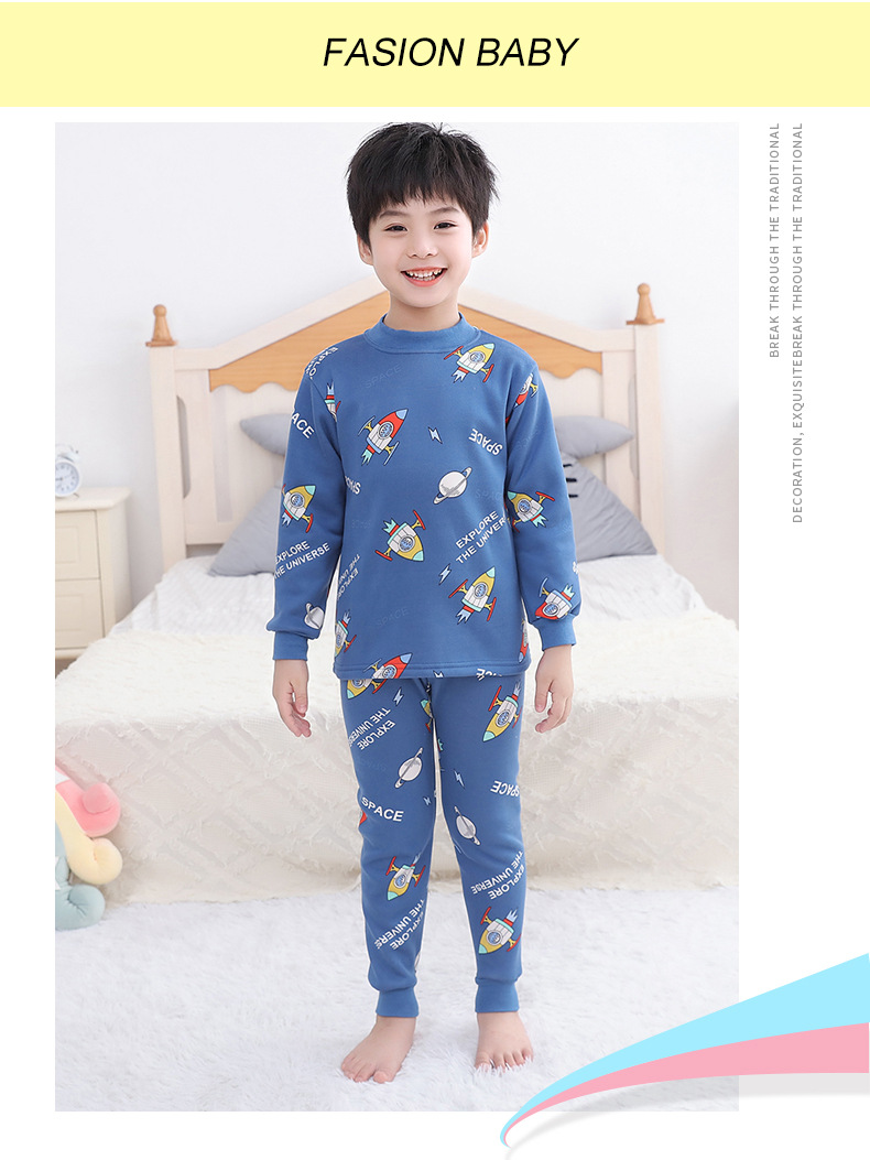 재고 도매 가을과 겨울 어린이 기모 열 속옷 새로운 만화 인쇄 소년과 소녀 두꺼운 가정 잠옷스토어 가기