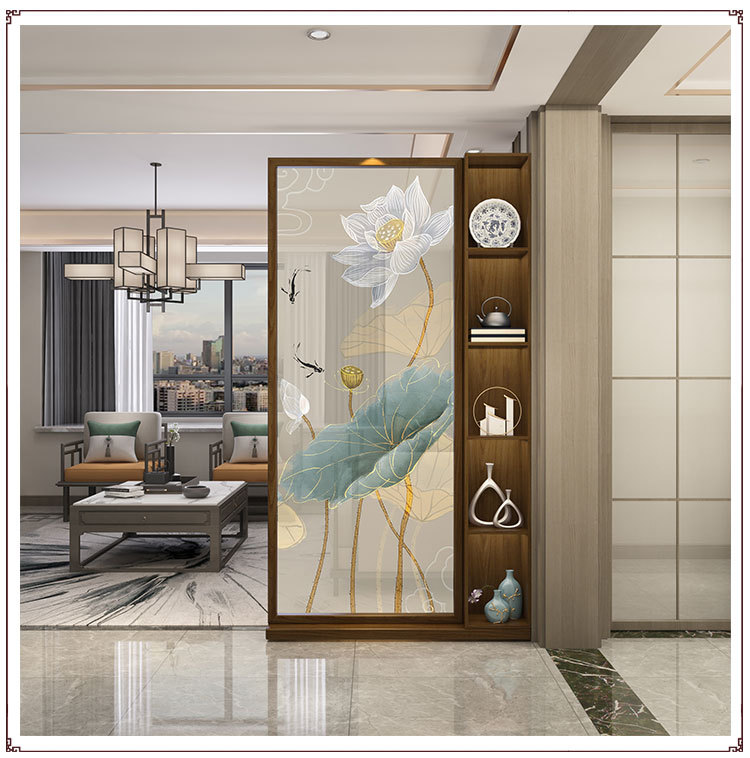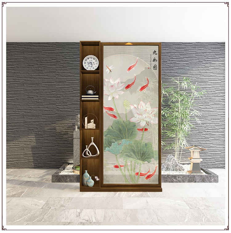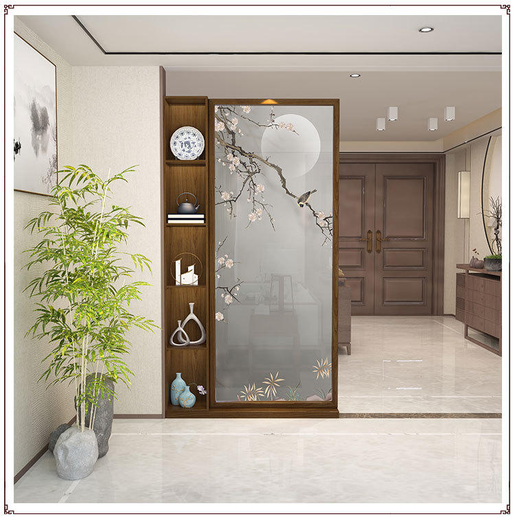 새로운 중국 스타일 도어 스크린 파티션 거실 2024 새로운 입구 캐비닛 도어 솔리드 우드 선반스토어 가기