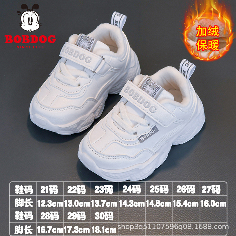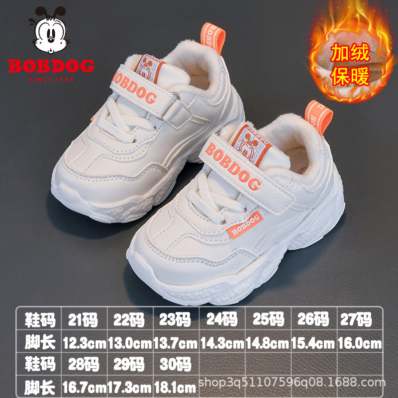 바부 콩 어린이 신발 공장 직접 공급 여자 면화 겨울 어린이 흰색 운동화 기모 두꺼운 아기 겨울 신발스토어 가기