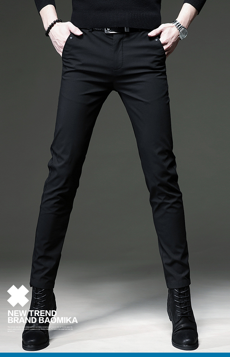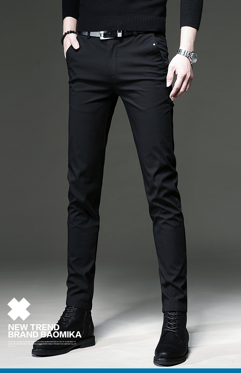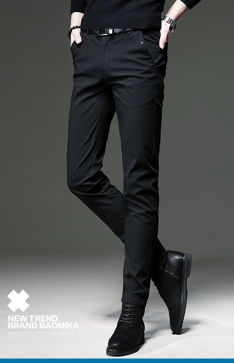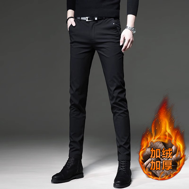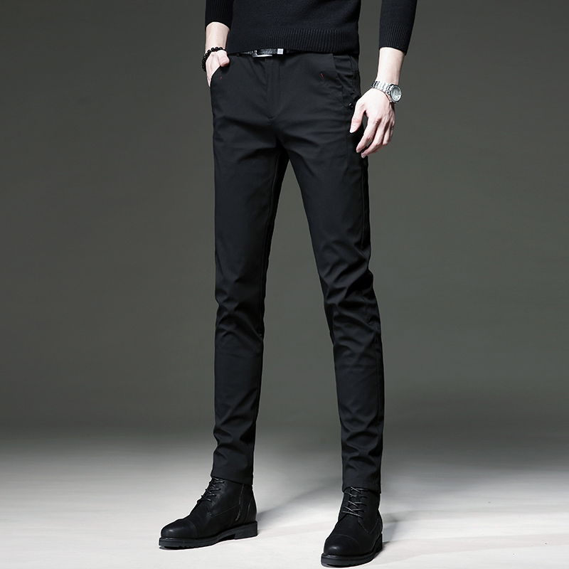 남성 캐주얼 팬츠 2025 봄 여름 슬림핏 신축성 경량 비즈니스 블랙 기모 슬림핏 바지