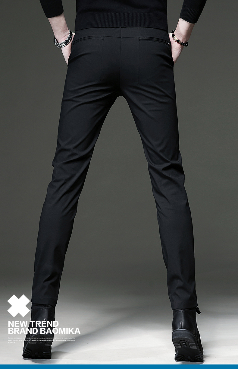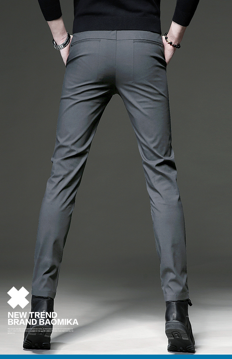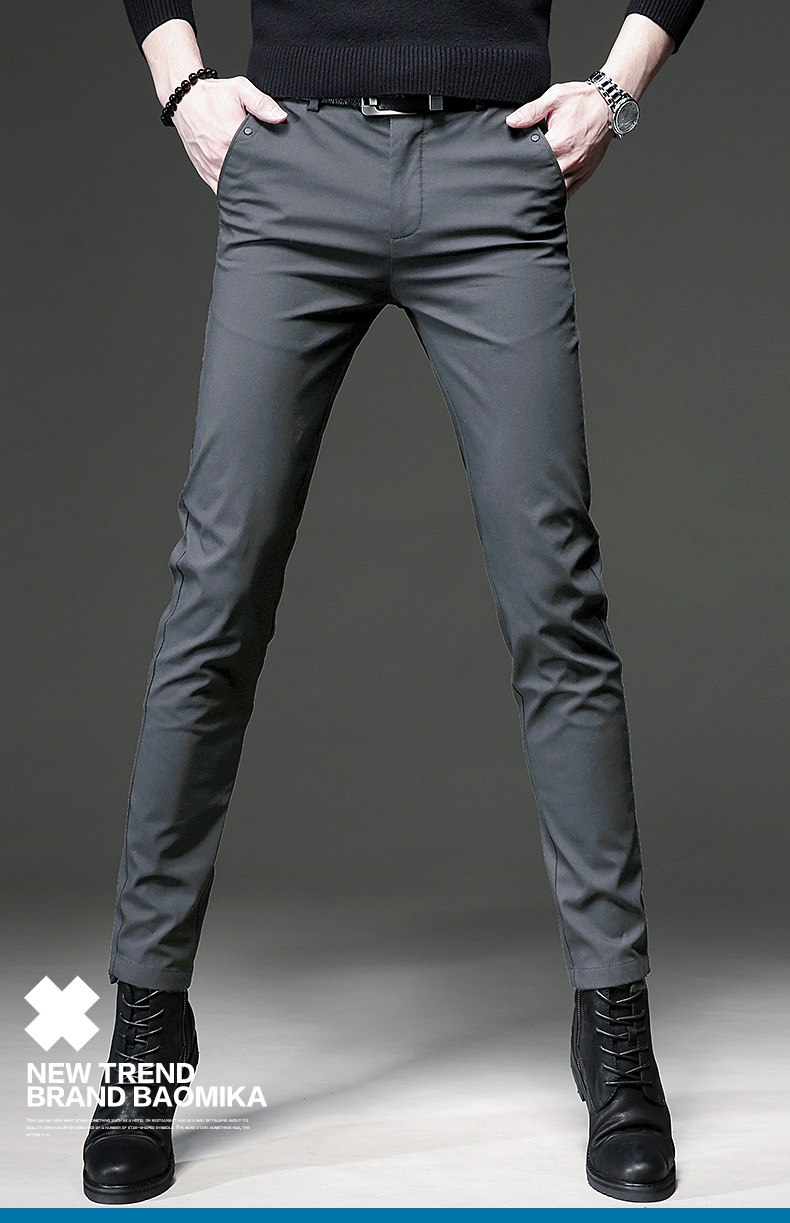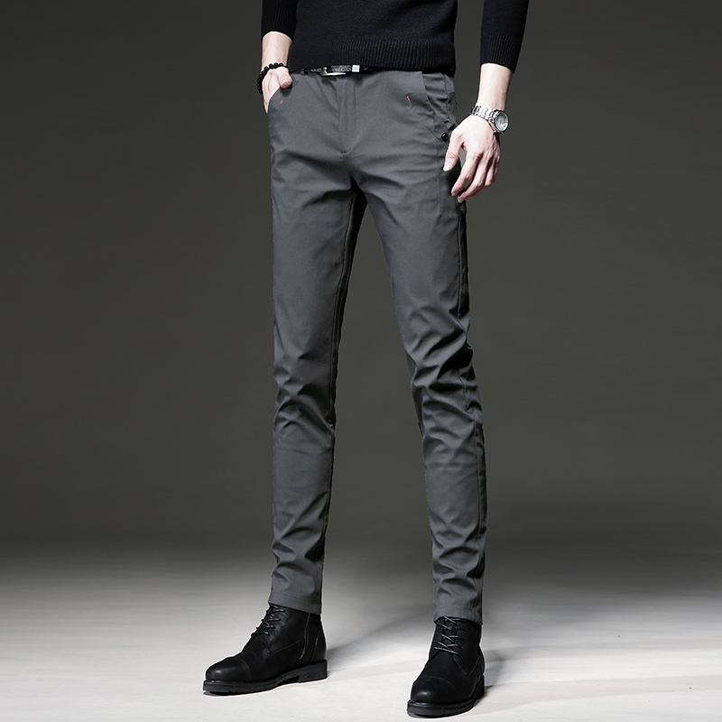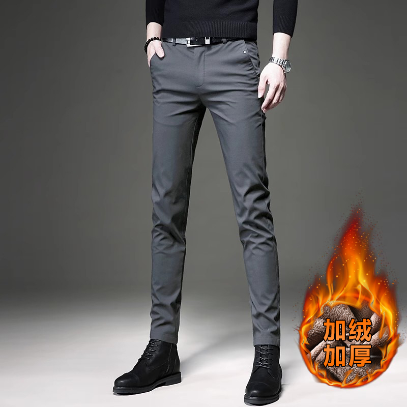 남성 캐주얼 팬츠 2025 봄 여름 슬림핏 신축성 경량 비즈니스 블랙 기모 슬림핏 바지