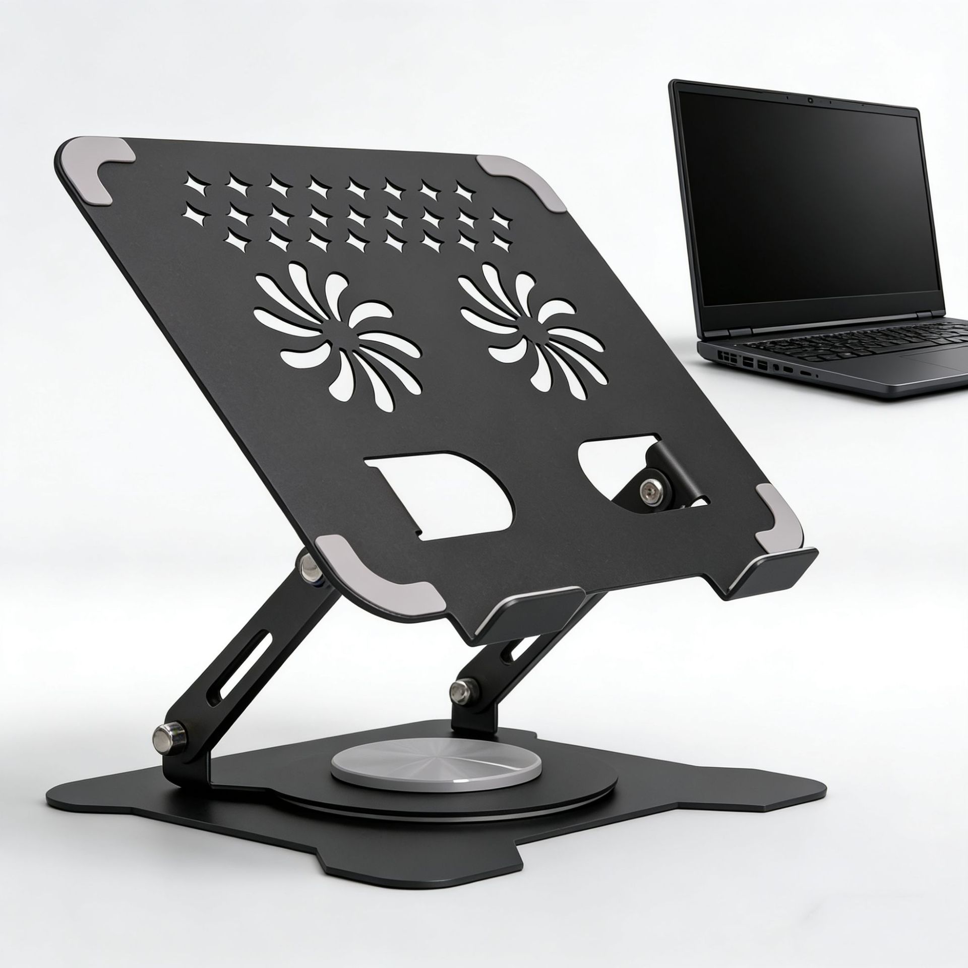 • 노트북/태블릿용 범용 [업그레이드된 탄소강 360°회전】쿨 블랙