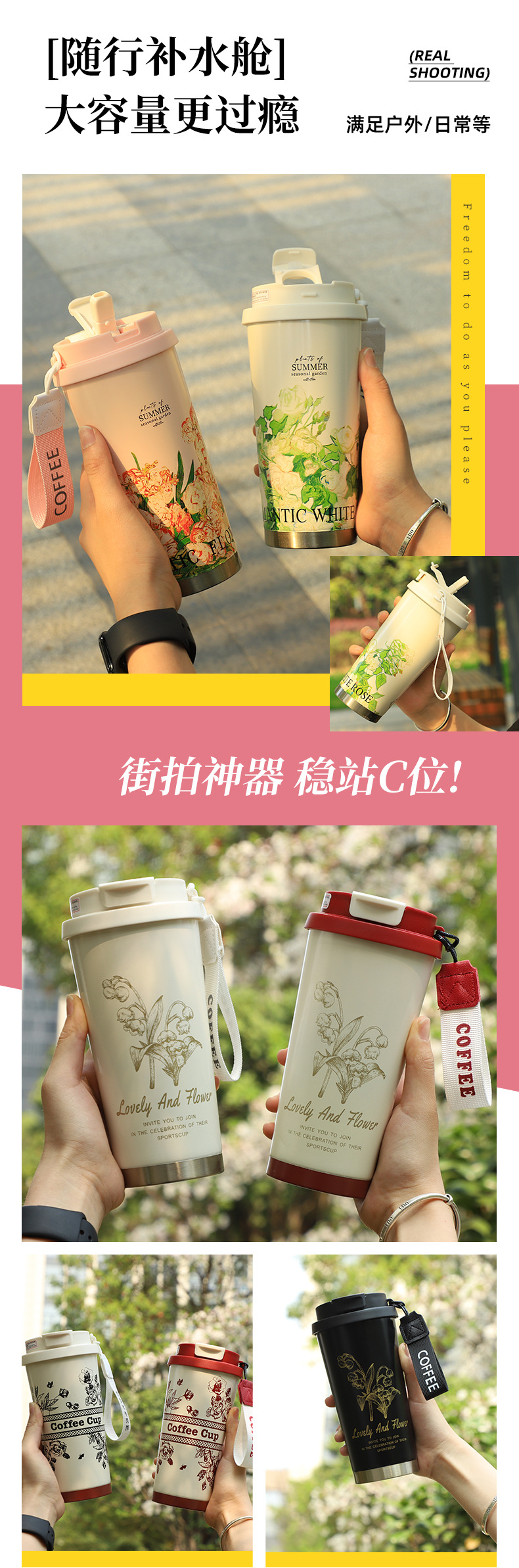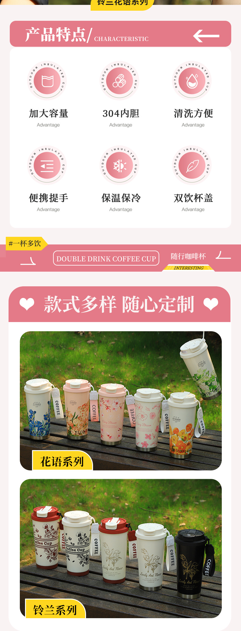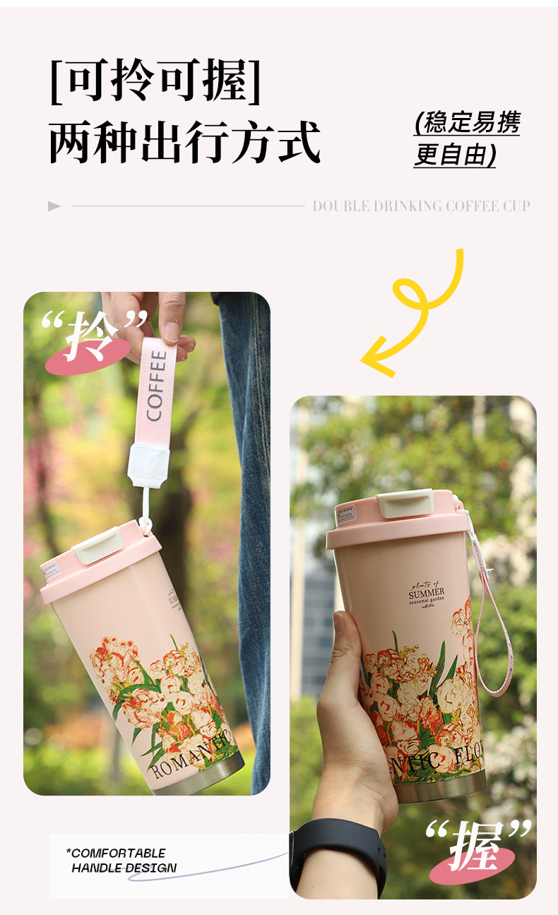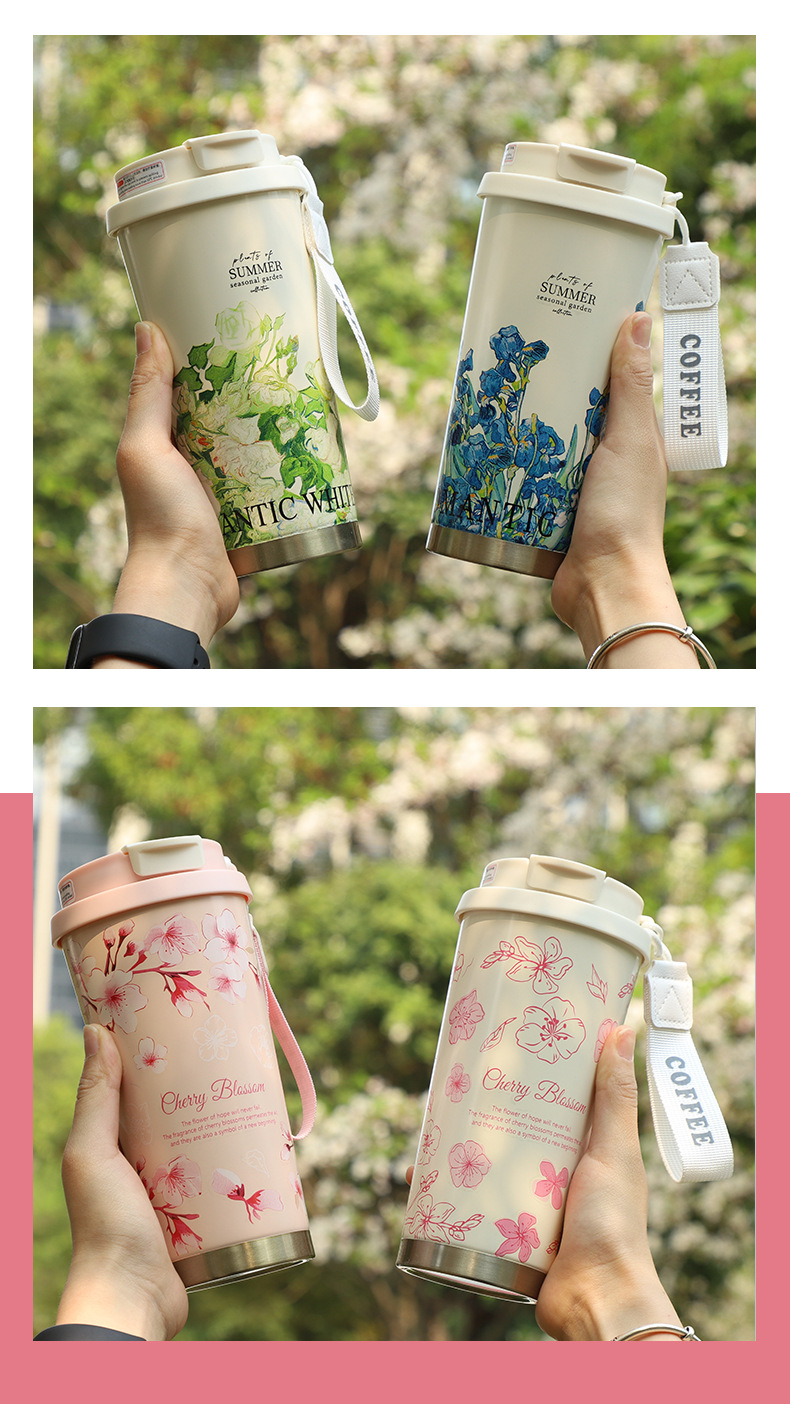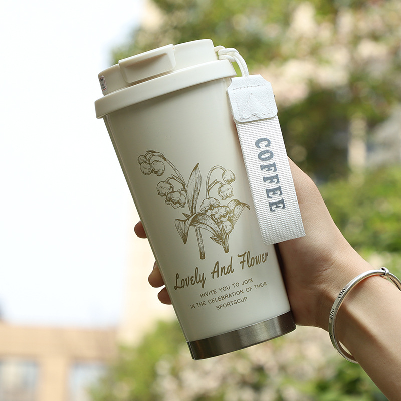 은방울꽃 보온병, 고급스럽고 우아한 여성용 예쁜 커피컵, 316 스테인리스 스틸 선물용 맞춤 제작 물컵스토어 가기