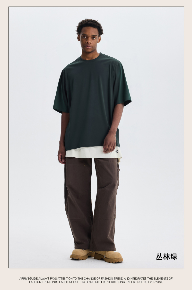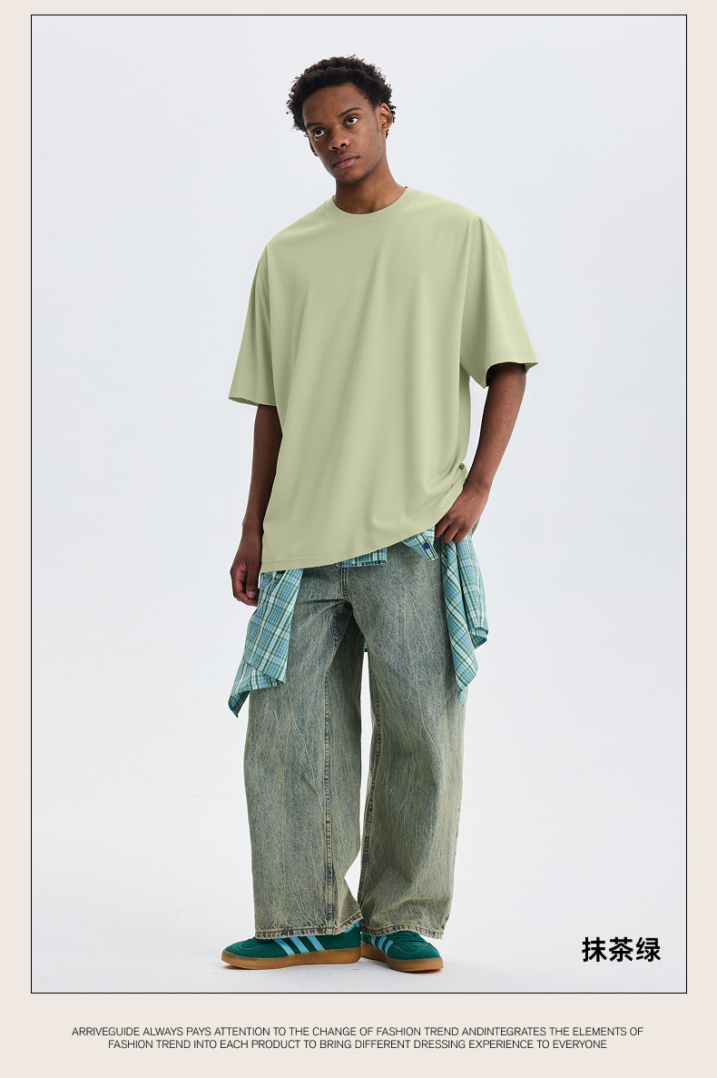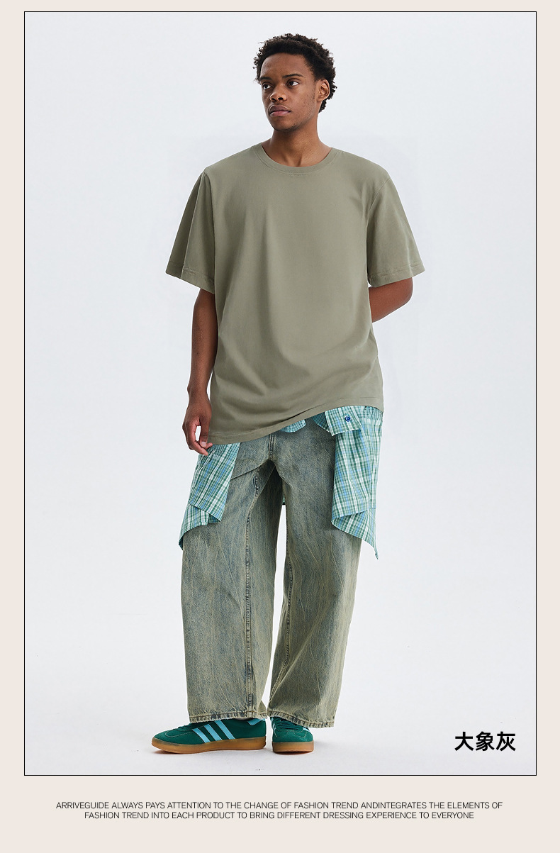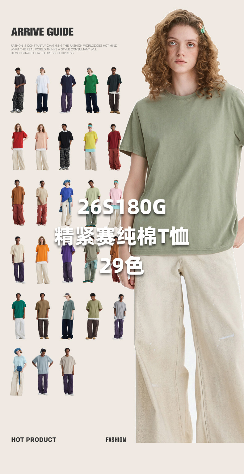 Kuyuanwai 180g 퓨어 코튼 반팔 여름 남성용 얇은 캐주얼 청소년 라운드 넥 셔츠 루즈 티셔츠