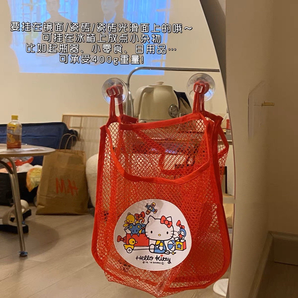 KT 고양이 만화 애니메이션 수납 걸이형 가방 대용량 잡화 걸이형 수납 가방 흡착식 폴리에스터 침실 수납