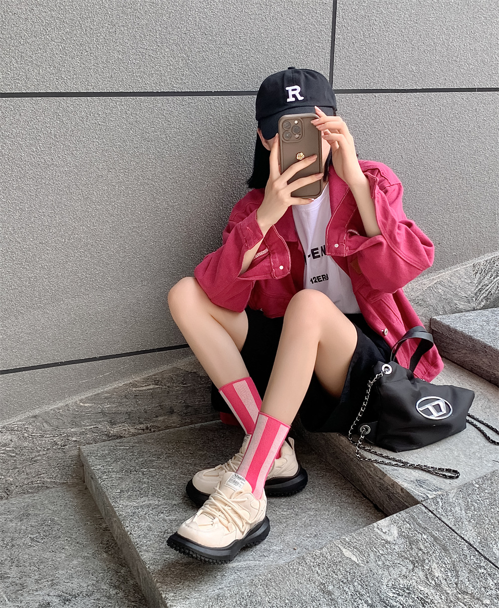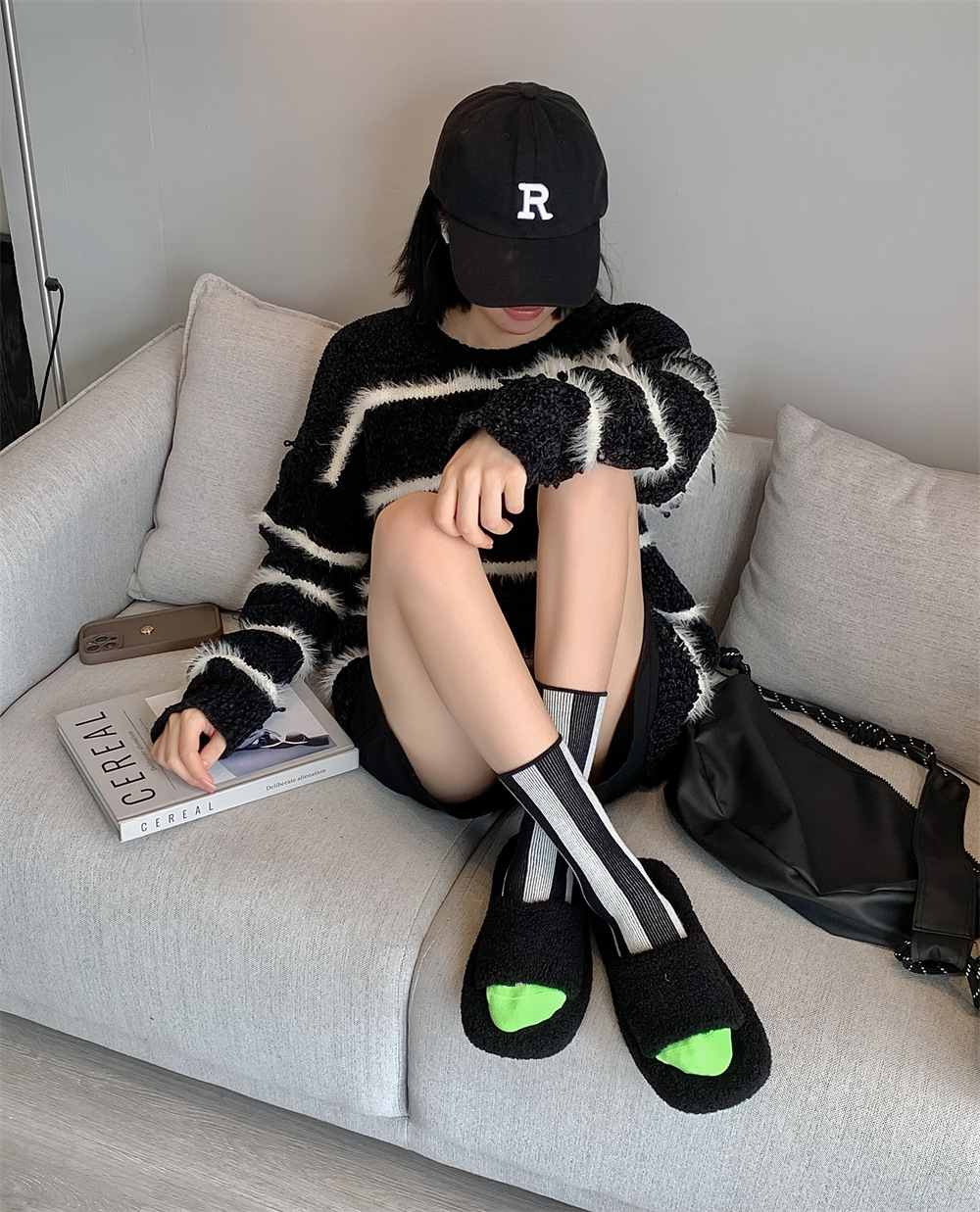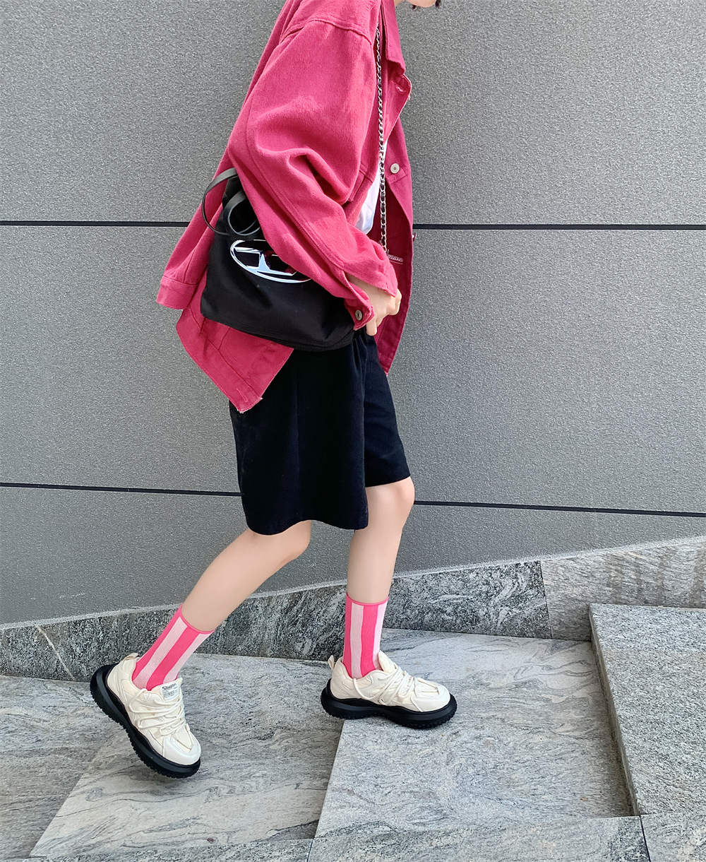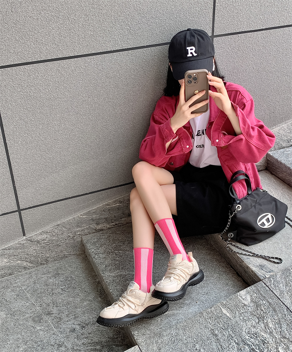 수직 곡물 양말 여성의 중간 튜브 양말 봄 가을과 겨울 빗질면 두꺼운 뼈없는 도파민 컬러 긴 튜브 더블 바늘스토어 가기
