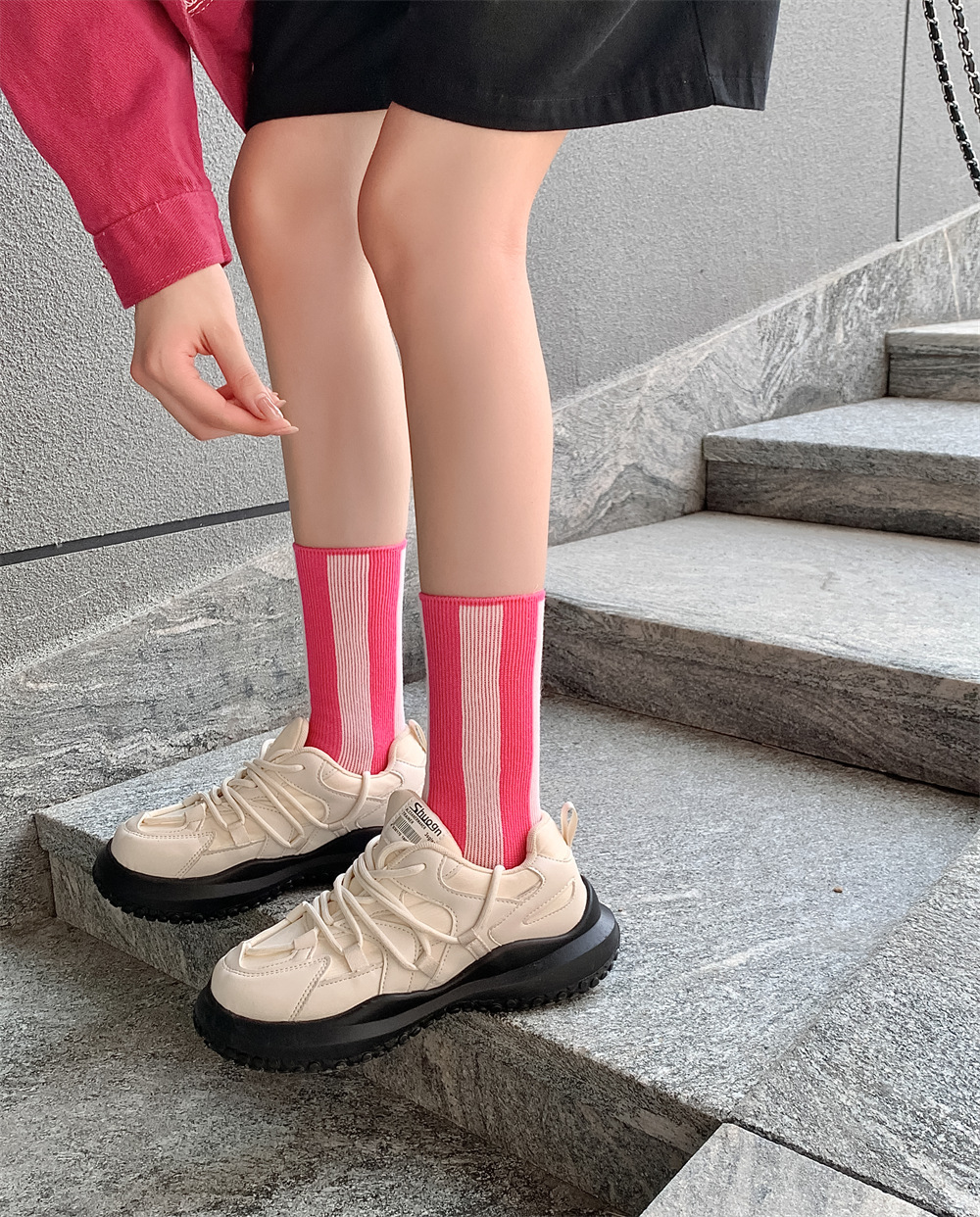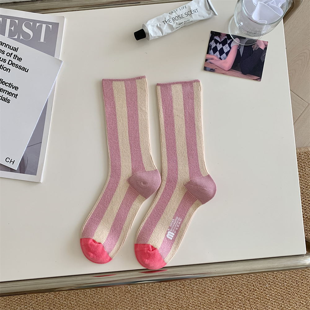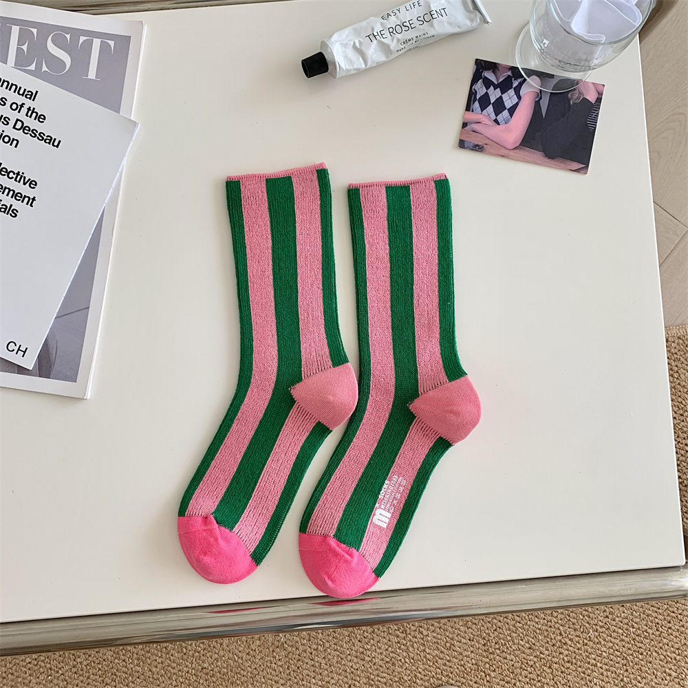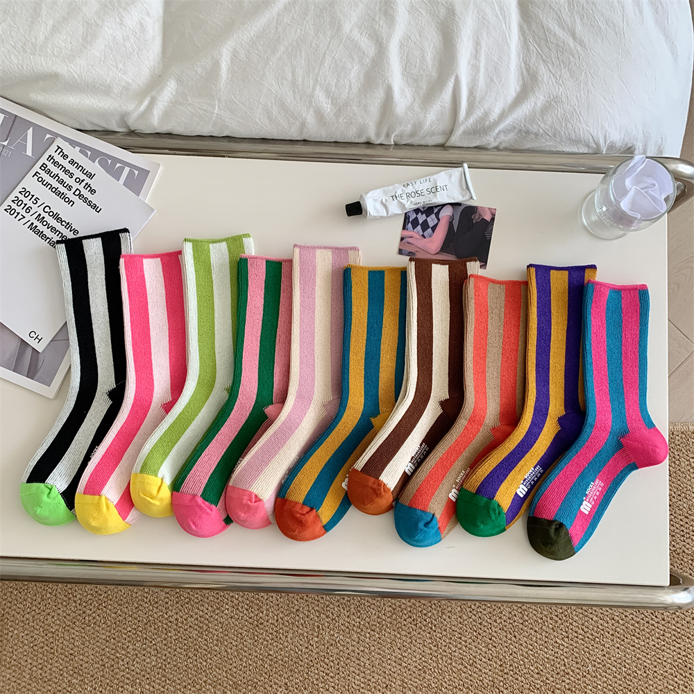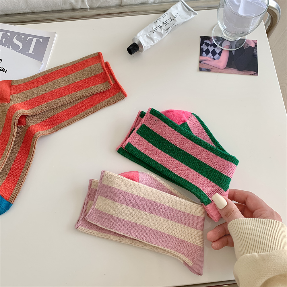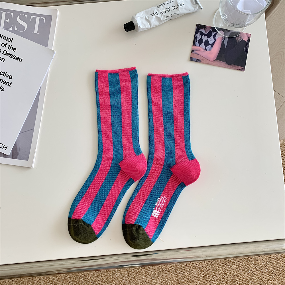 수직 곡물 양말 여성의 중간 튜브 양말 봄 가을과 겨울 빗질면 두꺼운 뼈없는 도파민 컬러 긴 튜브 더블 바늘