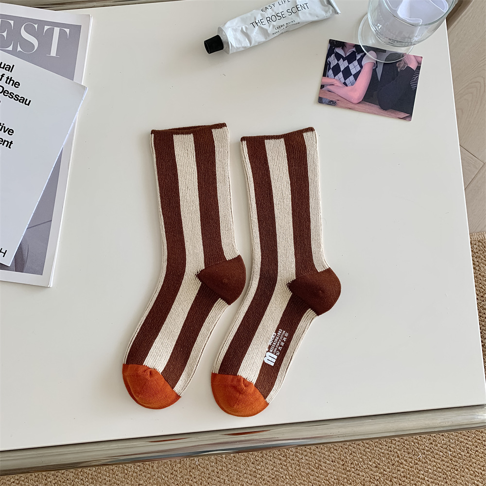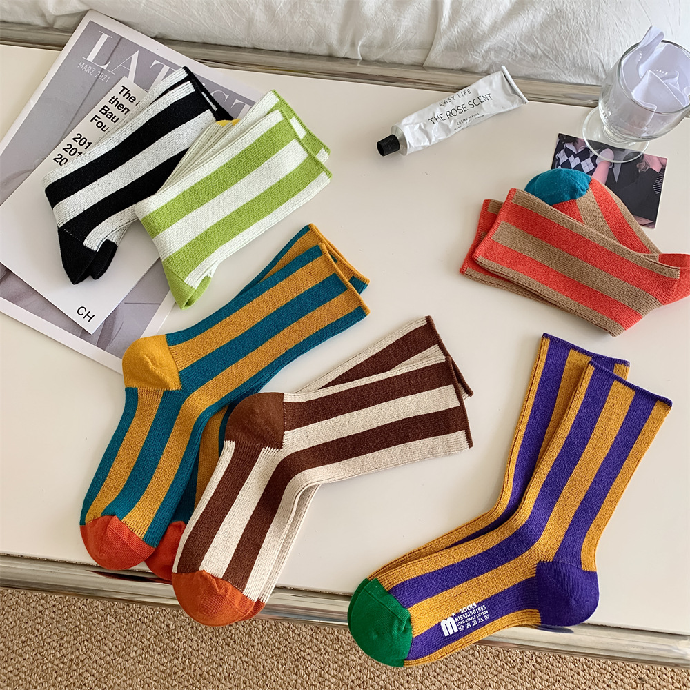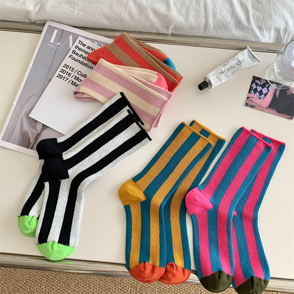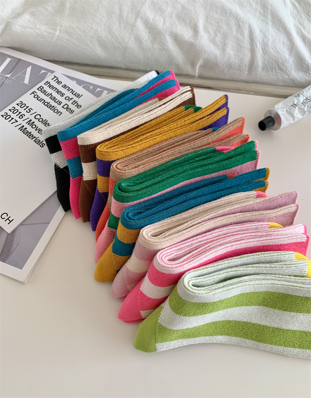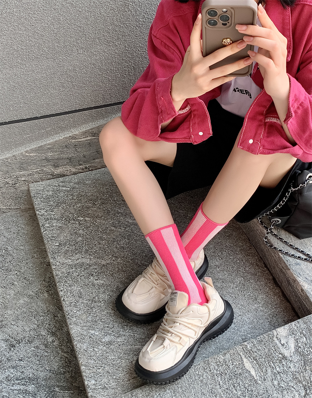 수직 곡물 양말 여성의 중간 튜브 양말 봄 가을과 겨울 빗질면 두꺼운 뼈없는 도파민 컬러 긴 튜브 더블 바늘