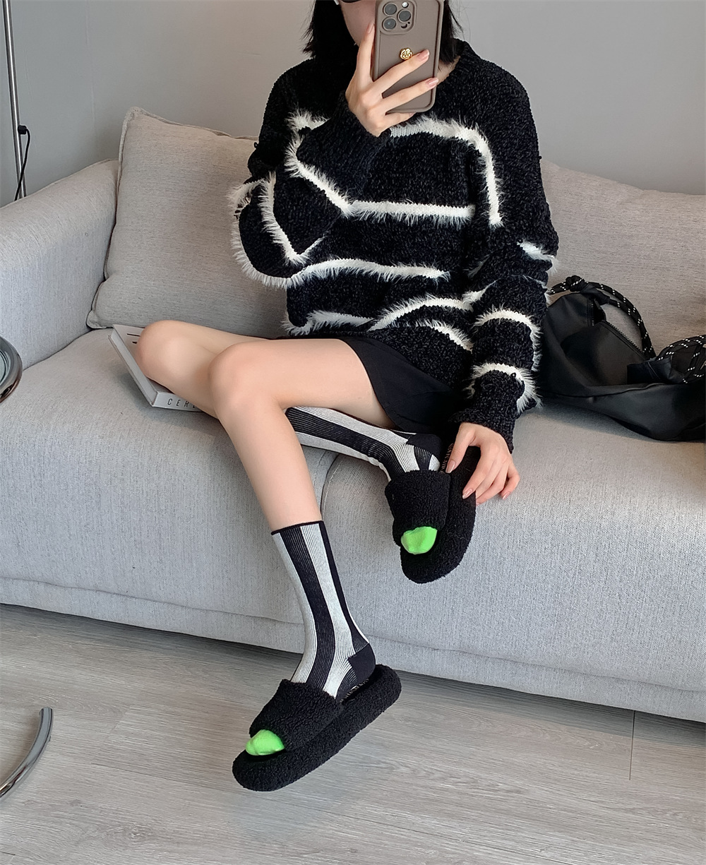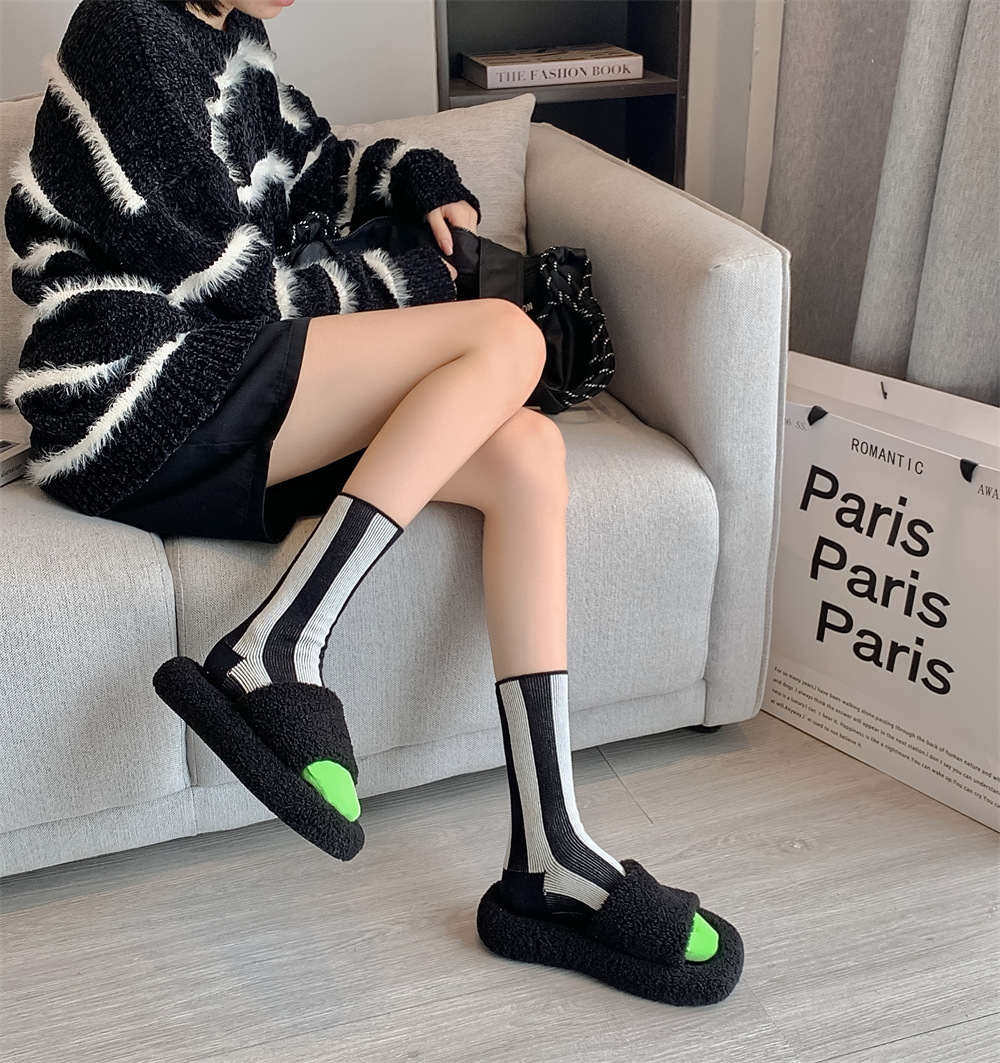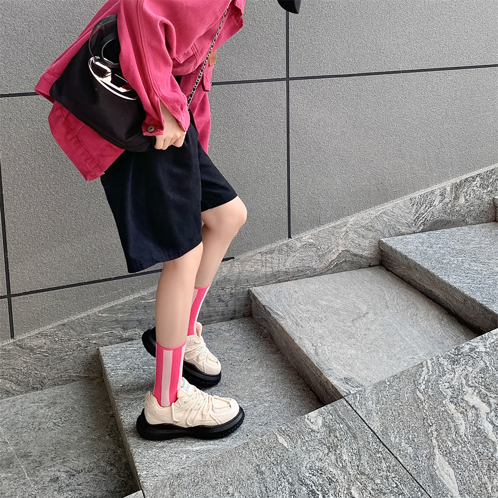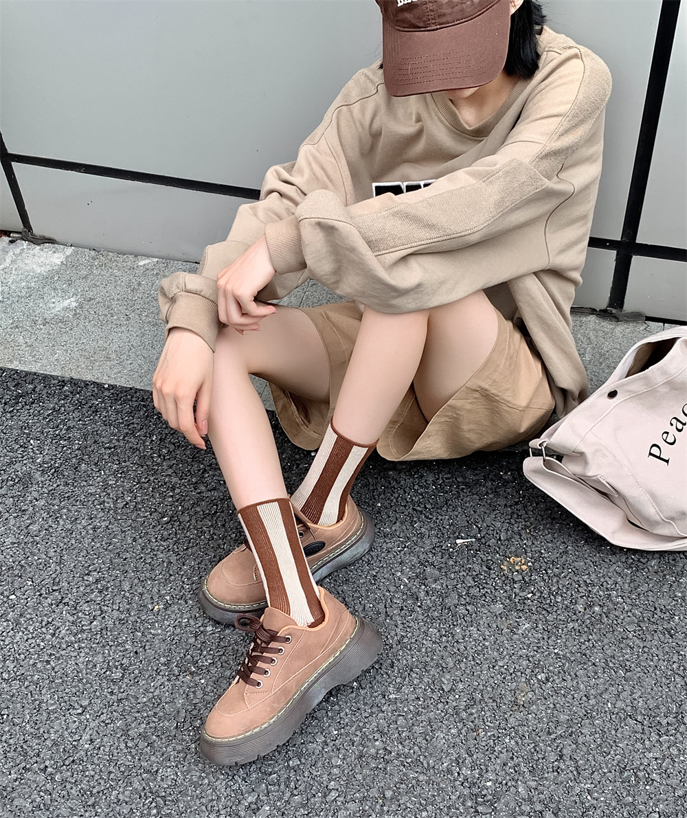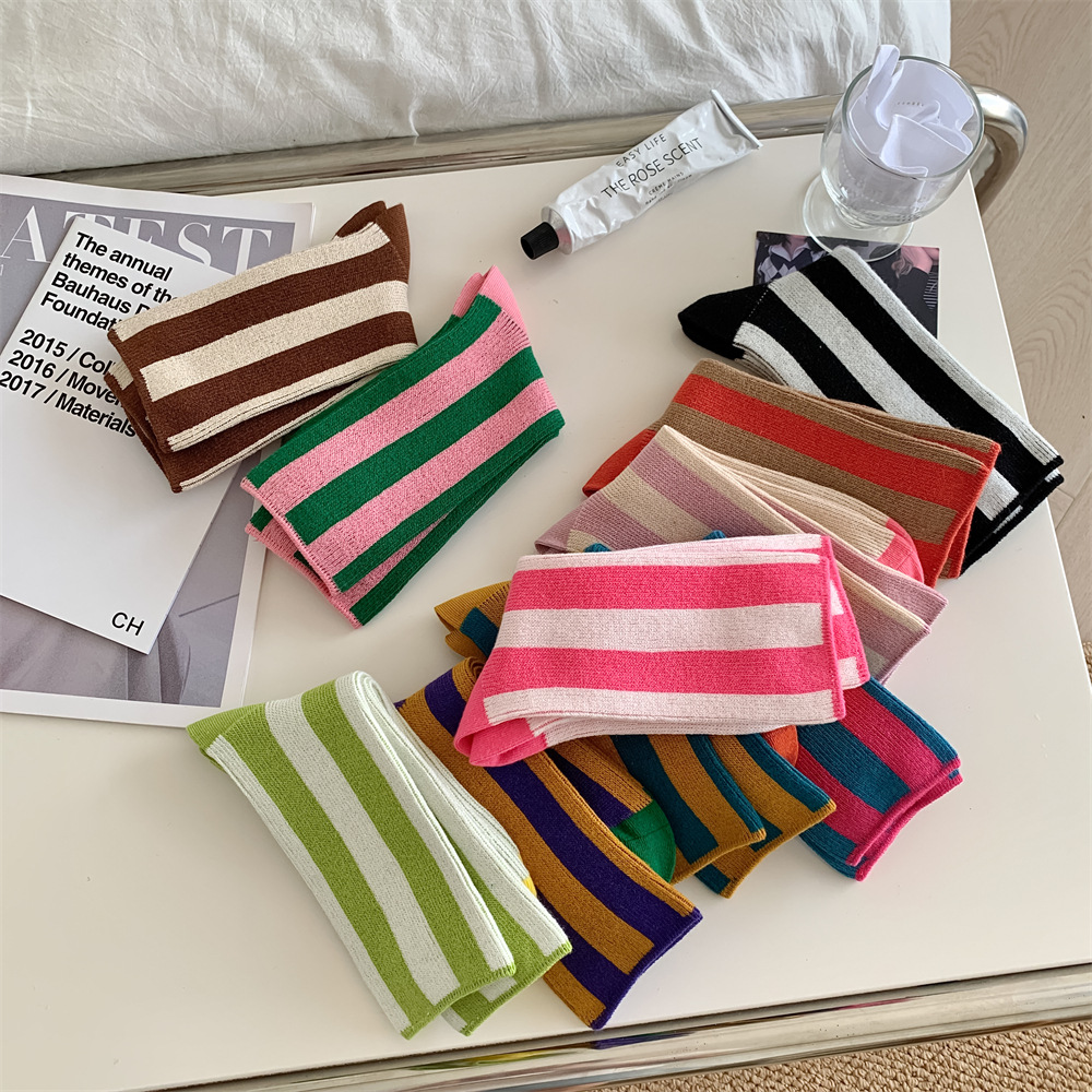 수직 곡물 양말 여성의 중간 튜브 양말 봄 가을과 겨울 빗질면 두꺼운 뼈없는 도파민 컬러 긴 튜브 더블 바늘