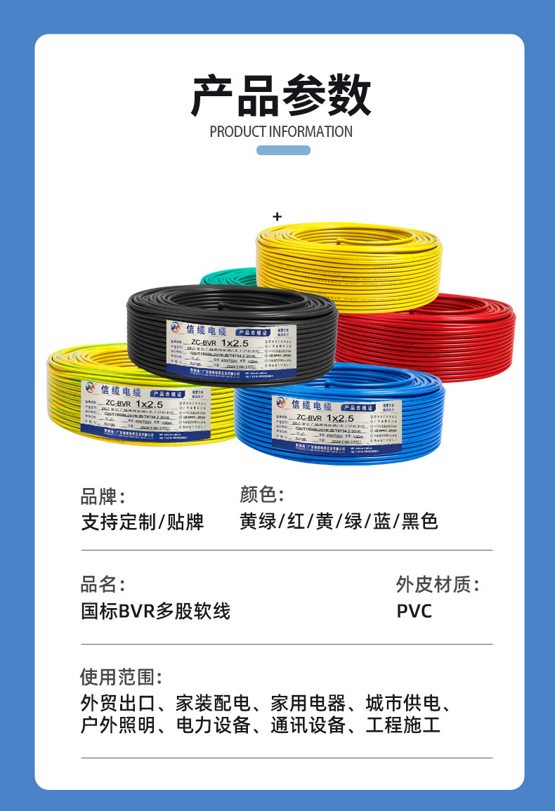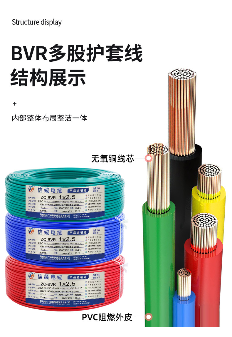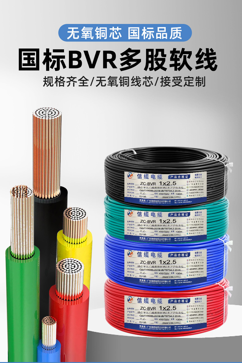 편지 케이블 BVR 와이어 국가 표준 산소가없는 구리 1/2/5/4/6 사각형 멀티 스트랜드 유연한 와이어 홈 장식 난연 조명 케이블스토어 가기