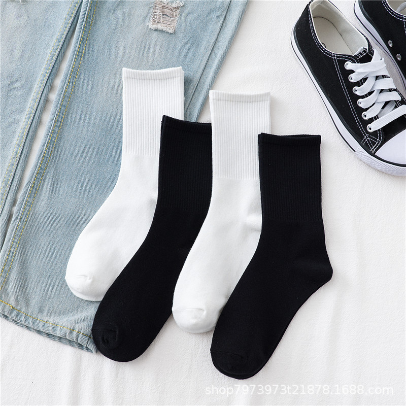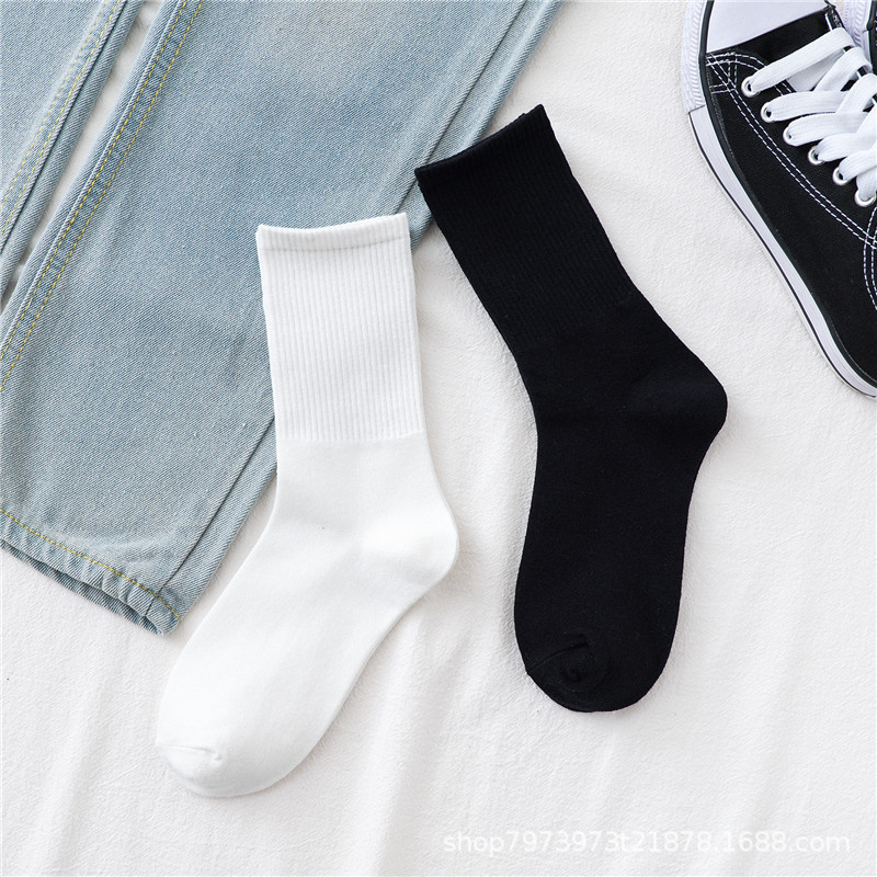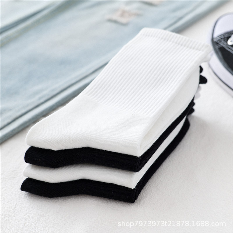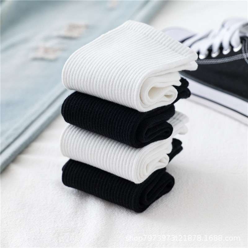 한국 학생 간단한 일본 하라주쿠 퓨어 블랙 퓨어 화이트 솔리드 컬러 미디엄 하이 배럴 보트 양말 남성과 여성을위한 로우 탑 스포츠 양말