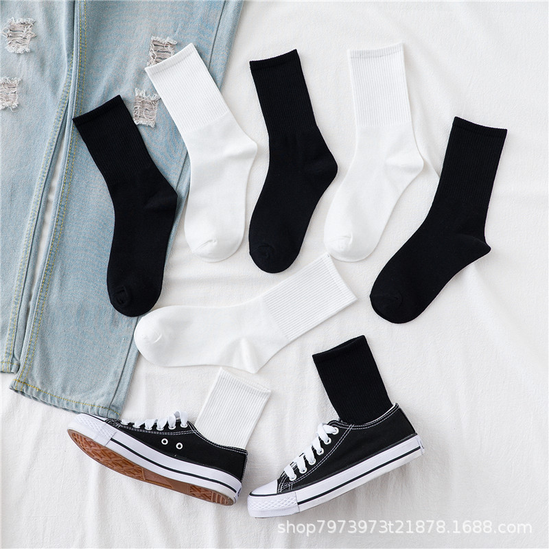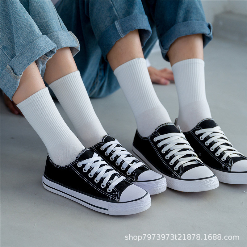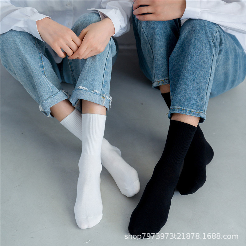 韩国学生简约日系原宿纯黑纯白纯色中筒高筒船袜低帮运动男女袜子