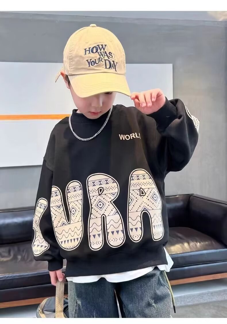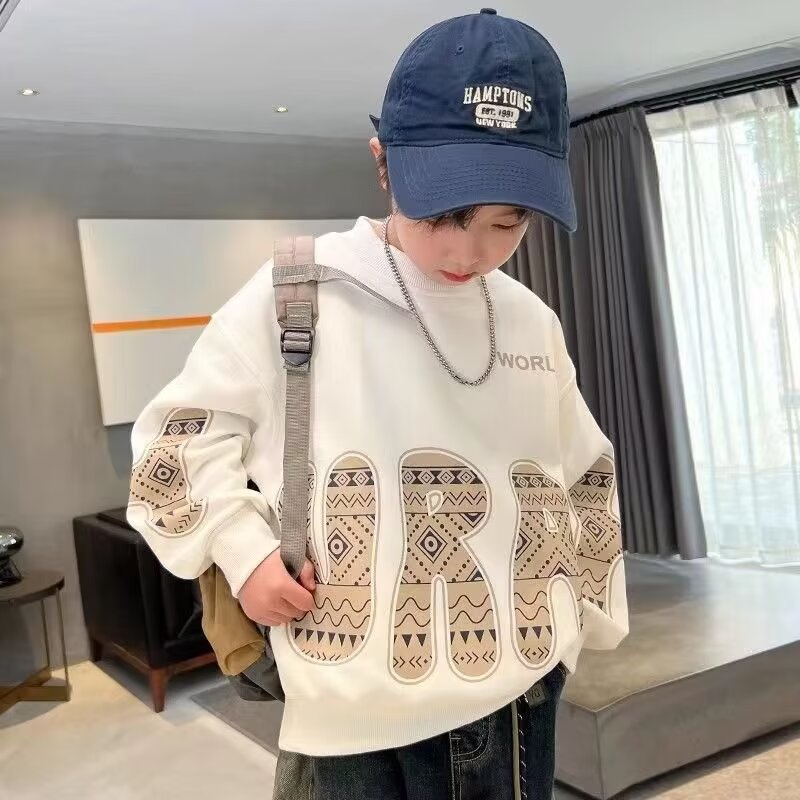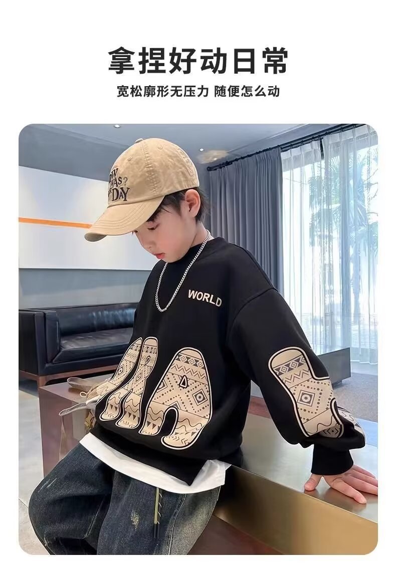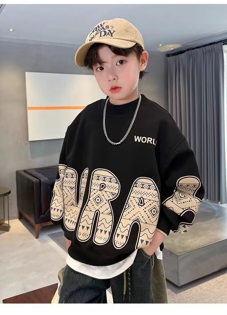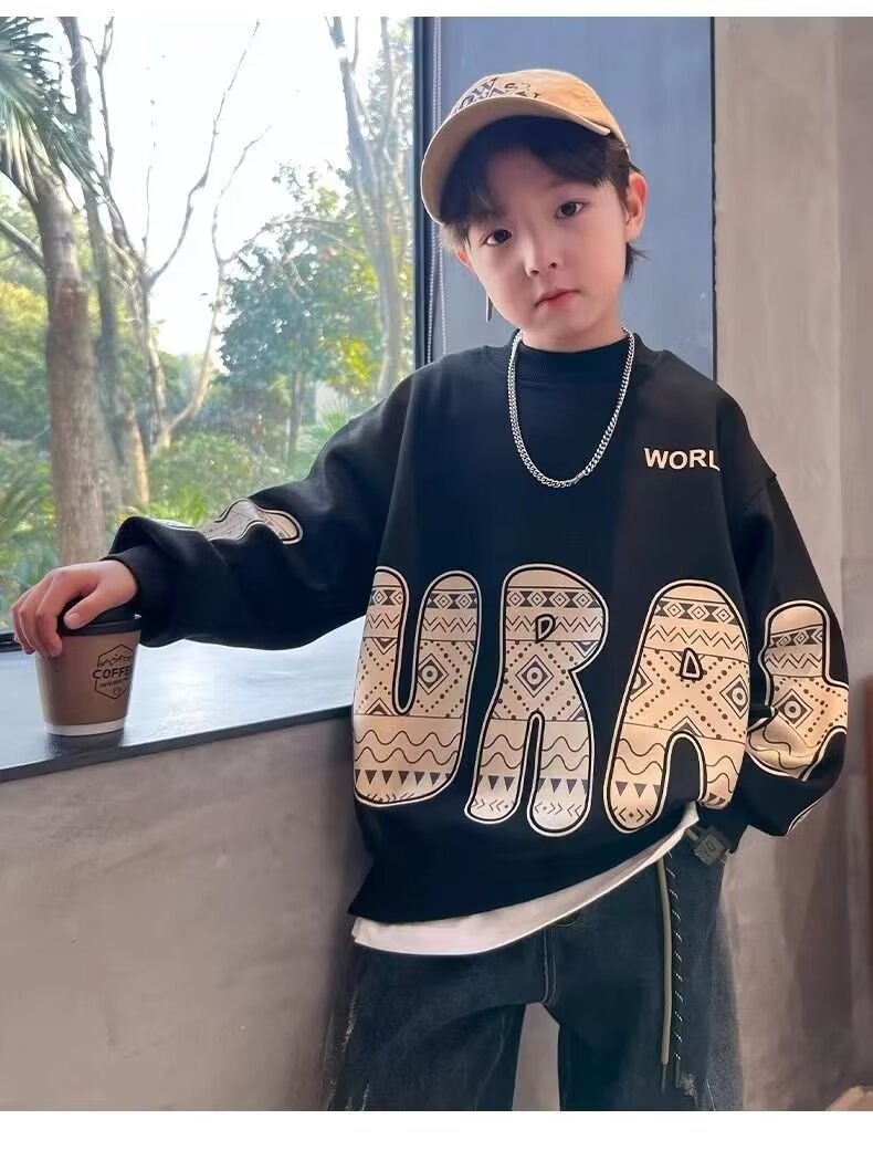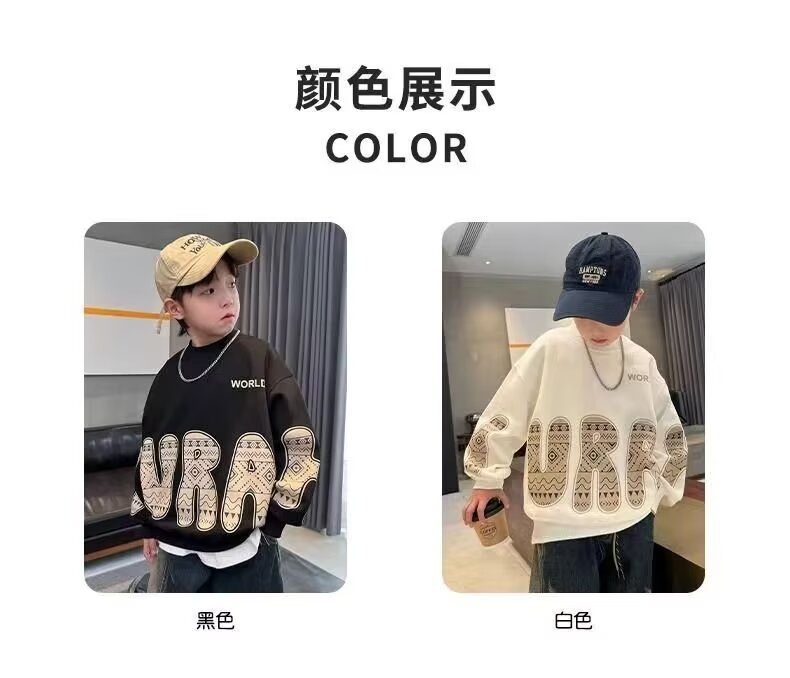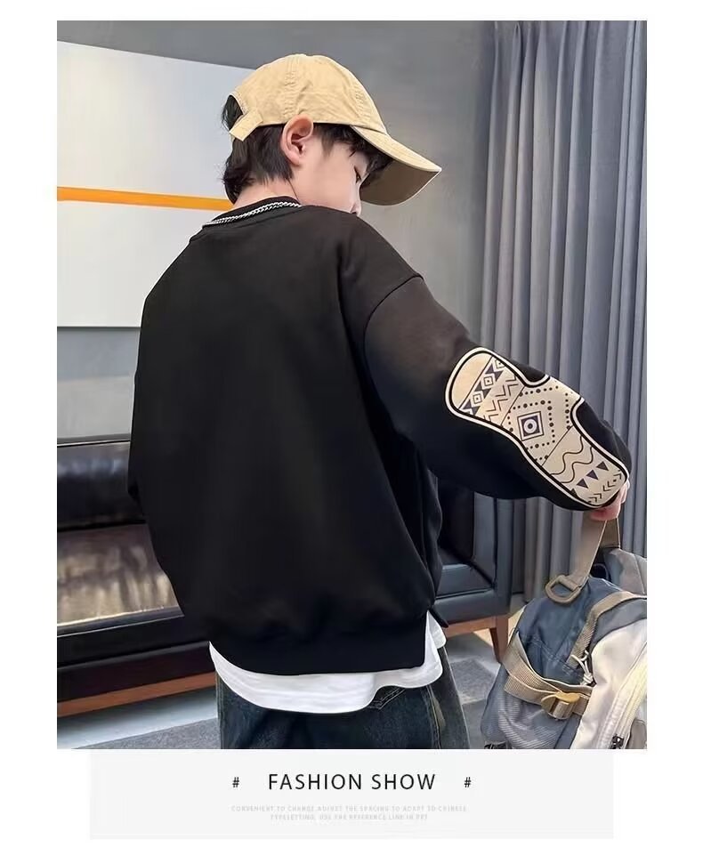 남학생 운동복 2024 년 봄과 가을 새로운 스타일 소년의 유행 브랜드베이스 셔츠 어린이 캐주얼 탑 큰 어린이 멋진 옷