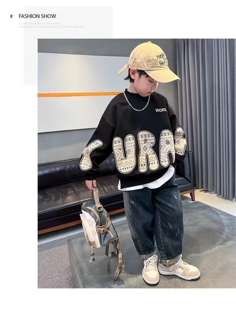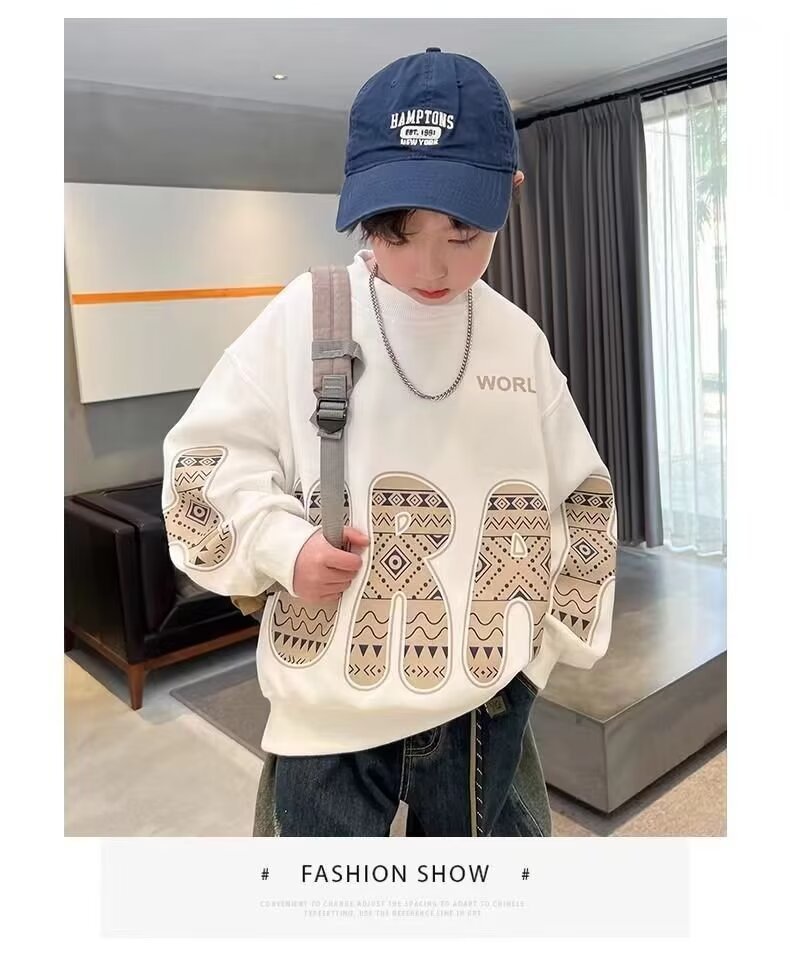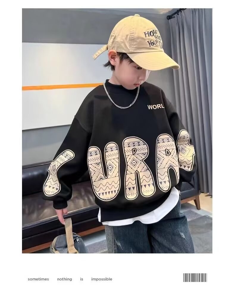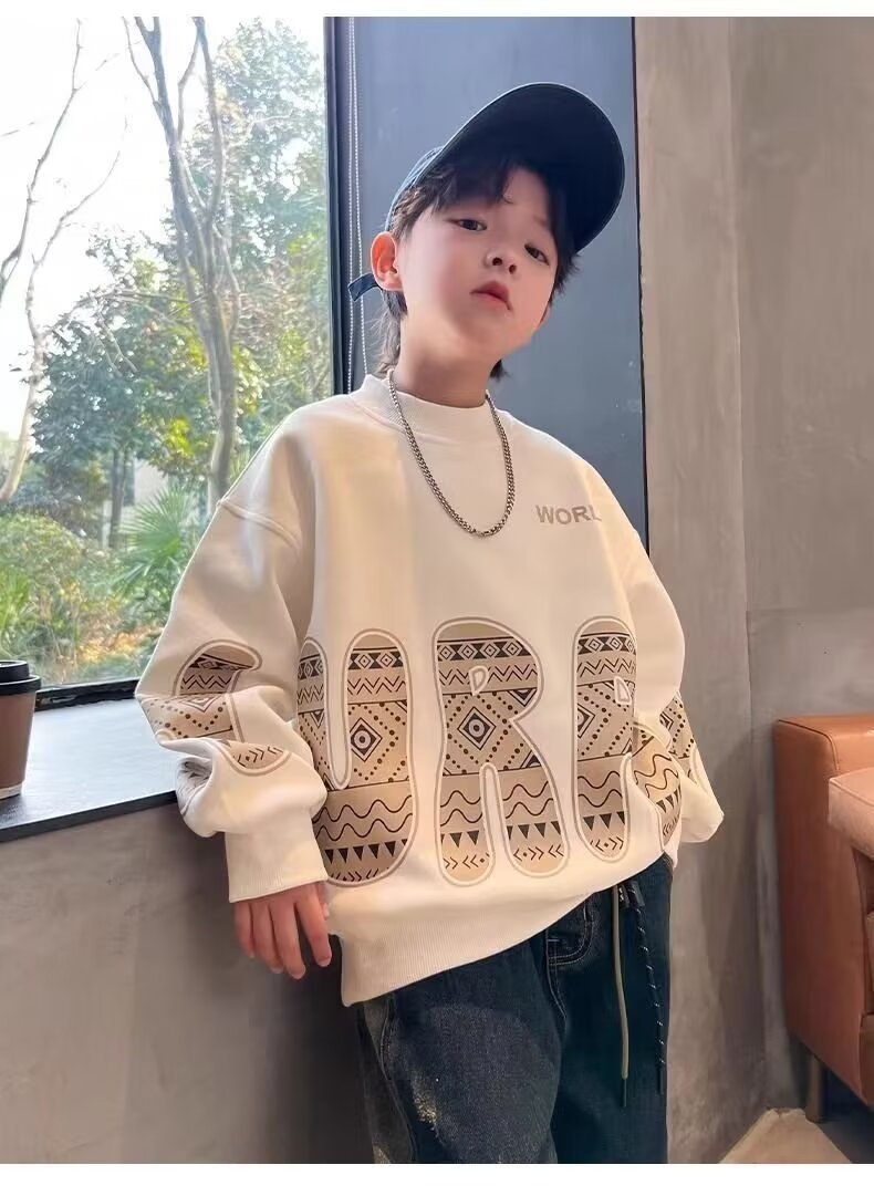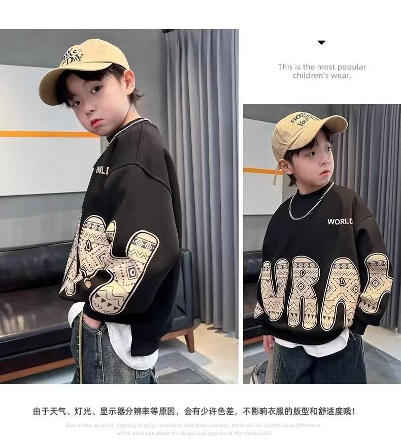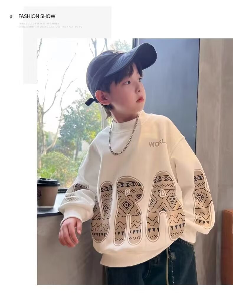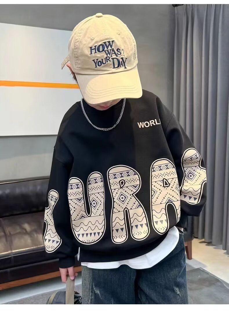 남학생 운동복 2024 년 봄과 가을 새로운 스타일 소년의 유행 브랜드베이스 셔츠 어린이 캐주얼 탑 큰 어린이 멋진 옷