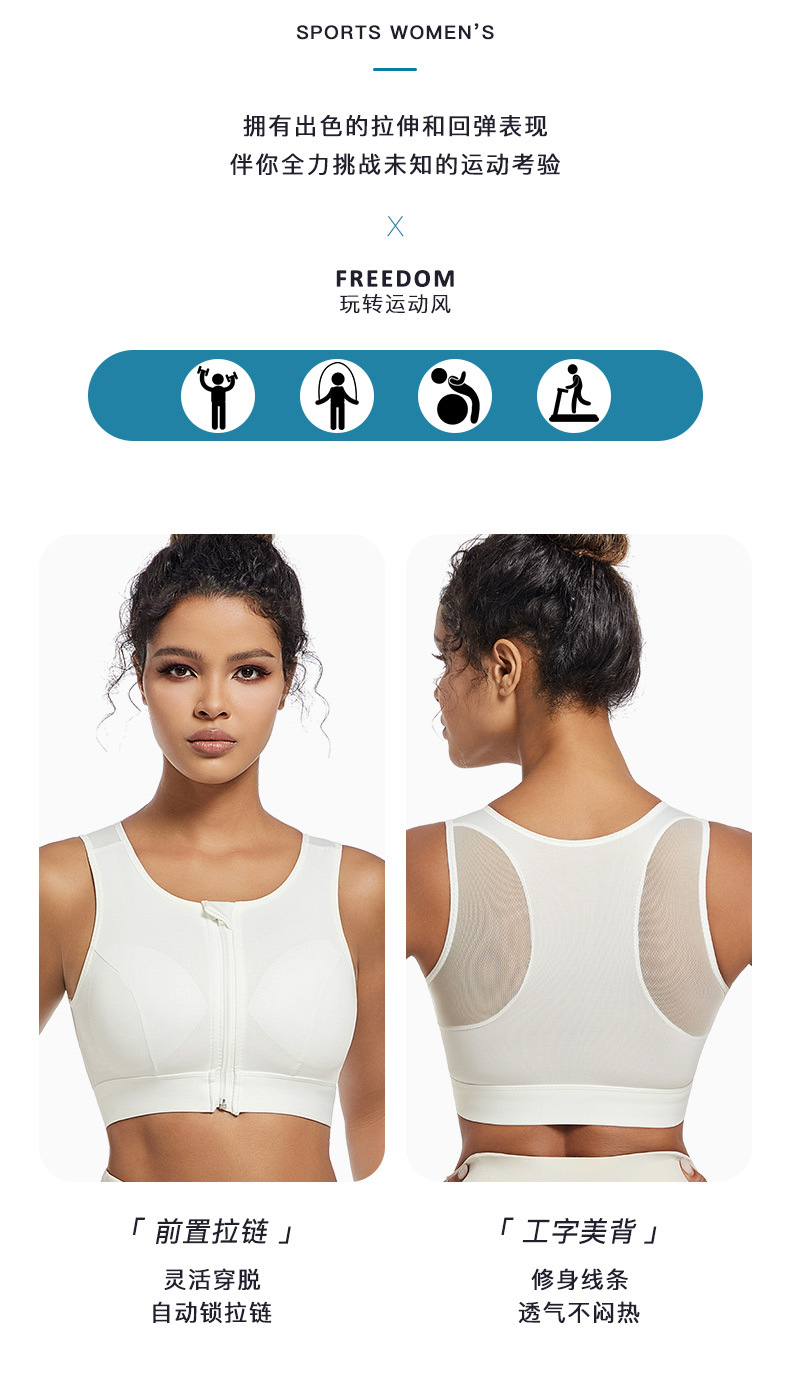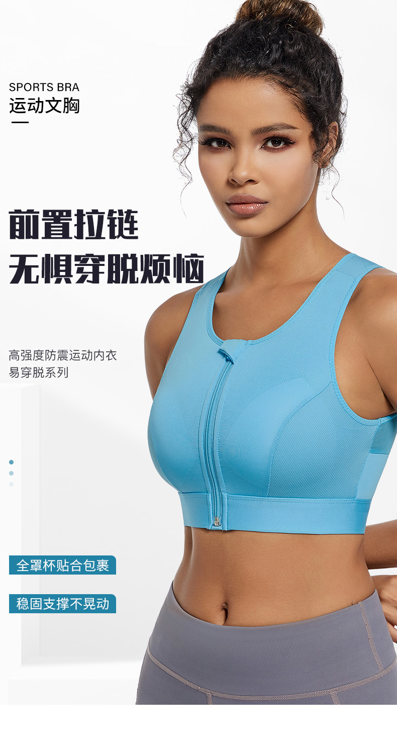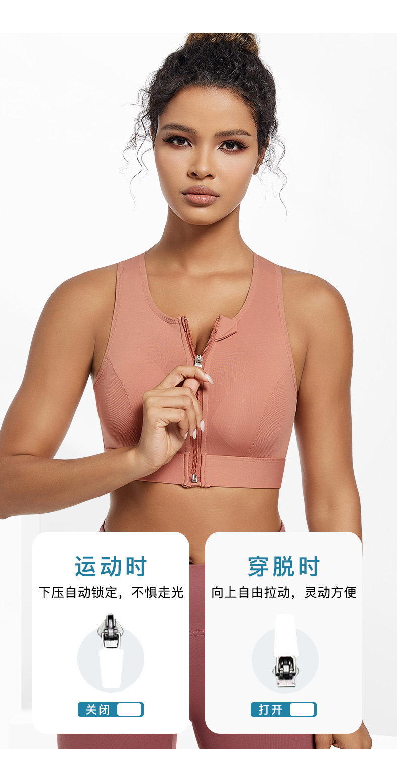 여성용 스포츠 브라, 고강도 충격방지, 푸쉬업, 러닝, 지퍼형, 풀컵, 노와이어, 요가탑