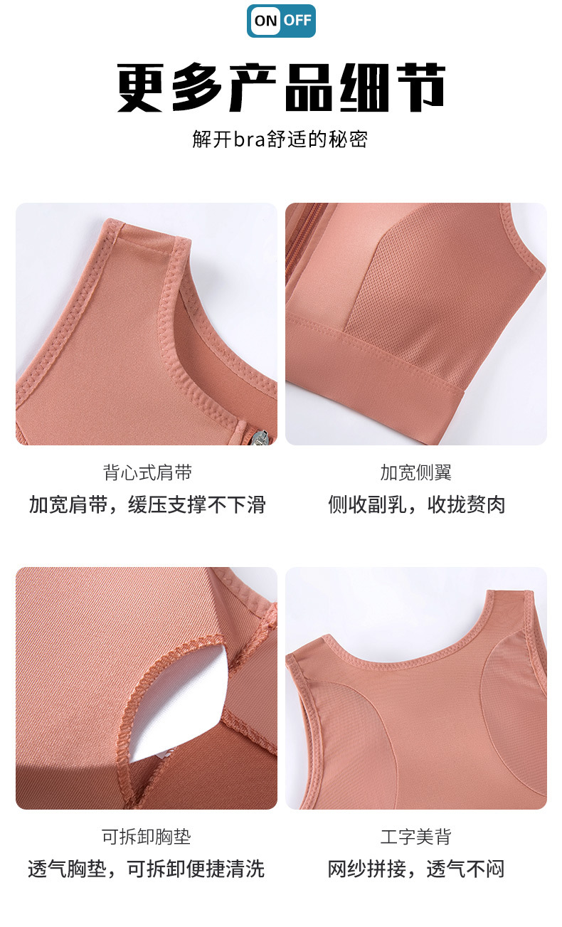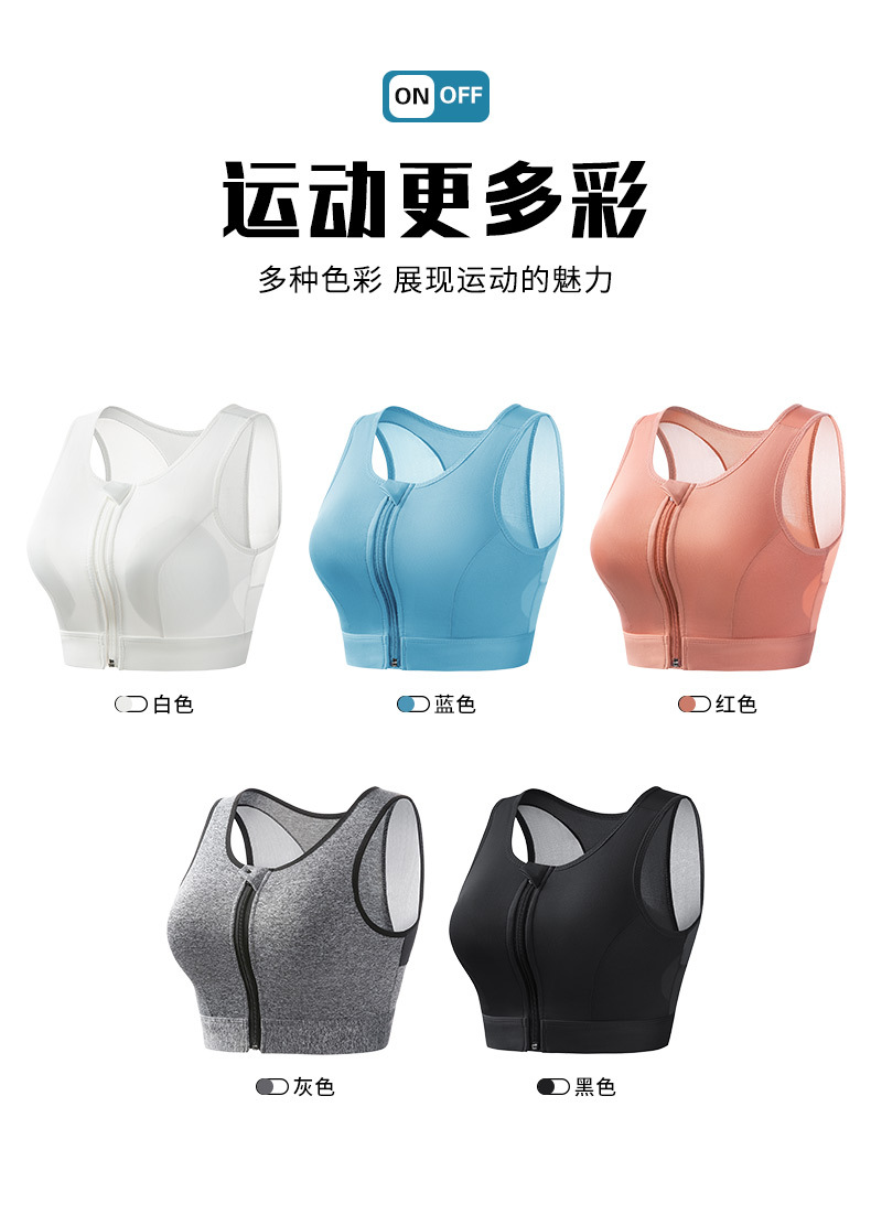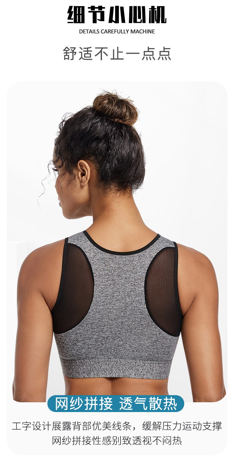 여성용 스포츠 브라, 고강도 충격방지, 푸쉬업, 러닝, 지퍼형, 풀컵, 노와이어, 요가탑