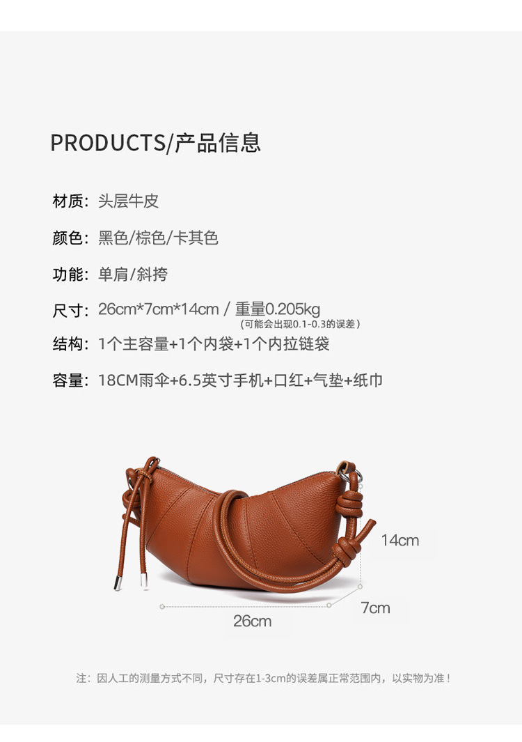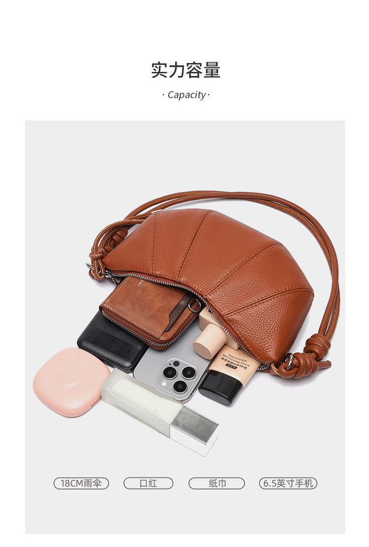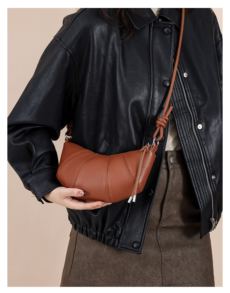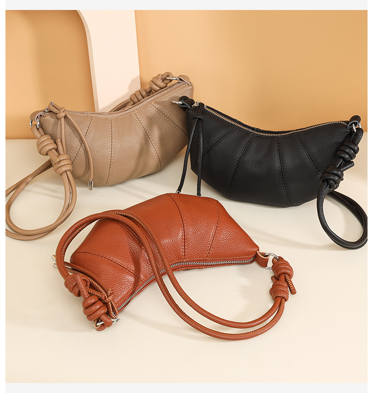 탑 레이어 소 가죽 하이 엔드 틈새 디자인 크루아상 가방 정품 가죽 여성 가방 새로운 패션 다목적 어깨 메신저 가방 패션스토어 가기