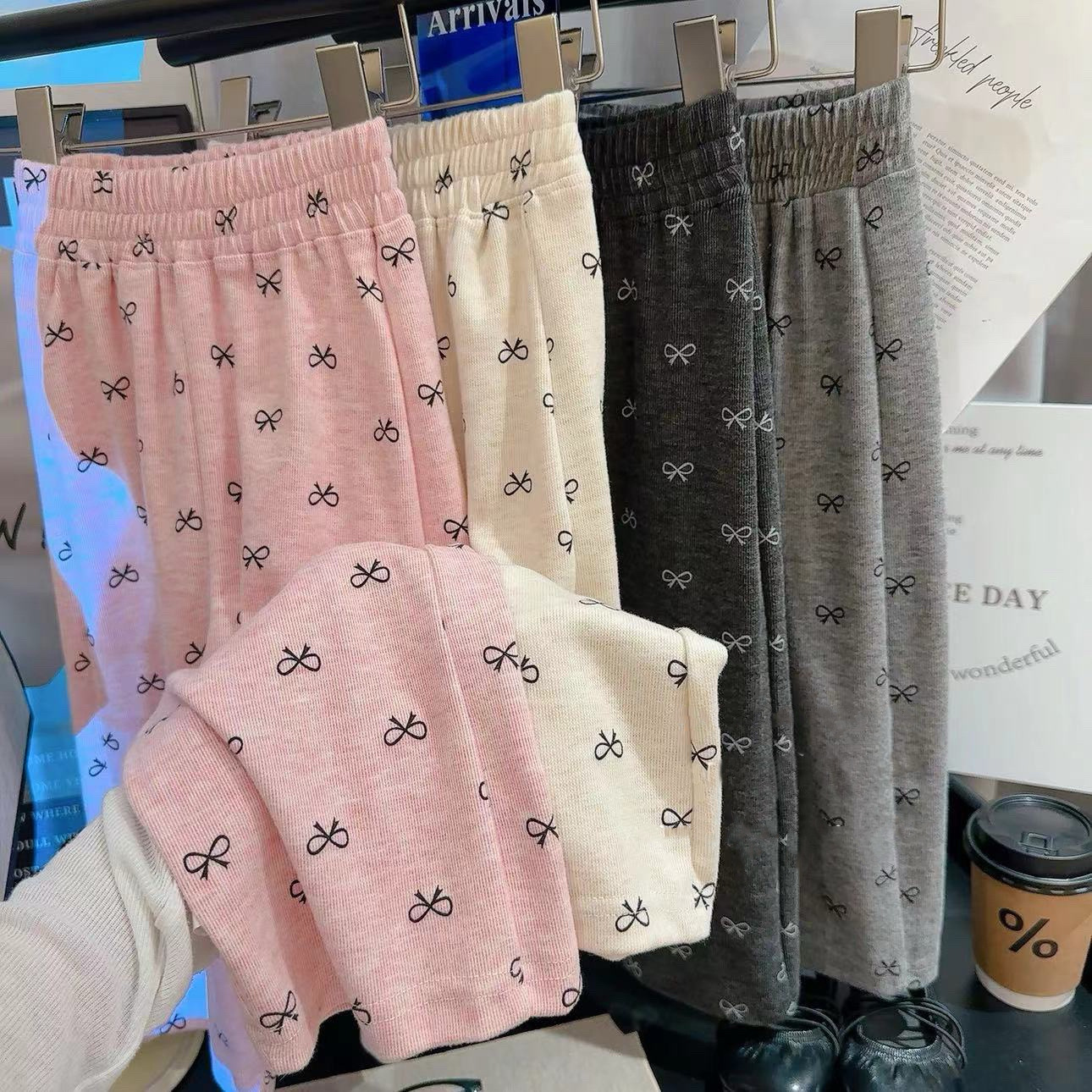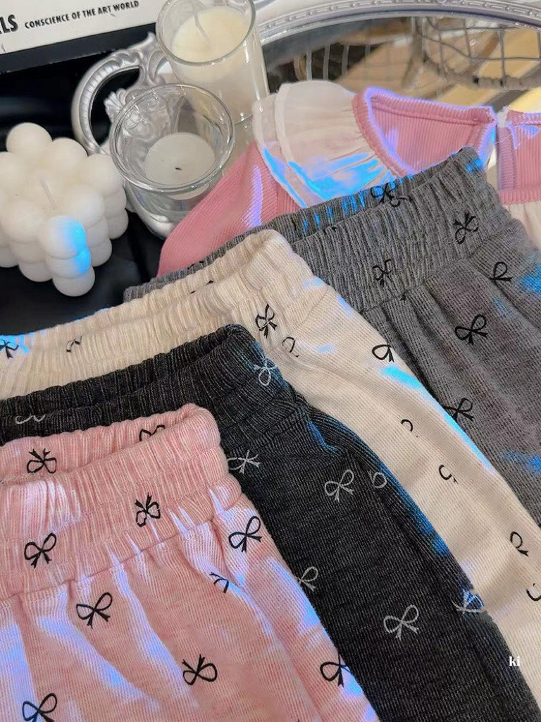 소녀 2024 봄과 가을 인쇄 된 넓은 다리 바지 어린이 외부 착용 활베이스 바지 스트레이트 캐주얼 바지스토어 가기