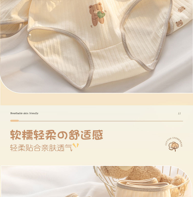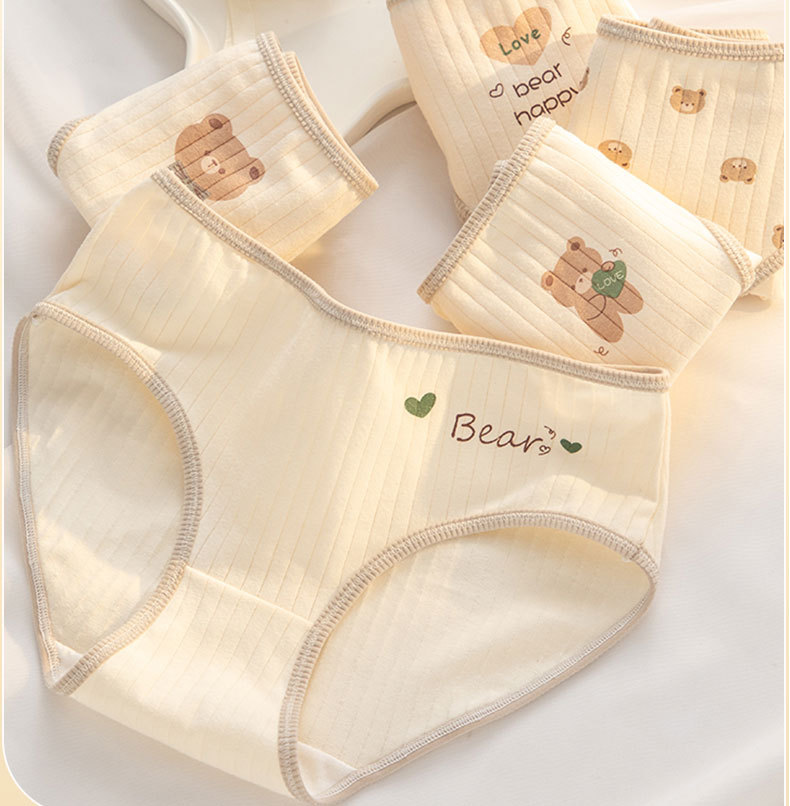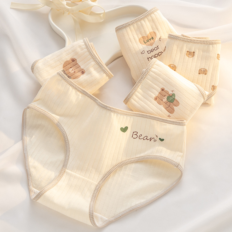 7A 항균 Crotch 여성 속옷 순면 클래스 A 면 소녀의 귀여운 곰 중간 허리 엉덩이 청소년 브리프스토어 가기