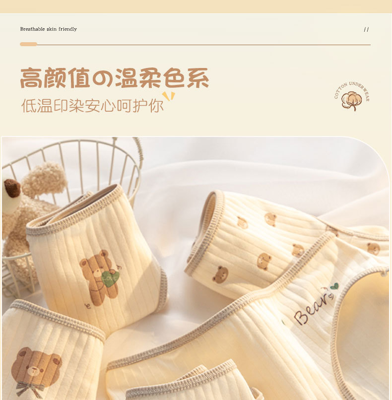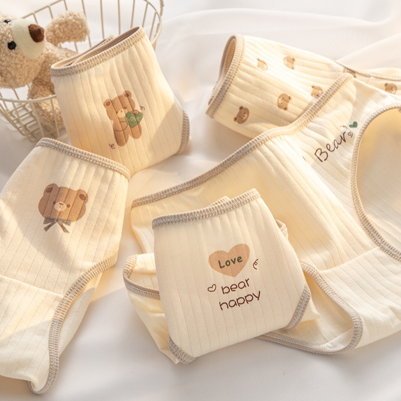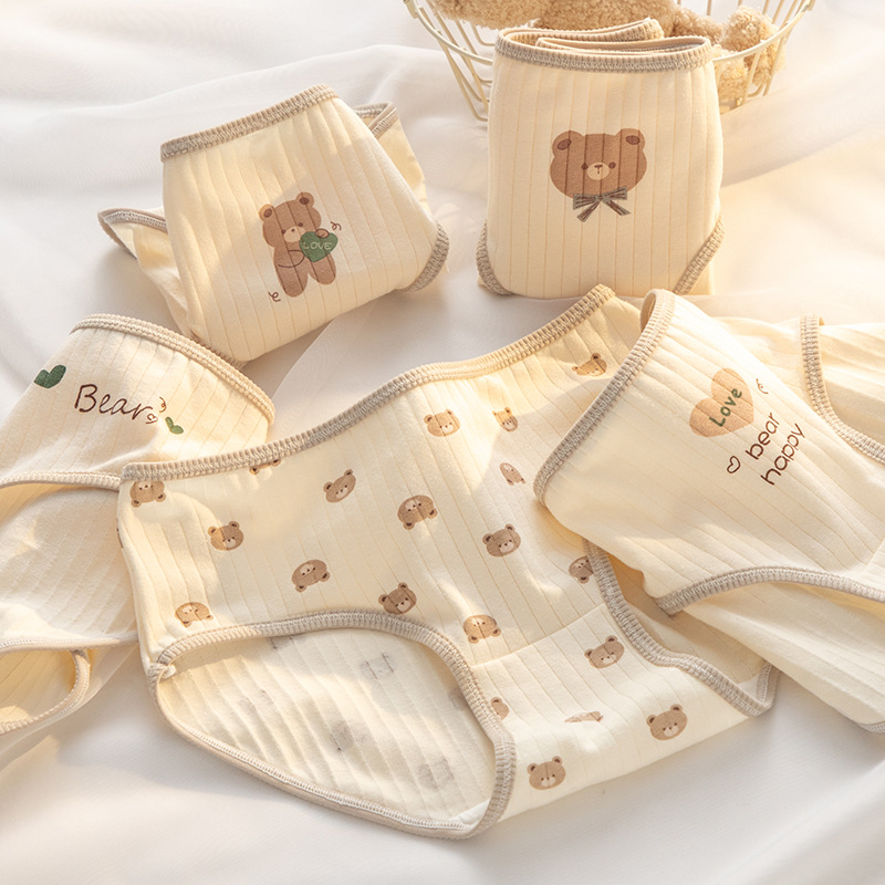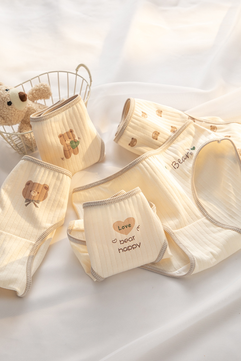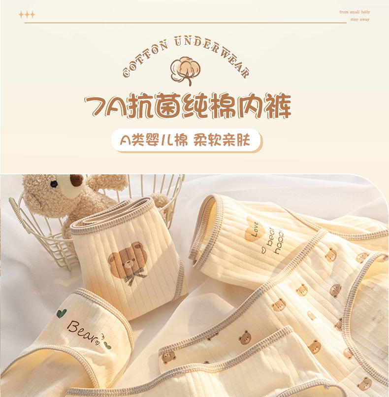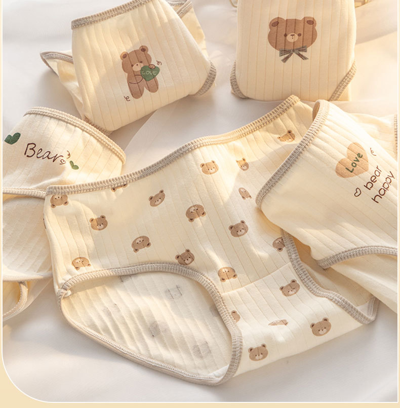 7A 항균 Crotch 여성 속옷 순면 클래스 A 면 소녀의 귀여운 곰 중간 허리 엉덩이 청소년 브리프