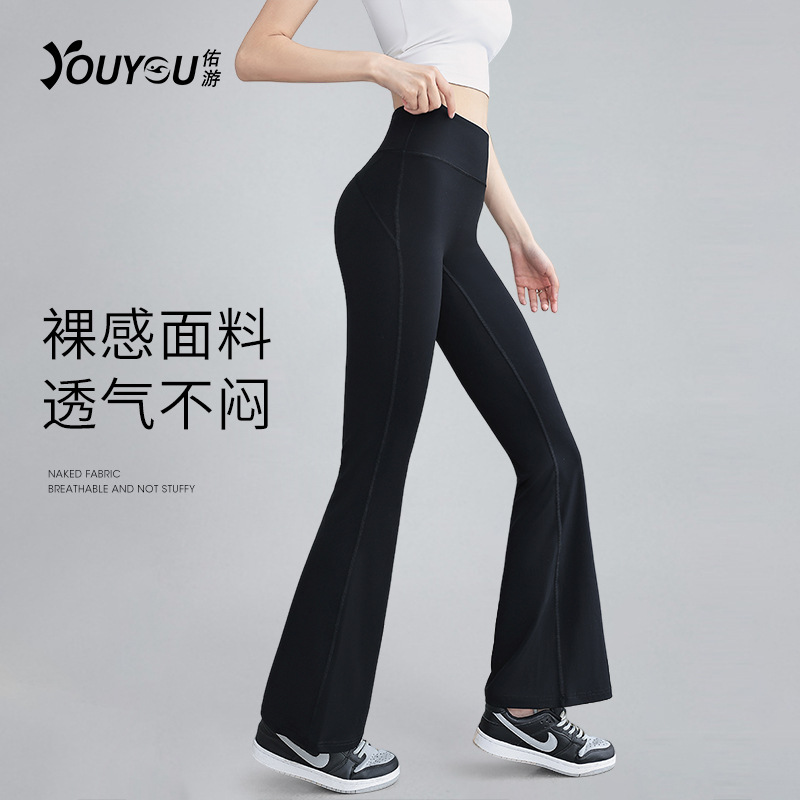 Youyou 2025 새로운 요가 플레어 팬츠 여성은 높은 허리 엉덩이 댄스 피트니스 요가 바지 도매 착용스토어 가기