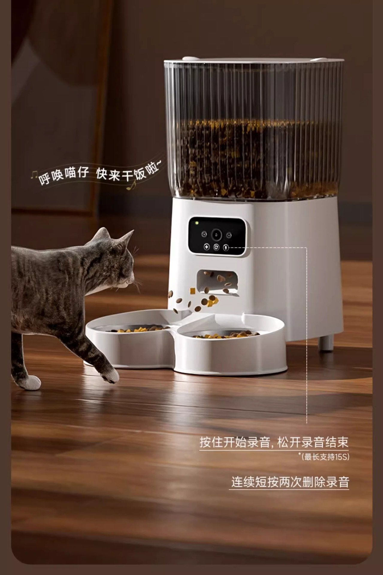 고양이 자동 피더 애완 동물 고양이 개 원격 타이밍 양적 먹이 기계 지능형 모니터링 음성 방송