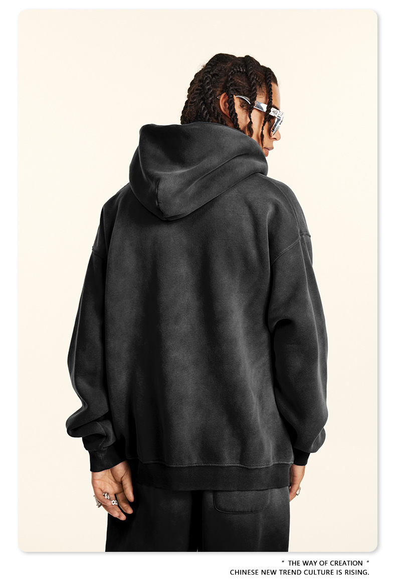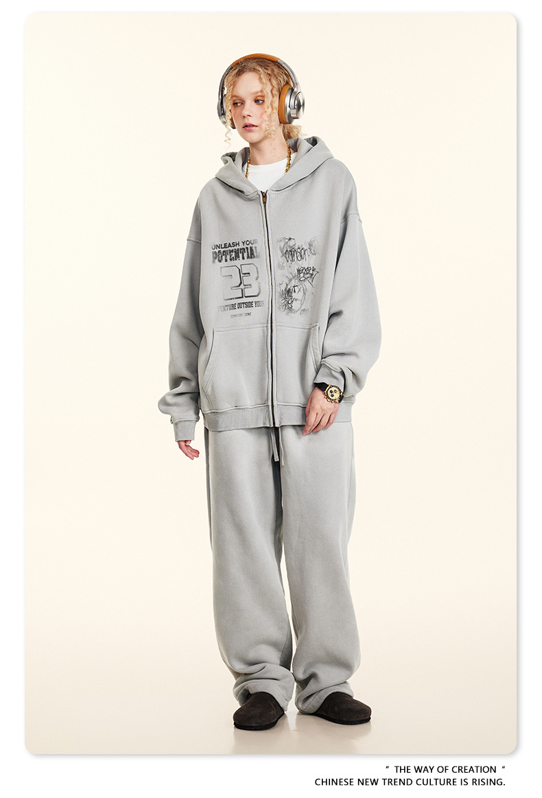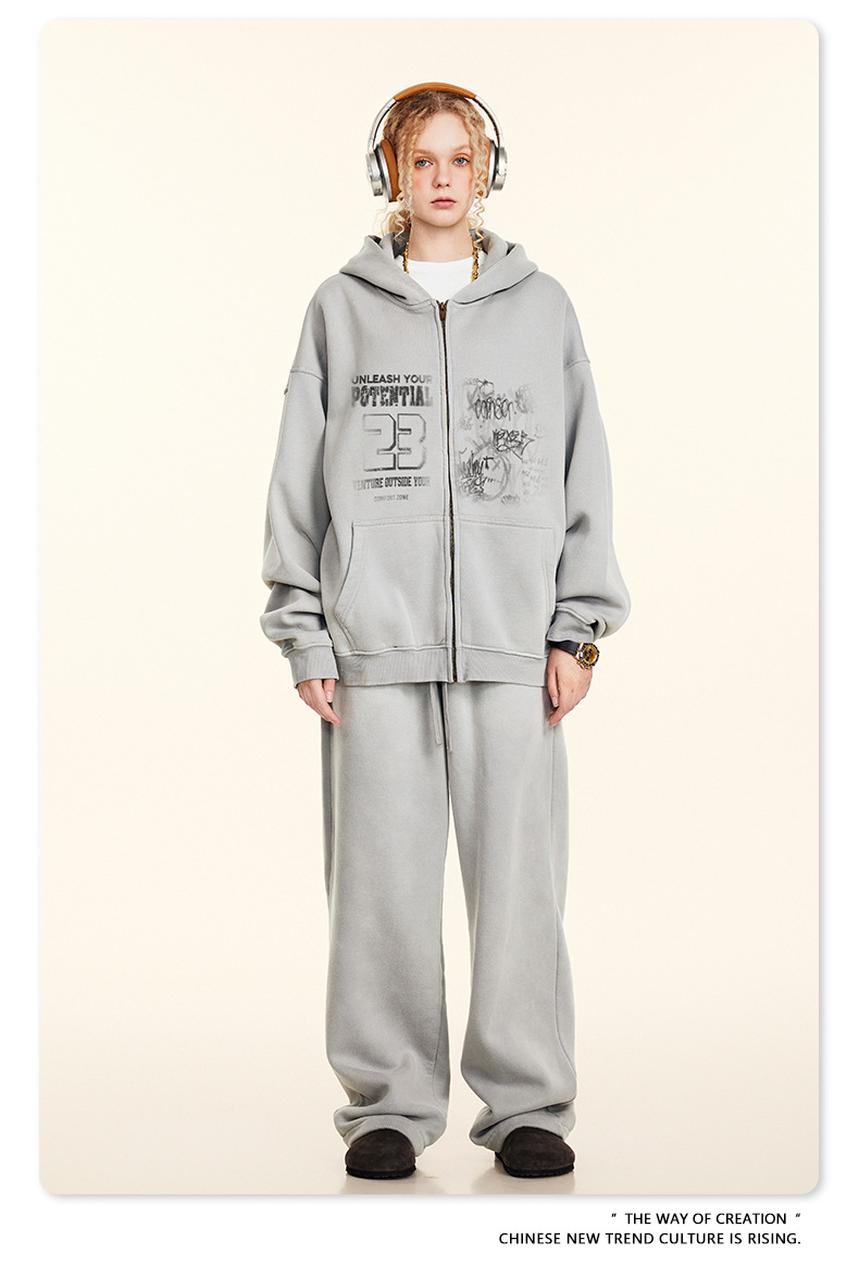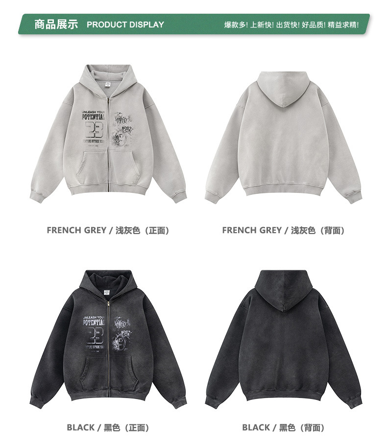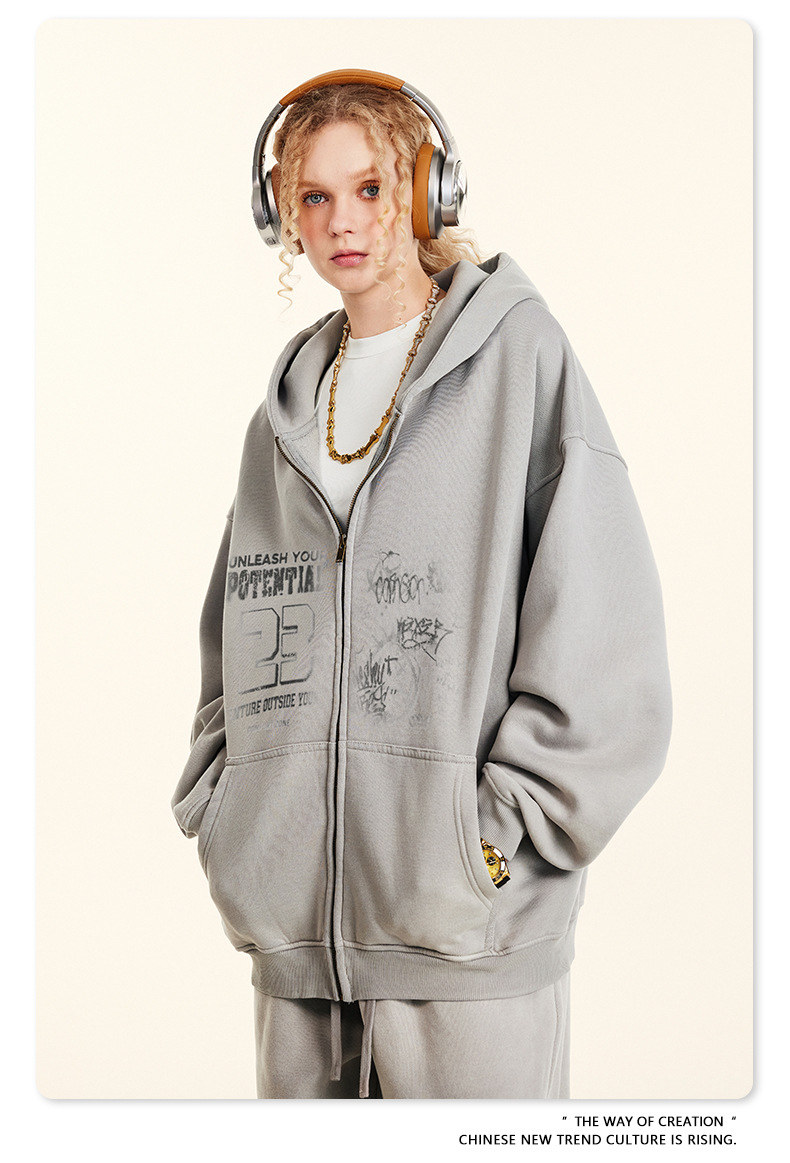 BE 남성 의류 | 2025 가을 아메리칸 하이 스트리트 빈티지 프린트 벨벳 두꺼운 지퍼 후드 스웨트셔츠 가디건 남성용
