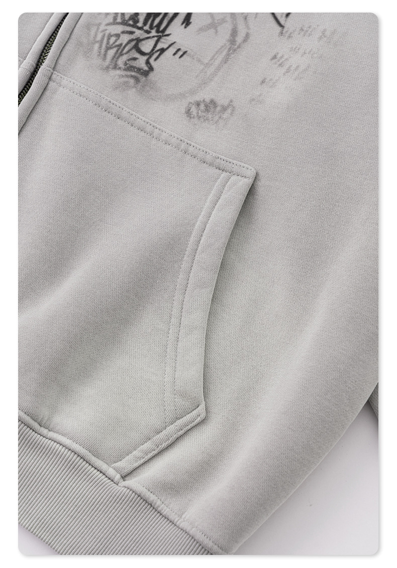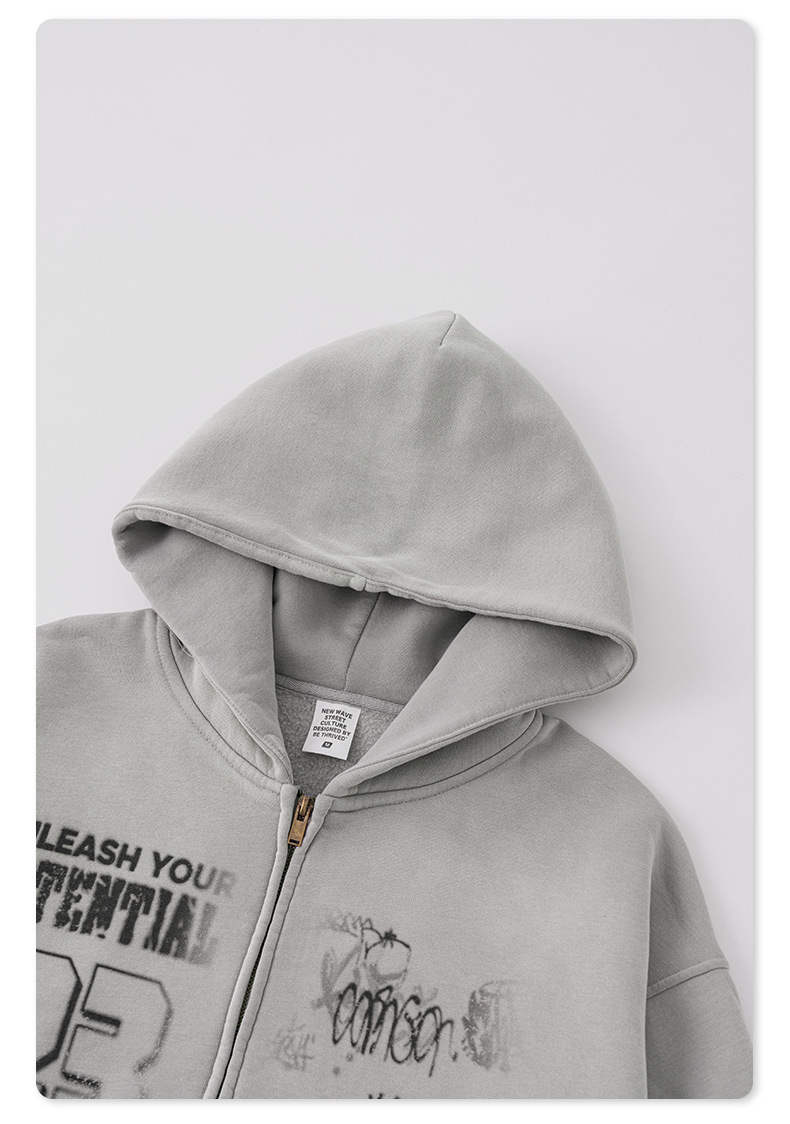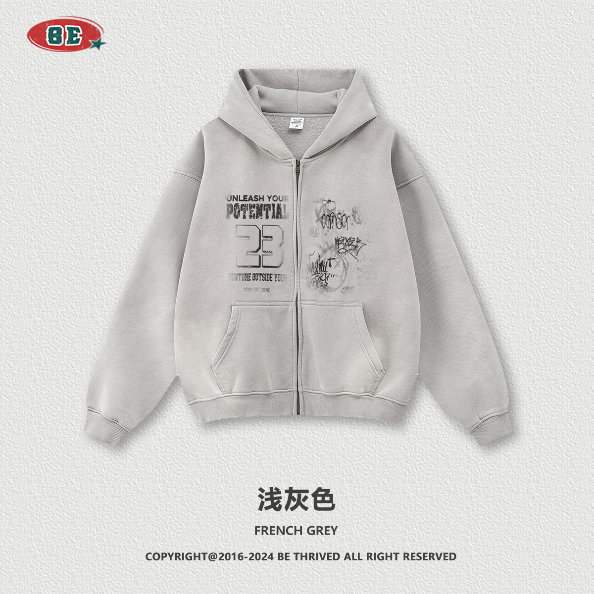 BE 남성 의류 | 2025 가을 아메리칸 하이 스트리트 빈티지 프린트 벨벳 두꺼운 지퍼 후드 스웨트셔츠 가디건 남성용스토어 가기