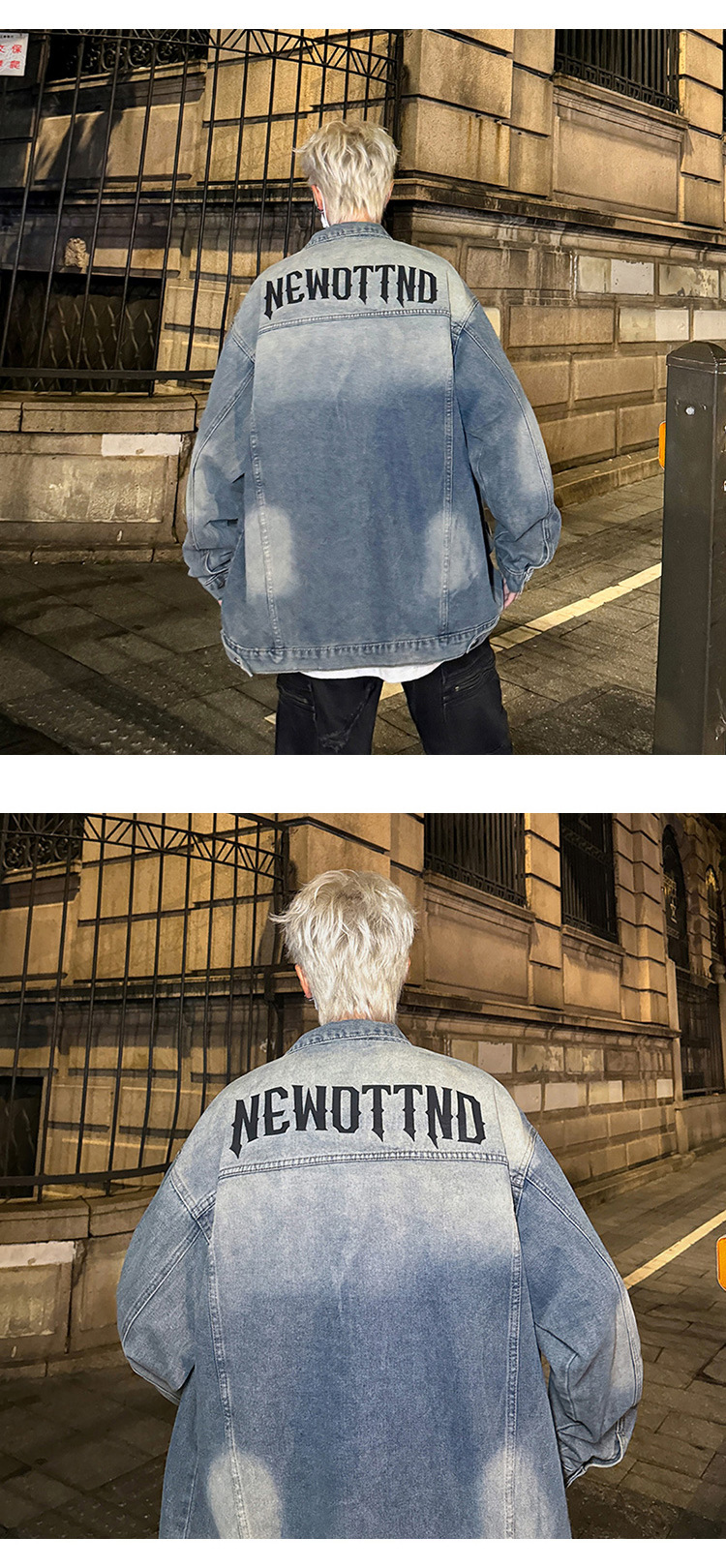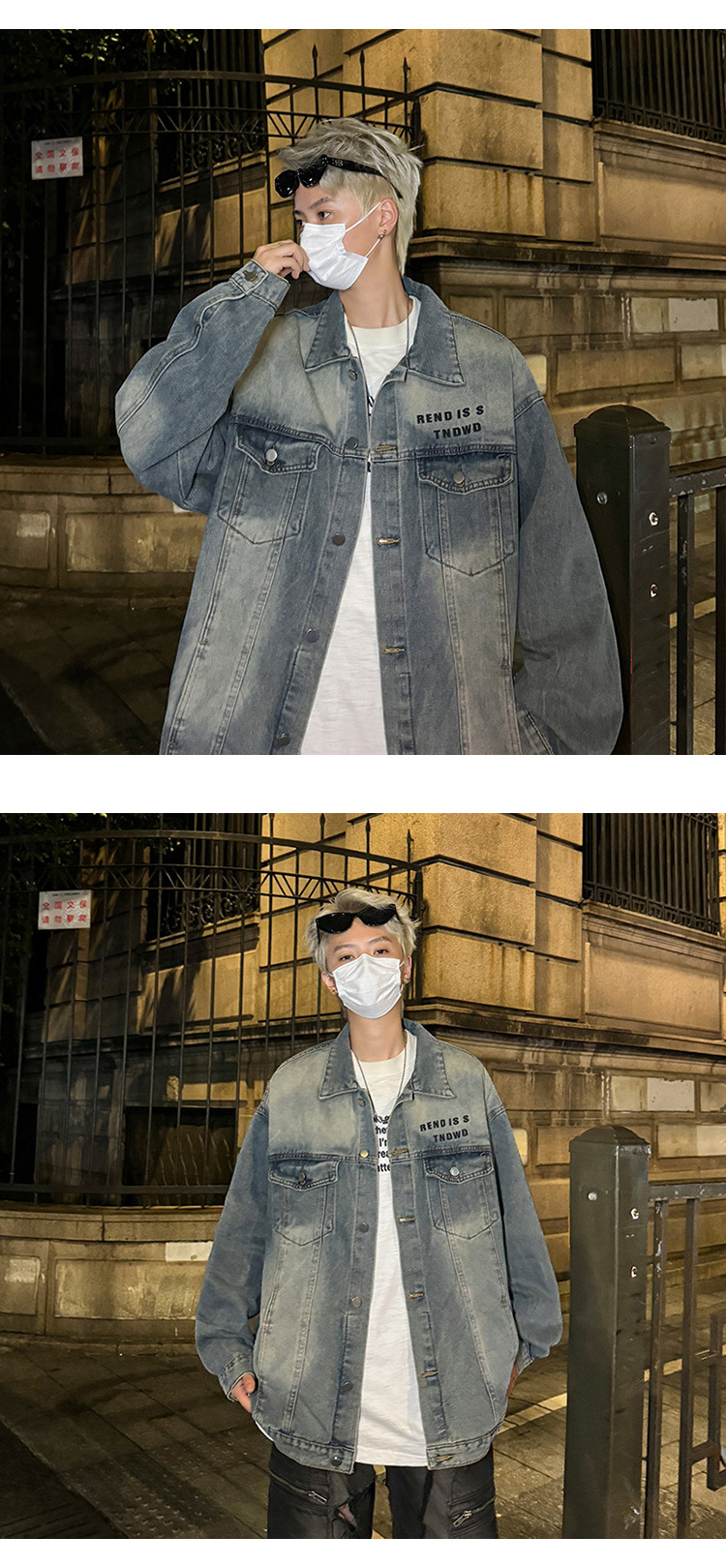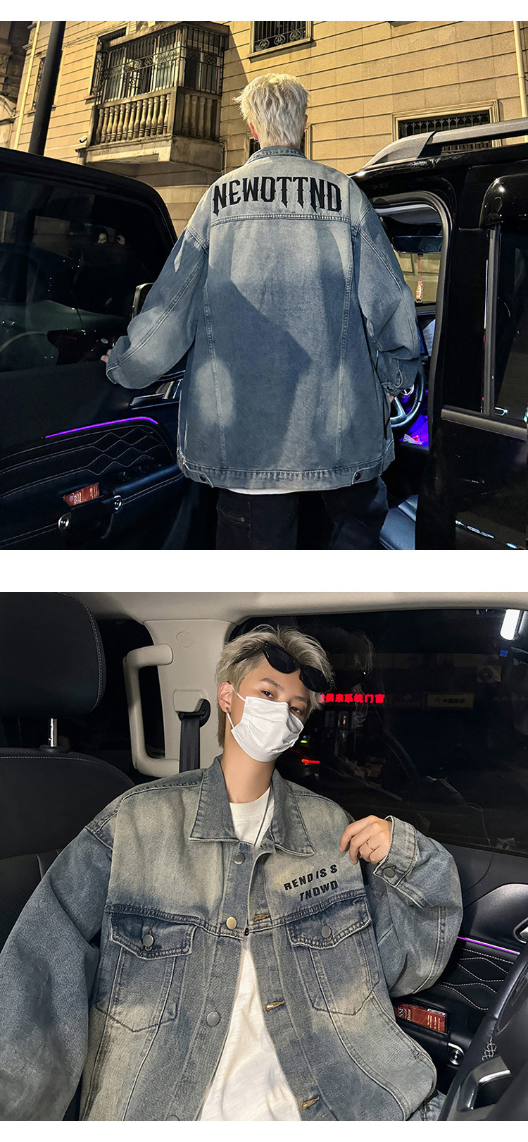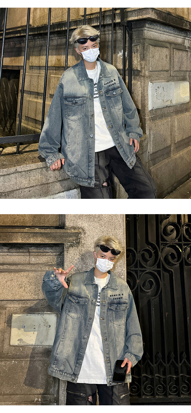 데님 자켓 남성용 가을 빈티지 미국 옷깃 데님 재킷 잘 생긴 편지 가죽 압력 데님 재킷스토어 가기